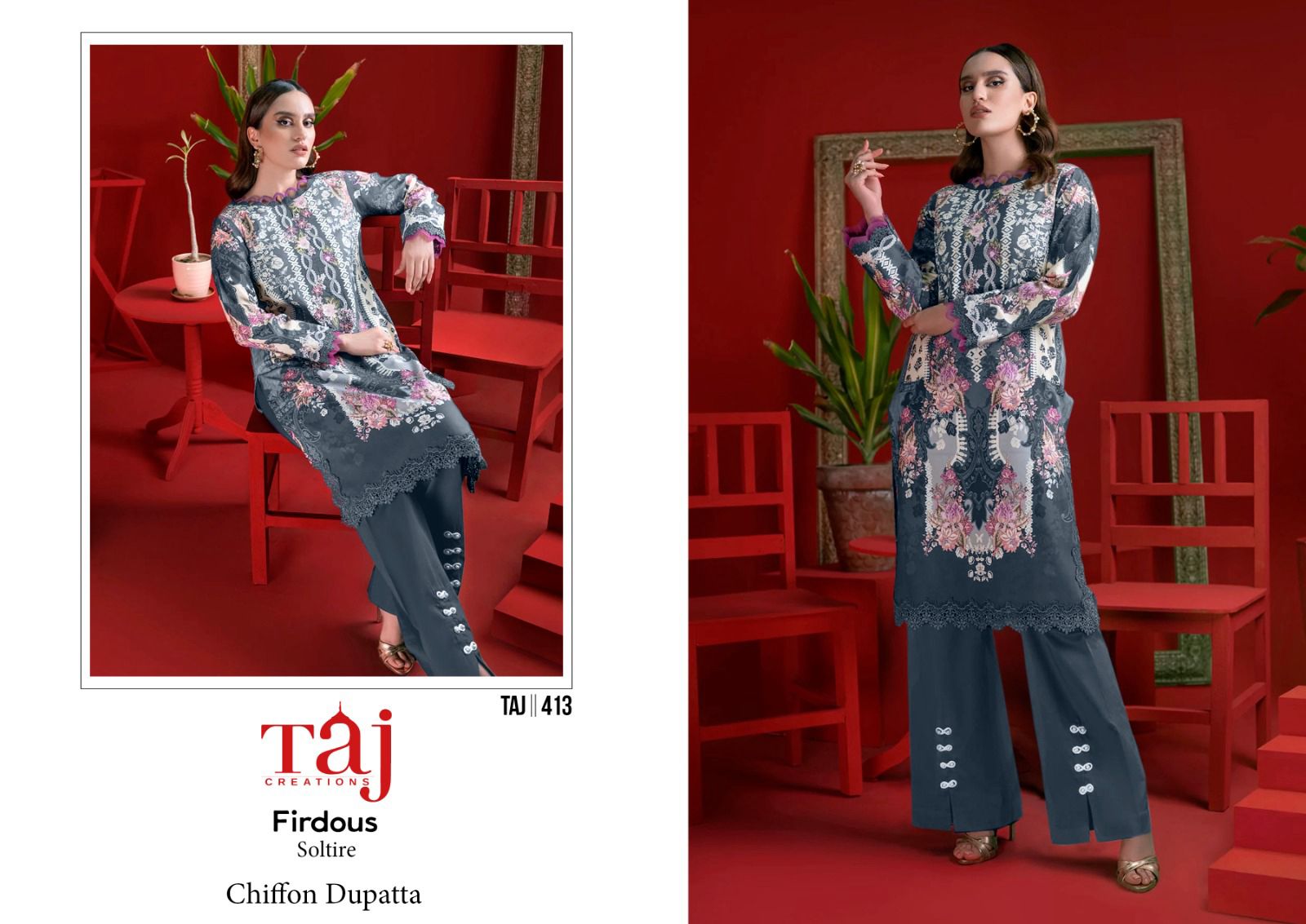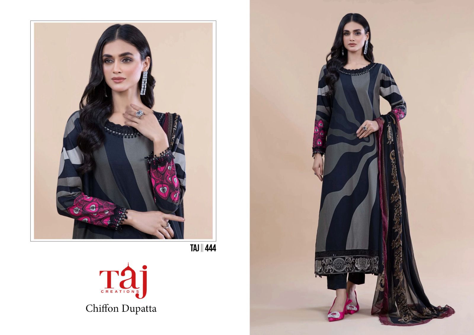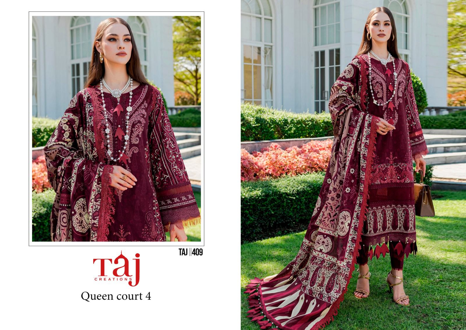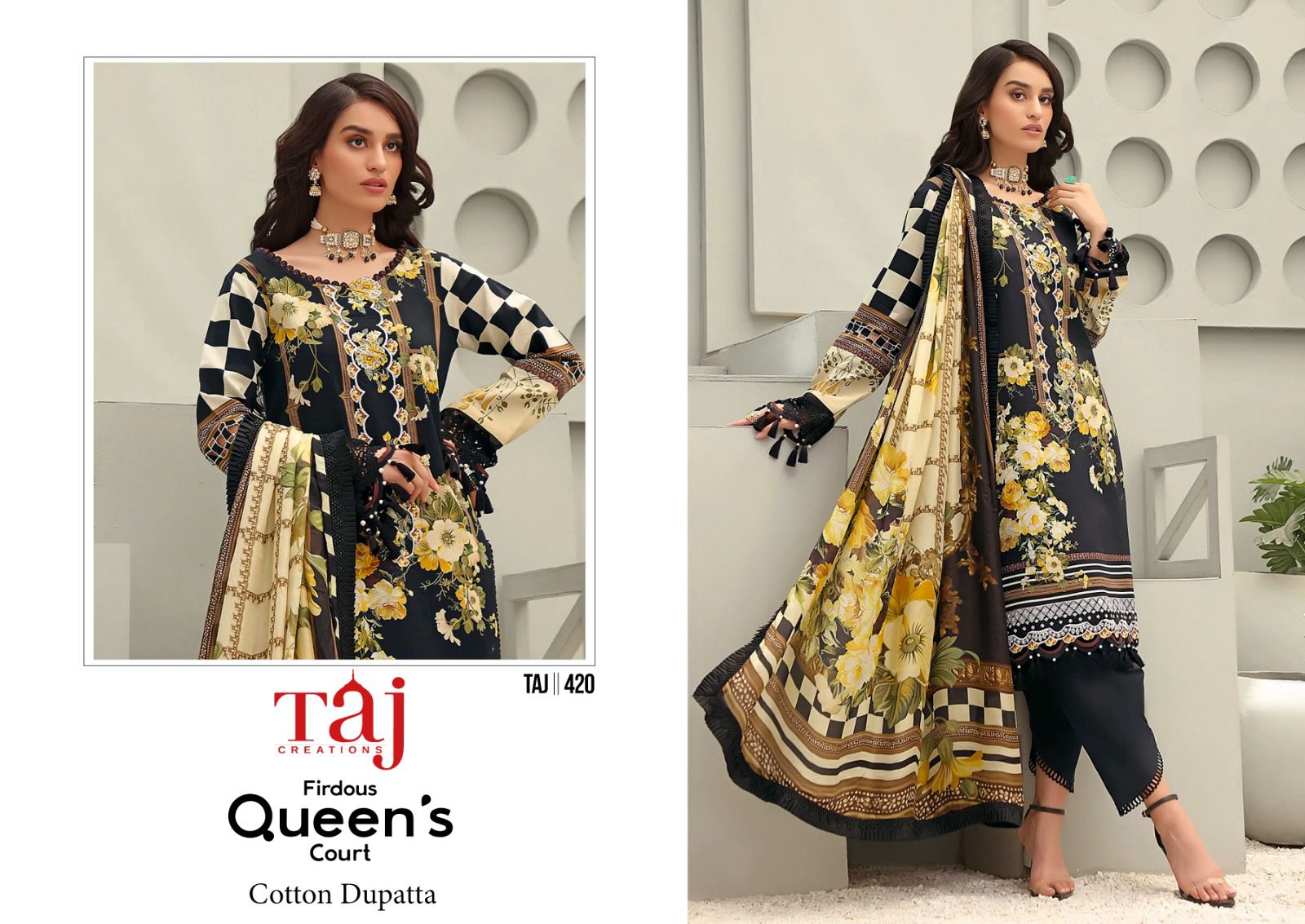 Buy Online Taj Creation New Firdous Queen Court Pakistani Suits 30 Pcs of Full Catalogue at Wholesale Price. Looking for Taj Creation New Firdous Queen Court Pakistani Suits Full Catalouge at Best Price? Buy Now Taj Creation New Firdous Queen Court Pakistani Suits at Wholesale Rate of Rs 0 with Total 30 Pcs from authroized dealer and supplier of Brand. Cost of Each piece is just only Rs 0 which is very low and affordable price to resale the product in your retail store ,This is Surat based Wholesale Supplier & Dealer of Brand. Click on Brand name to Know more about Brand's products.Call or Whatsapp on 9898838984 for booking or enquiry
