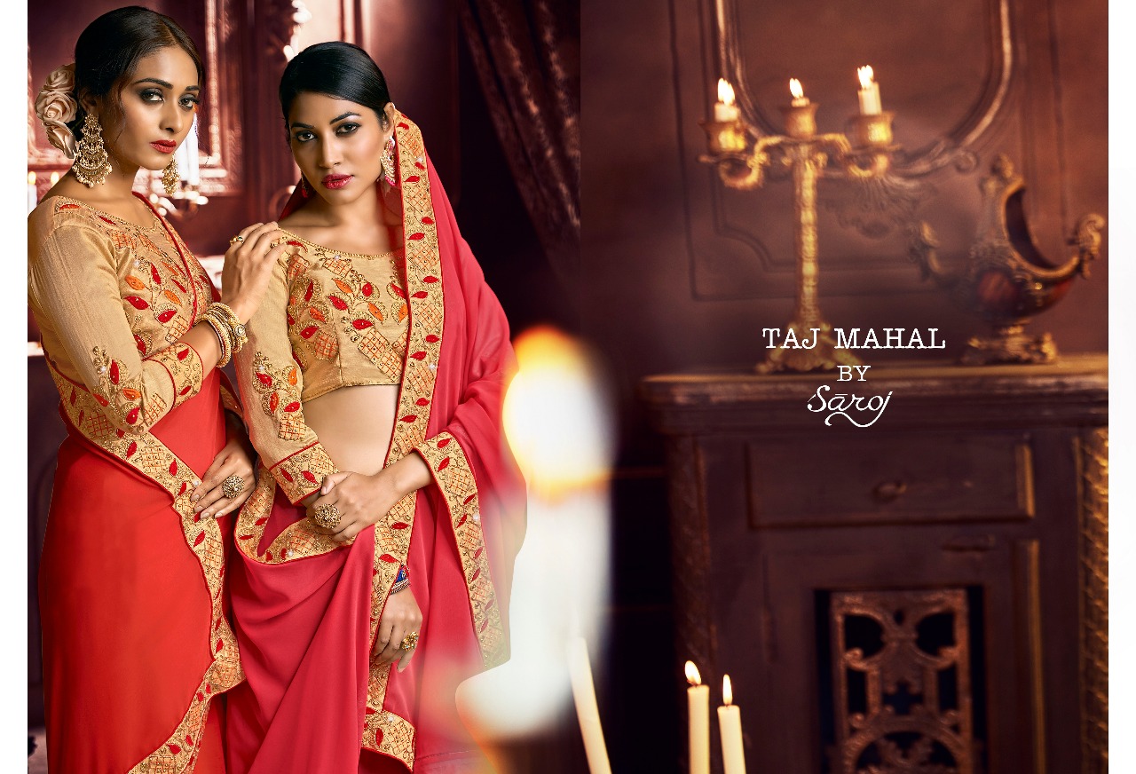 Taj Mahal By Saroj Georgette Designer Sarees Wholesale Supplier And Dealer Gujarat