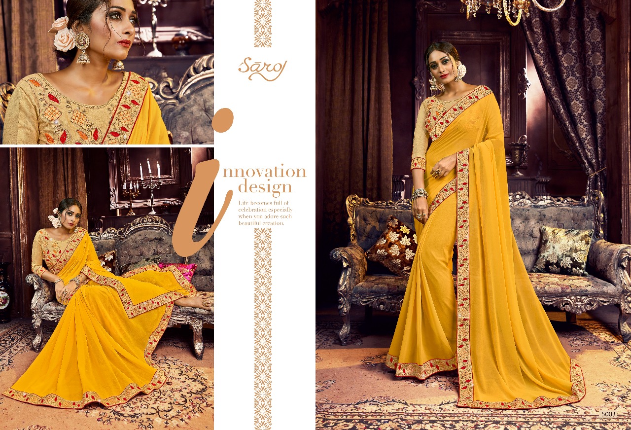 Buy Online Taj Mahal By Saroj Georgette Designer Sarees Wholesale Supplier And Dealer Gujarat 6 Pcs of Full Catalogue at Wholesale Price. Looking for Taj Mahal By Saroj Georgette Designer Sarees Wholesale Supplier And Dealer Gujarat Full Catalouge at Best Price? Buy Now Taj Mahal By Saroj Georgette Designer Sarees Wholesale Supplier And Dealer Gujarat at Wholesale Rate of Rs 4380 with Total 6 Pcs from authroized dealer and supplier of SAROJ SAREE Brand. Cost of Each piece is just only Rs 730 which is very low and affordable price to resale the product in your retail store ,This is Surat based Wholesale Supplier & Dealer of SAROJ SAREE Brand. Click on Brand name to Know more about SAROJ SAREE Brand's products.Call or Whatsapp on 9898838984 for booking or enquiry