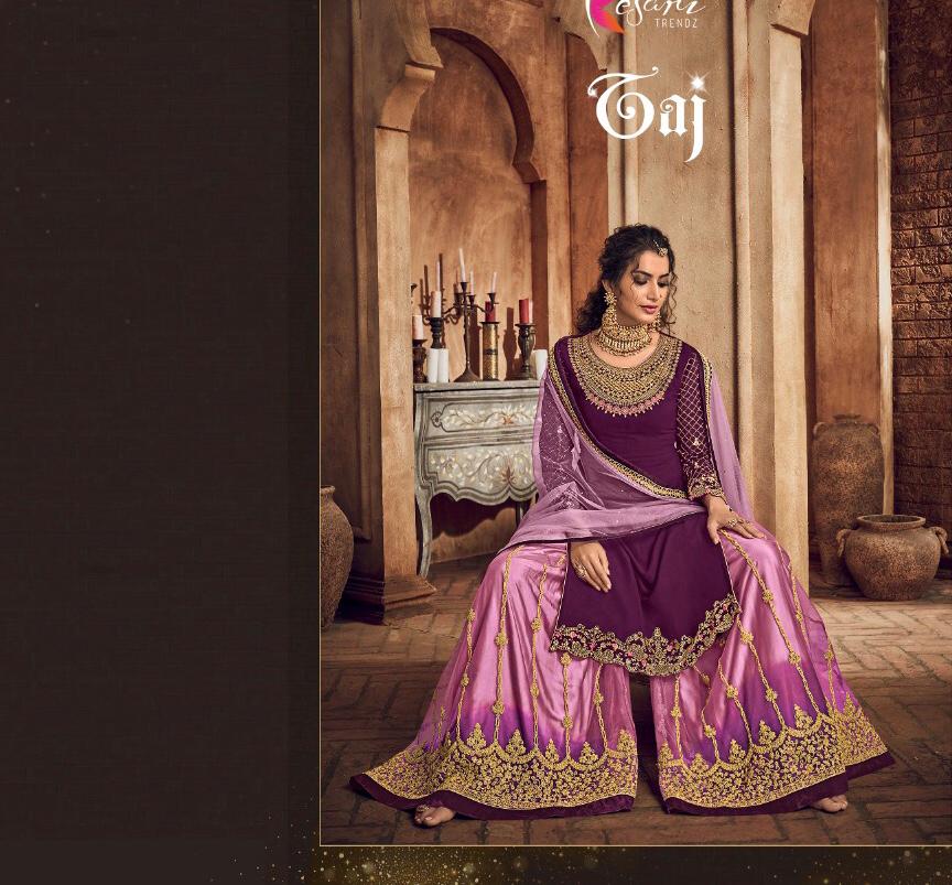 *Hello Dear customer* Now volume *TAJ vol - 1* Febric - *Top - Real Georgette with emboidery work with daimand* Inner- dual sontoon *Duppta- Real Georgette with buterfully net with four side lace emboidery work* *Plazo - Real Georgette with buterfully net with santoon inner *(plazo)* *full stich with (frant $back hevey emboidery & daymand* Price - 1999/-Gst extra Set to set Design -6 Dispatching- tomorrow |