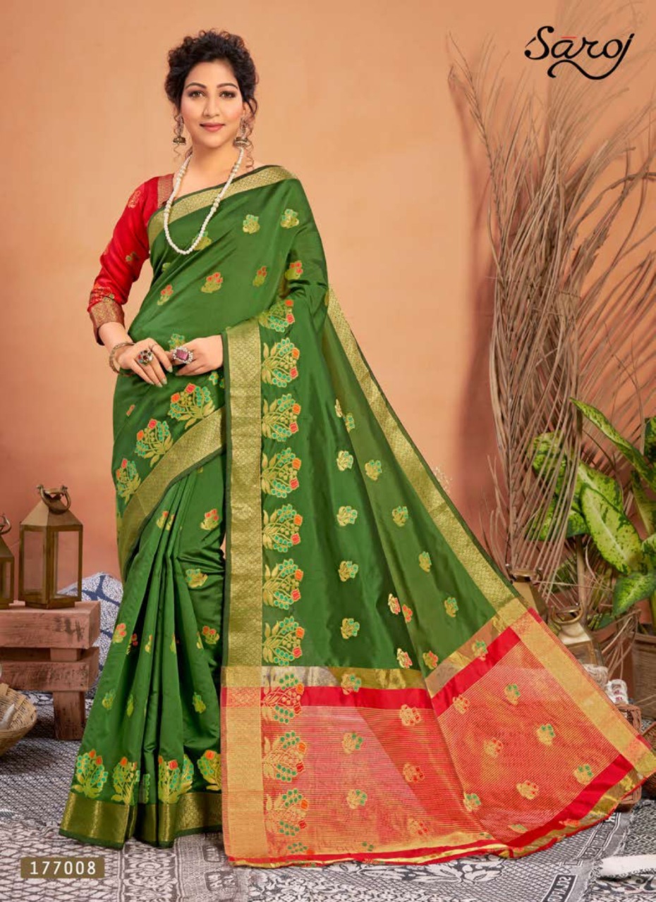 Brand - Saroj . *Tejaswini* Rate- 815 per pcs . Set to set GST 5 Percent Extra Fabric: Lichi Silk with Banarsi with Jacquard Border and Butti. Blouse: Silk. 8 Design in set |