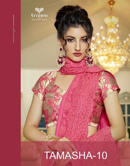 Tamasha Vol 10 By Triveni 96105 Series Designer Party Wear Saree Collection Wholesaler Surat