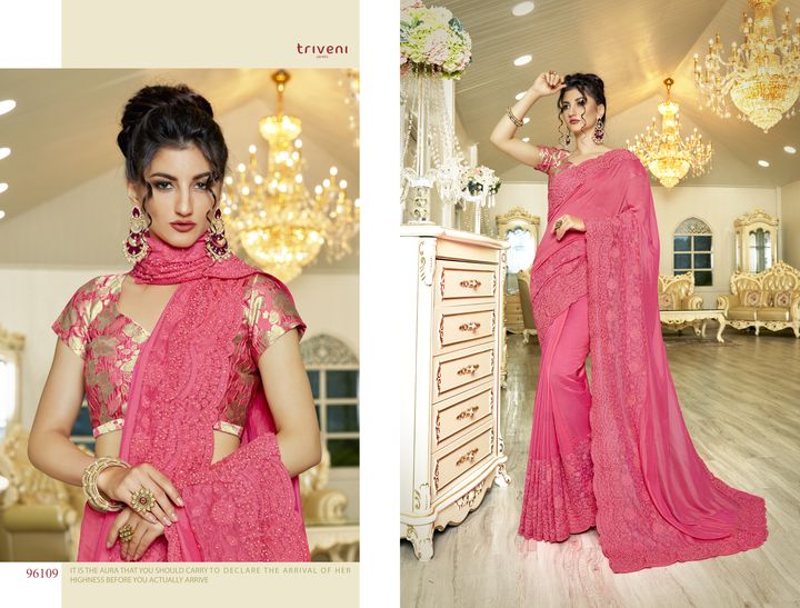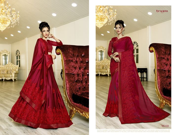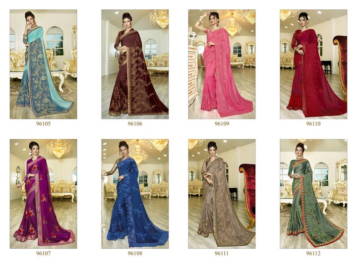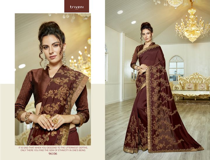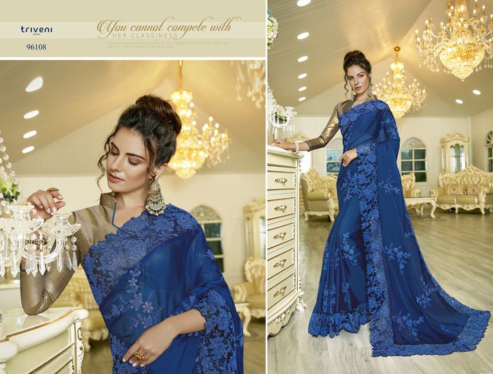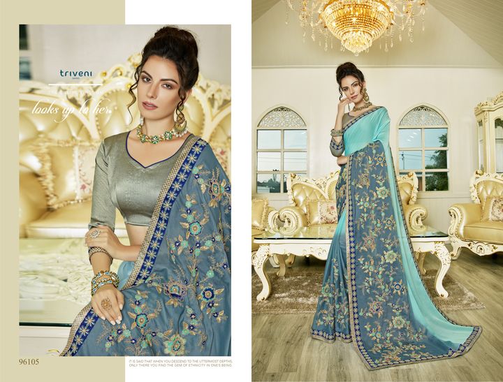 Buy Online Tamasha Vol 10 By Triveni 96105 Series Designer Party Wear Saree Collection Wholesaler Surat 8 Pcs of Full Catalogue at Wholesale Price. Looking for Tamasha Vol 10 By Triveni 96105 Series Designer Party Wear Saree Collection Wholesaler Surat Full Catalouge at Best Price? Buy Now Tamasha Vol 10 By Triveni 96105 Series Designer Party Wear Saree Collection Wholesaler Surat at Wholesale Rate of Rs 8728 with Total 8 Pcs from authroized dealer and supplier of TRIVENI Brand. Cost of Each piece is just only Rs 1091 which is very low and affordable price to resale the product in your retail store ,This is Surat based Wholesale Supplier & Dealer of TRIVENI Brand. Click on Brand name to Know more about TRIVENI Brand's products.Call or Whatsapp on 9898838984 for booking or enquiry