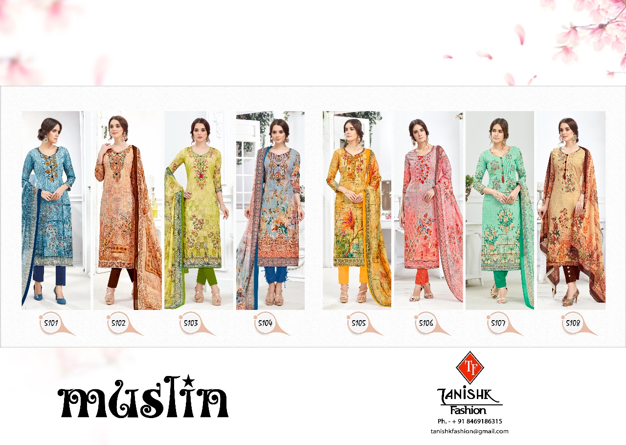 Tanishk Fashion Muslin 5101 Series Fancy Muslin Silk Salwar Kameez Catlog Wholesale Dealer And Supplier Surat