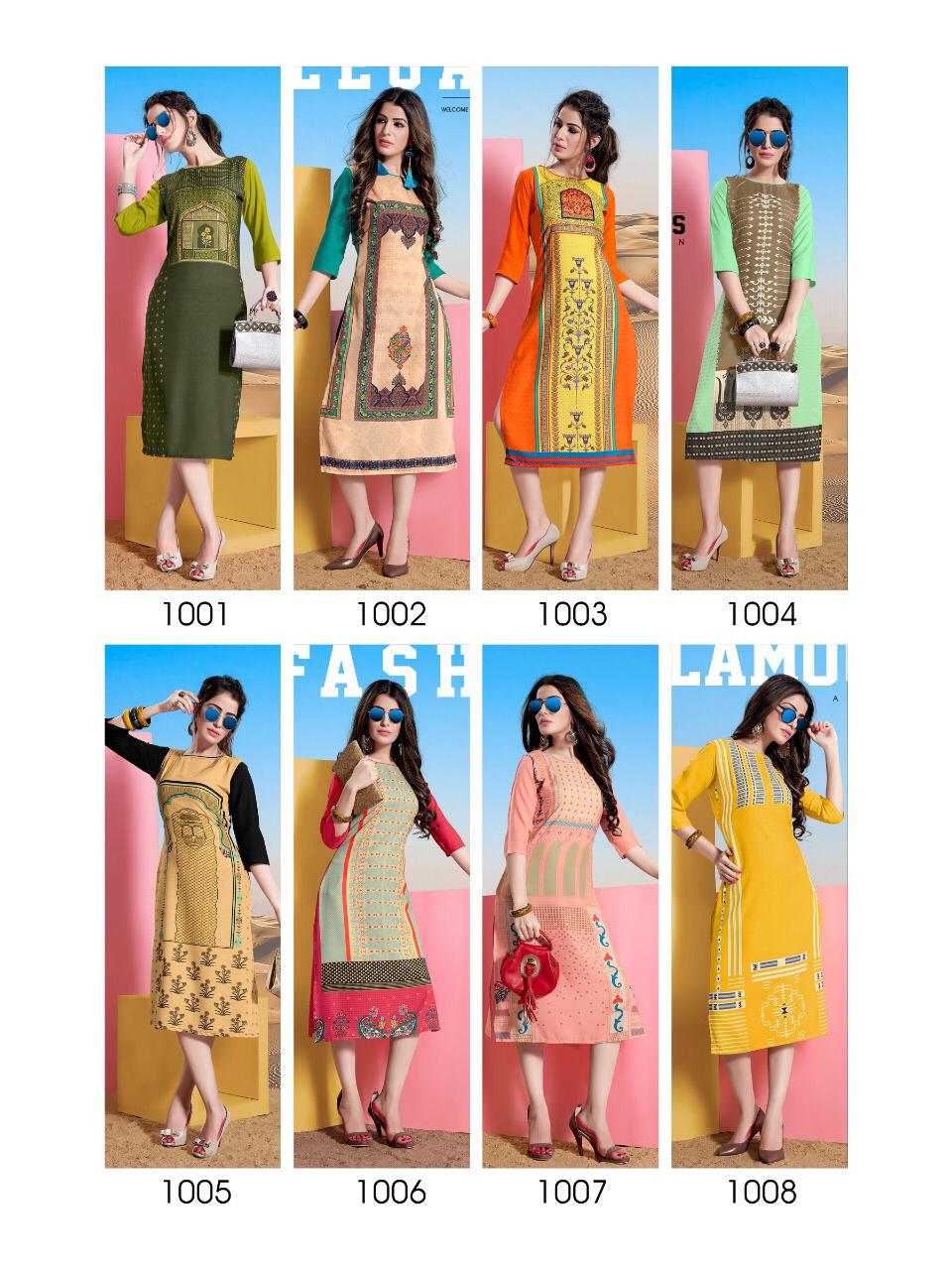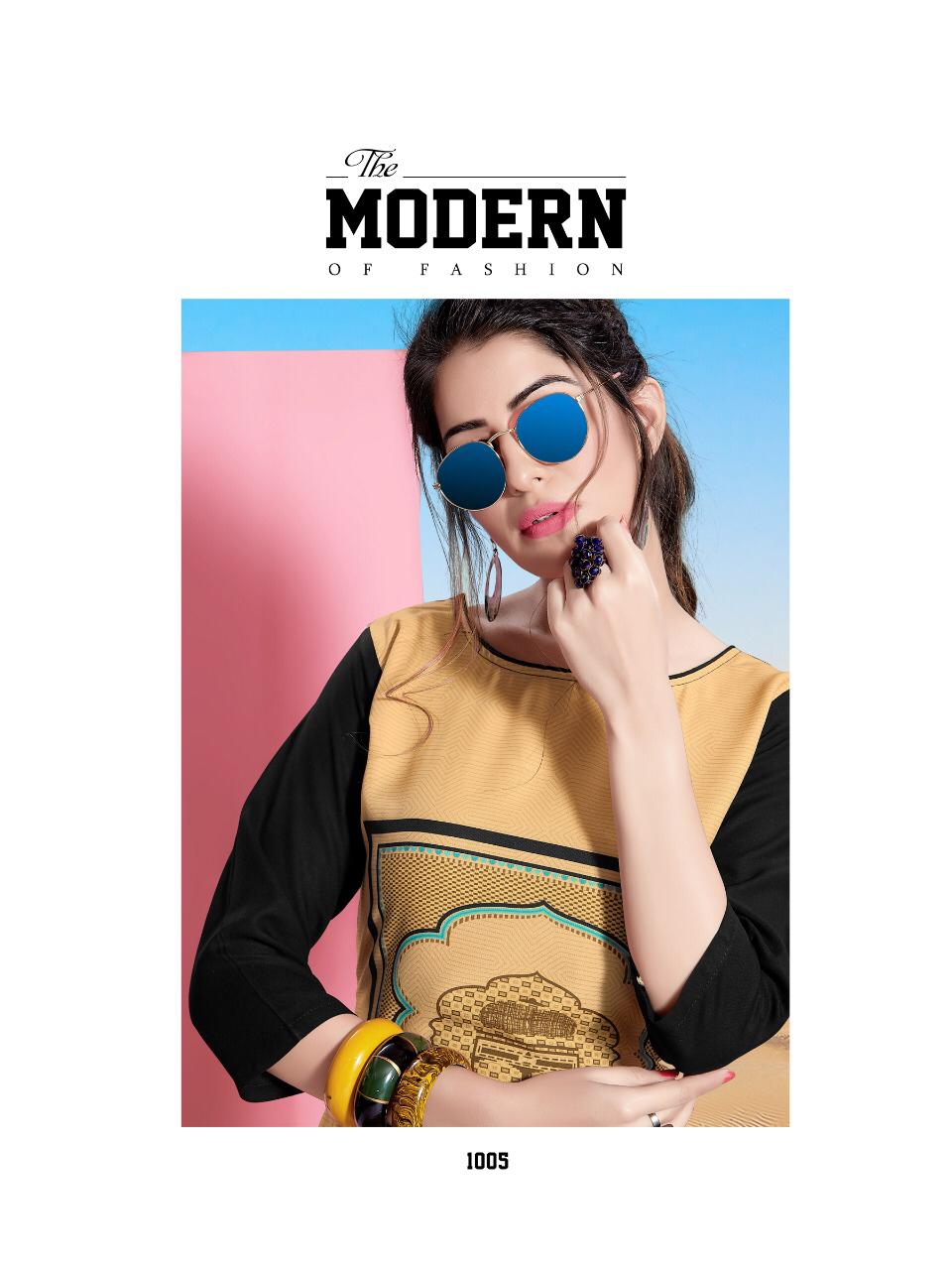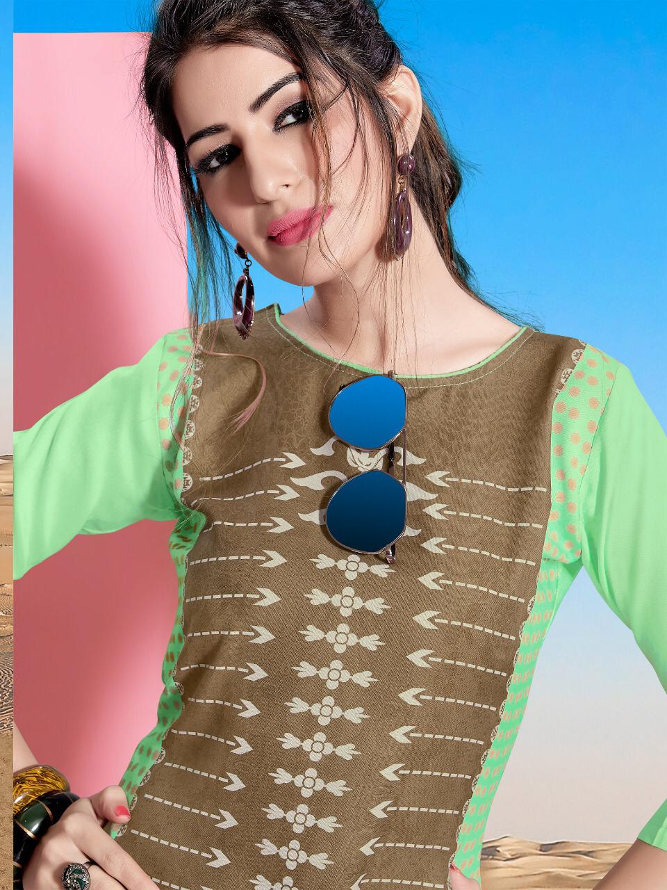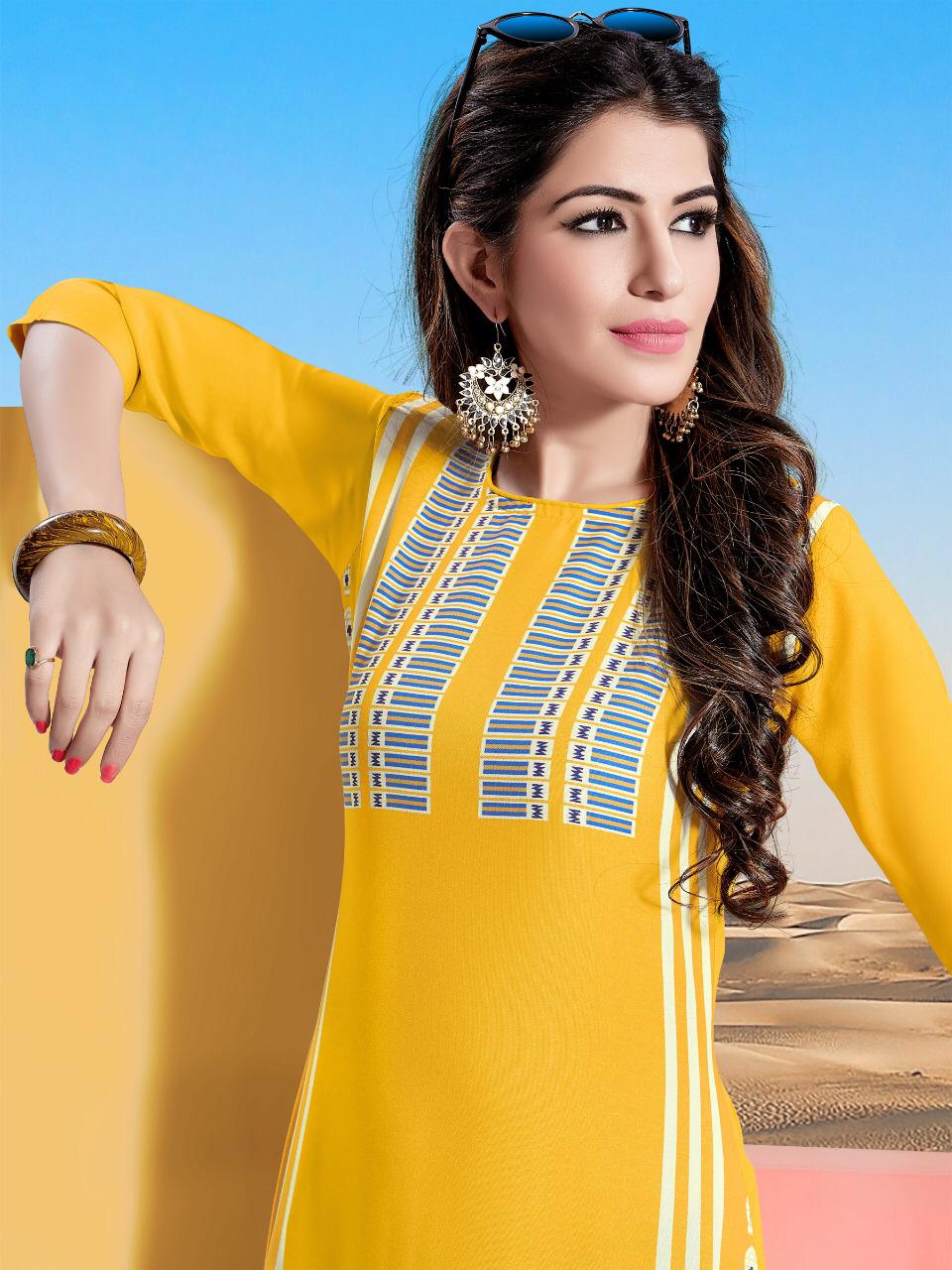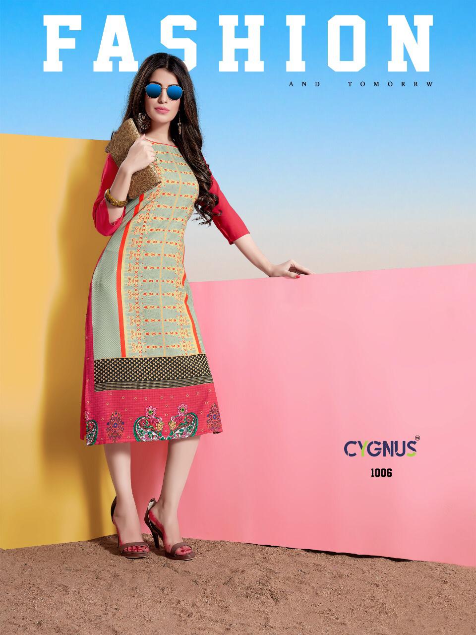 Buy Online Tannu By Cygnus 1001 Series Fancy Reyon Printed Kurti Catlog Wholesaler Surat 8 Pcs of Full Catalogue at Wholesale Price. Looking for Tannu By Cygnus 1001 Series Fancy Reyon Printed Kurti Catlog Wholesaler Surat Full Catalouge at Best Price? Buy Now Tannu By Cygnus 1001 Series Fancy Reyon Printed Kurti Catlog Wholesaler Surat at Wholesale Rate of Rs 2920 with Total 8 Pcs from authroized dealer and supplier of Brand. Cost of Each piece is just only Rs 365 which is very low and affordable price to resale the product in your retail store ,This is Surat based Wholesale Supplier & Dealer of Brand. Click on Brand name to Know more about Brand's products.Call or Whatsapp on 9898838984 for booking or enquiry