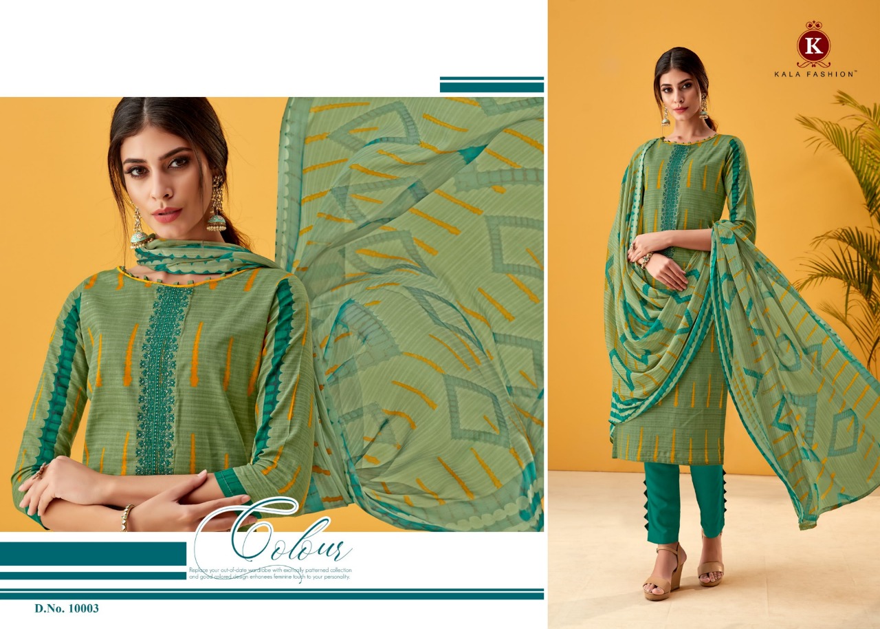 Tanya 3 By Kala Fashion Series 10001 To 10006 Cotton Printed Self Embroidered Suits Wholesale Dealer India