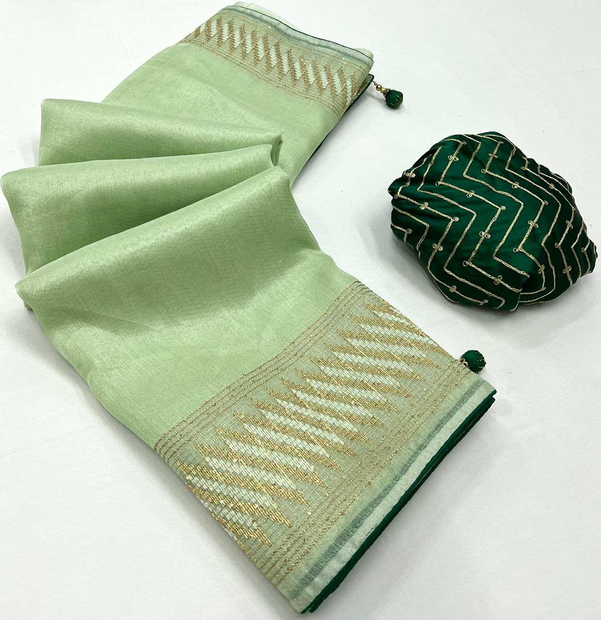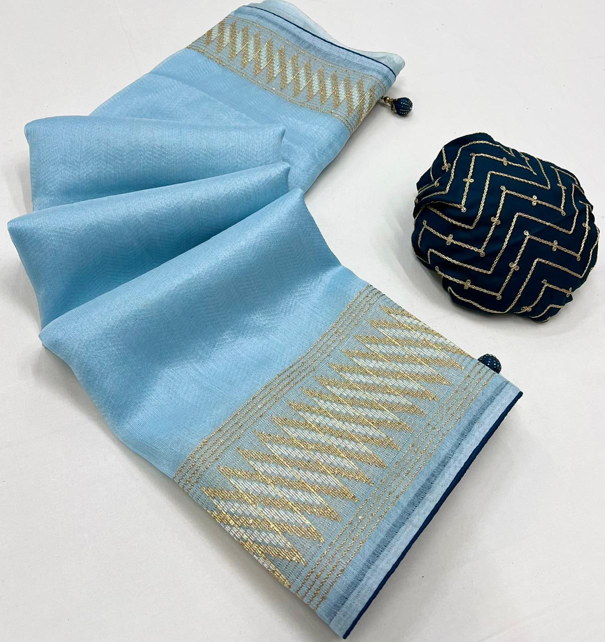 Tanya Lt Fabric Kora Silk With Fancy Fumka Double Blouse