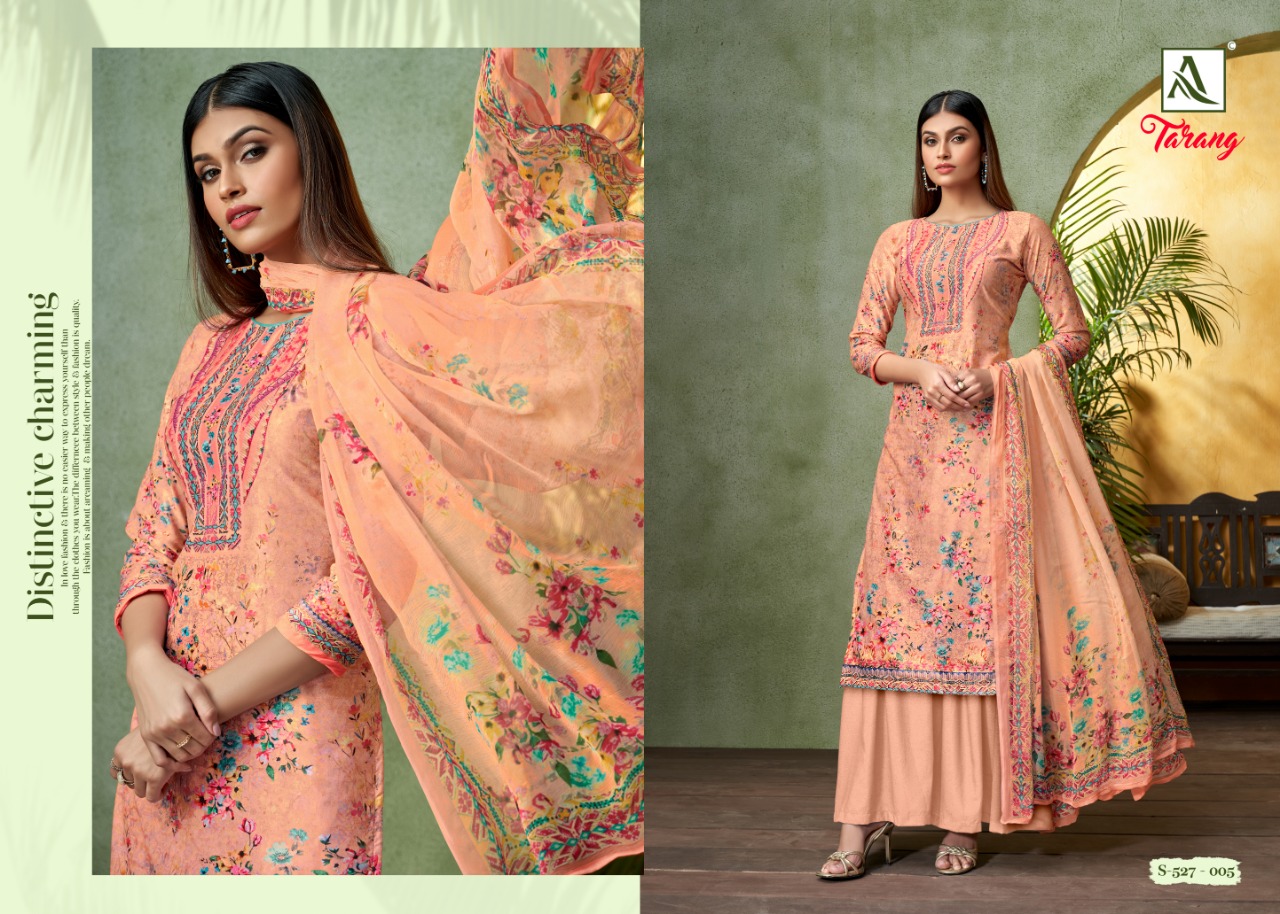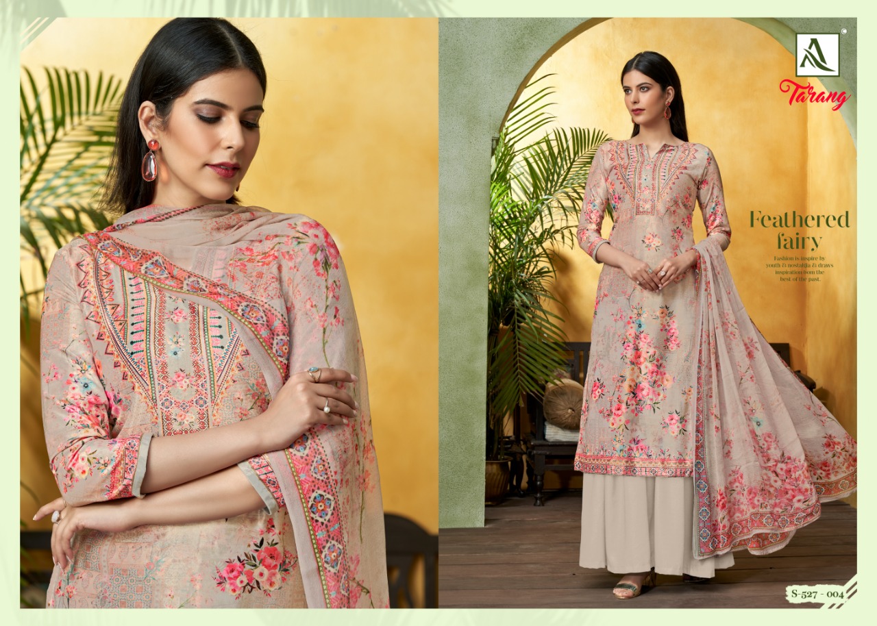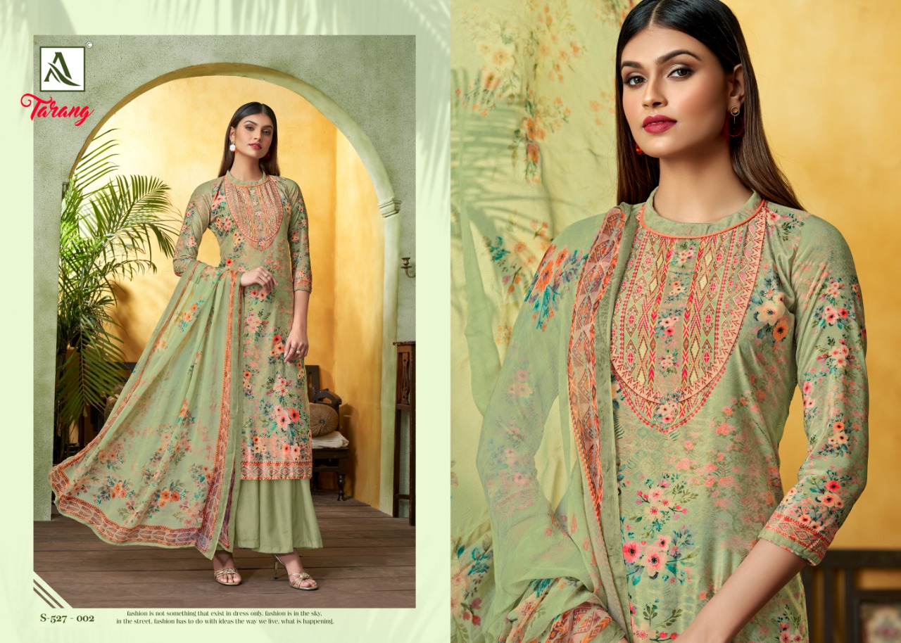 Buy Online Tarang By Alok Suit Manufacturer Traders Surat Gujrat 8 Pcs of Full Catalogue at Wholesale Price. Looking for Tarang By Alok Suit Manufacturer Traders Surat Gujrat Full Catalouge at Best Price? Buy Now Tarang By Alok Suit Manufacturer Traders Surat Gujrat at Wholesale Rate of Rs 4720 with Total 8 Pcs from authroized dealer and supplier of Brand. Cost of Each piece is just only Rs 590 which is very low and affordable price to resale the product in your retail store ,This is Surat based Wholesale Supplier & Dealer of Brand. Click on Brand name to Know more about Brand's products.Call or Whatsapp on 9898838984 for booking or enquiry