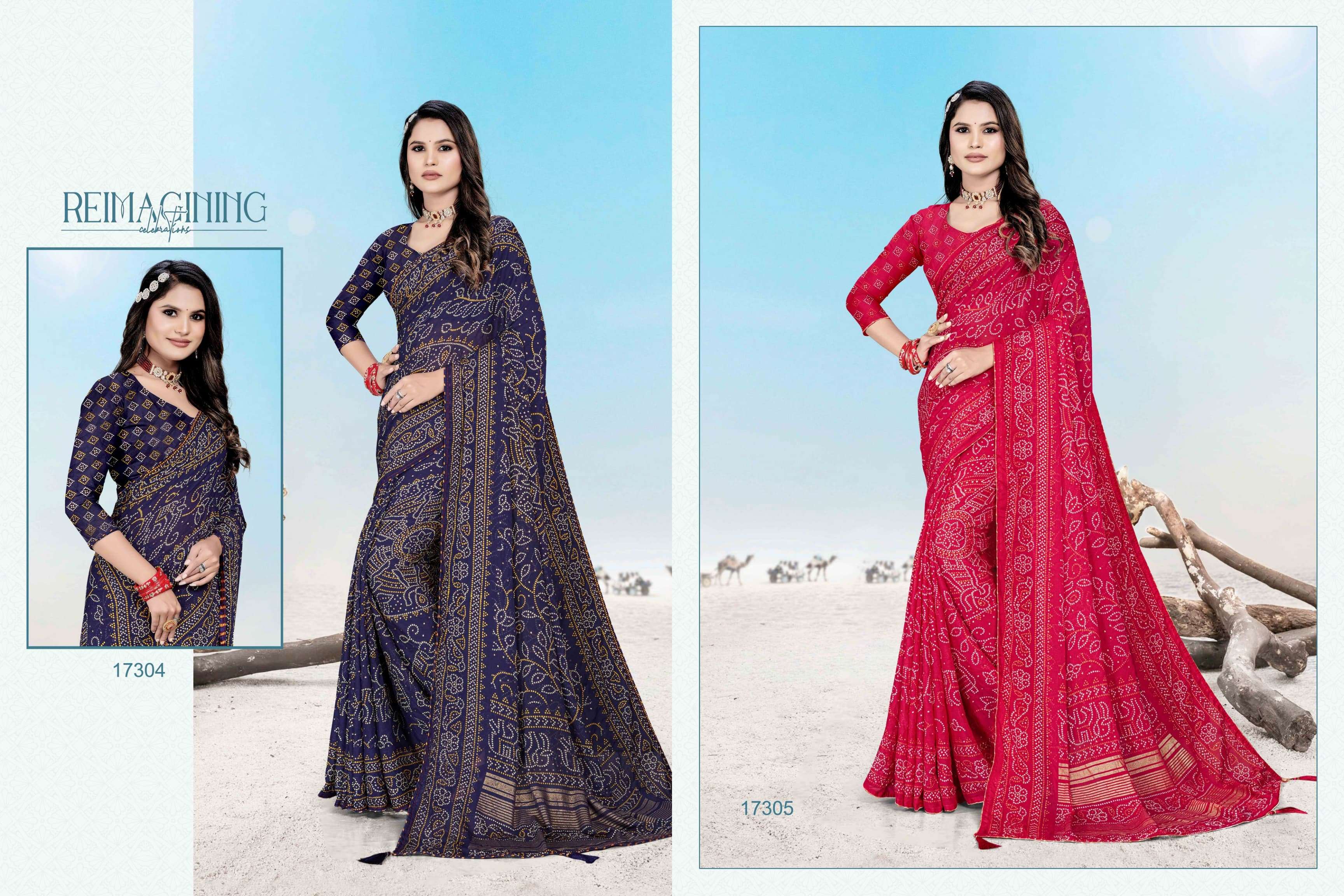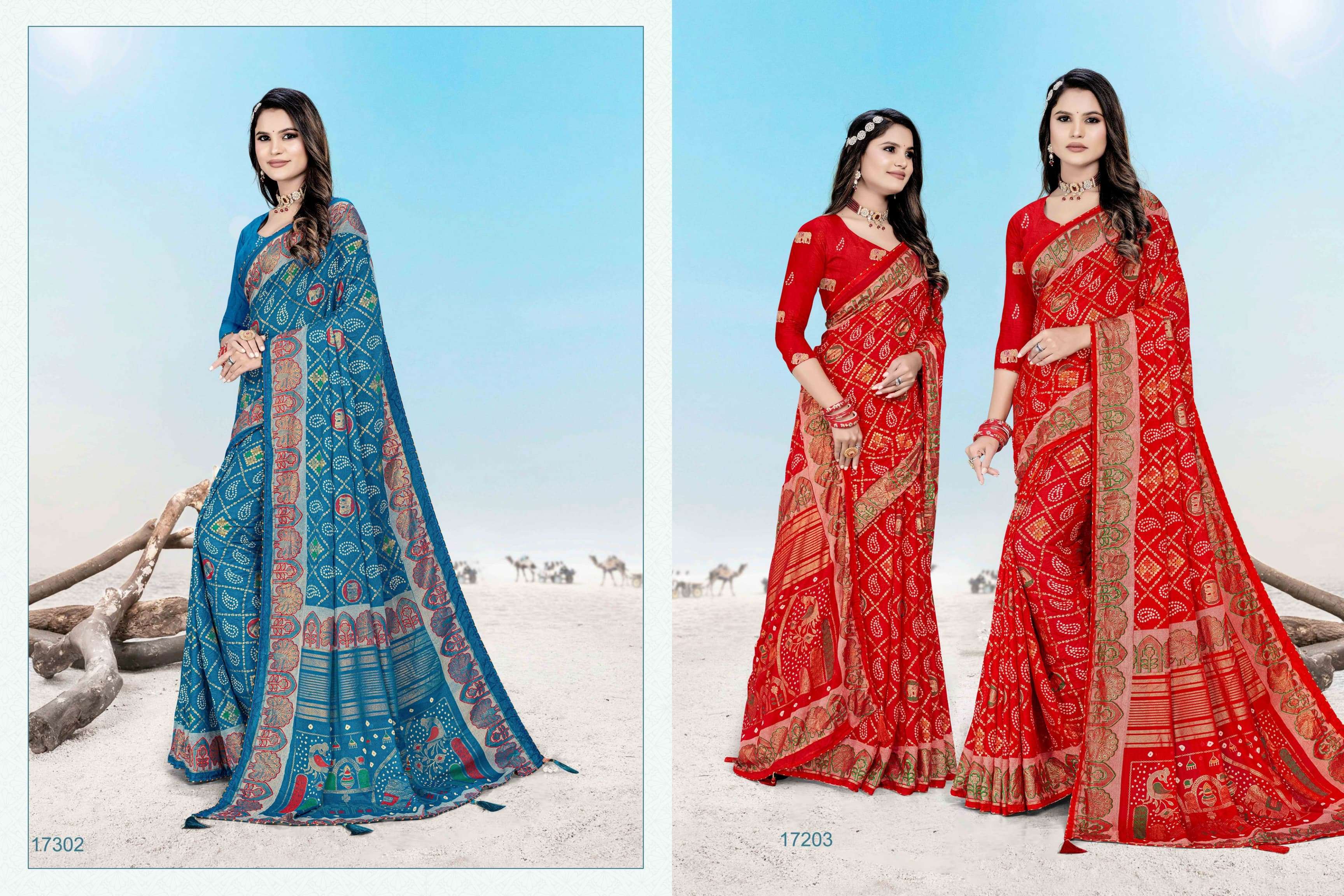 *NEW FANCY COLOUR BANDHANI CATALOUGE WITH MILL FOIL & PALLU TASSELS IN TRADITIONAL PRINTs BRAND NAME- *Jalnidhi* Catlog NAME- *TARANG* PCS - *8 PCS* Rate - *625/-* SERISE - *17301 TO 17308* FABRIC - *HEAVY DULL MOSS* BLOUSE - *SAME AS SAREE*👍🏻👍🏻 Gst 5℅ Extra