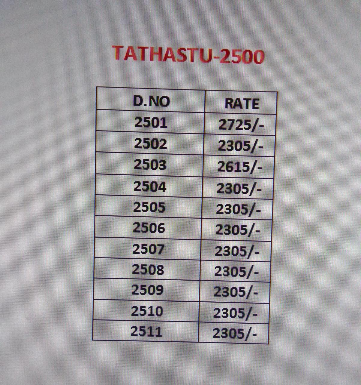 Brand - TATSTHU. Type - Saree. Series -2501 to 2511. * set & Loose & Singel & Multiple * Single extra ? on company price GST 5 Percent Extra. Delivery from today |