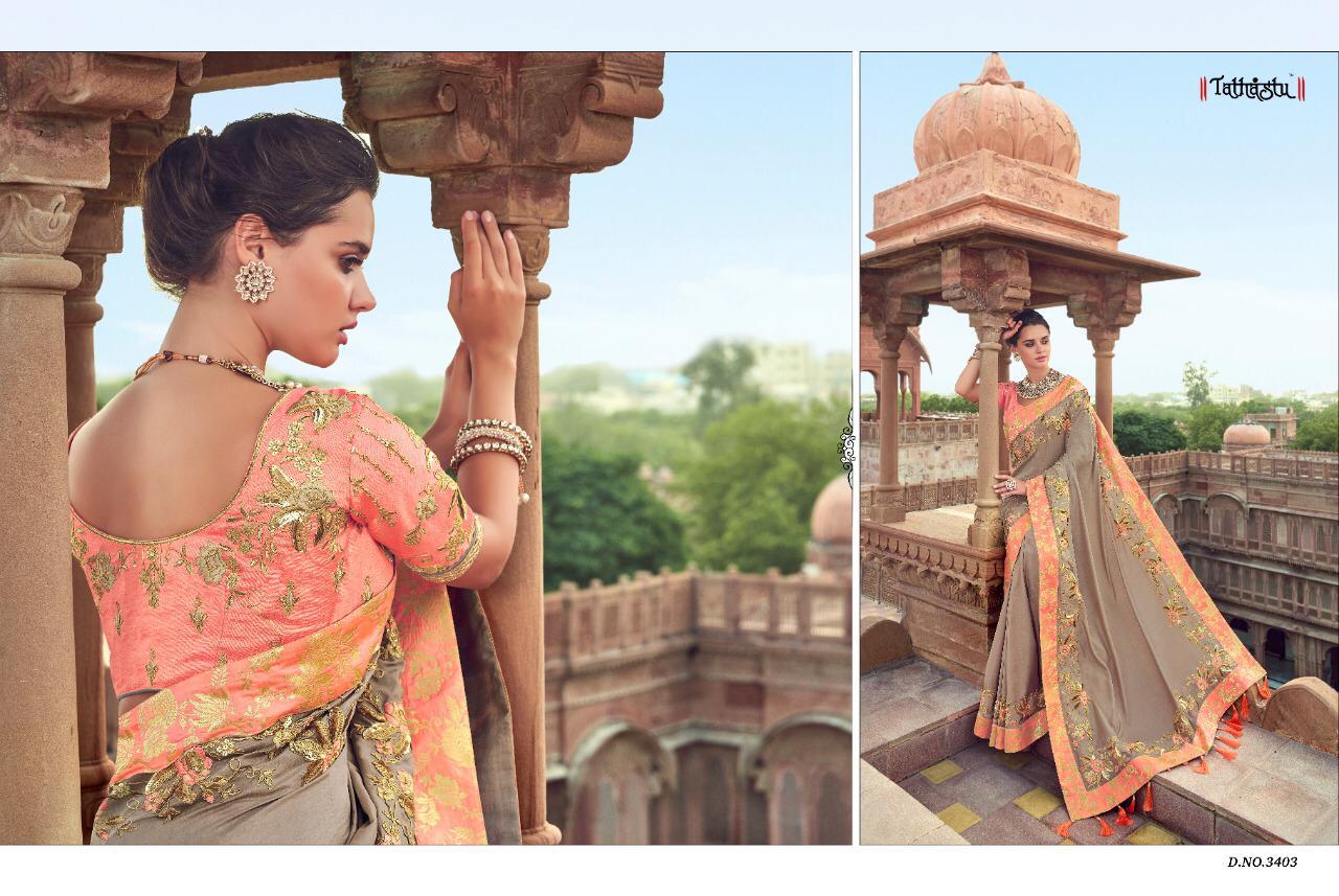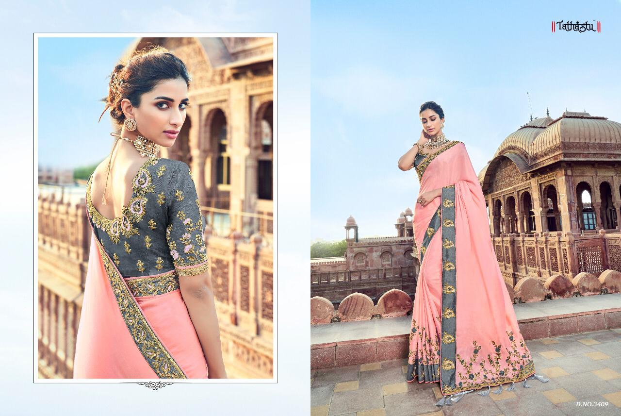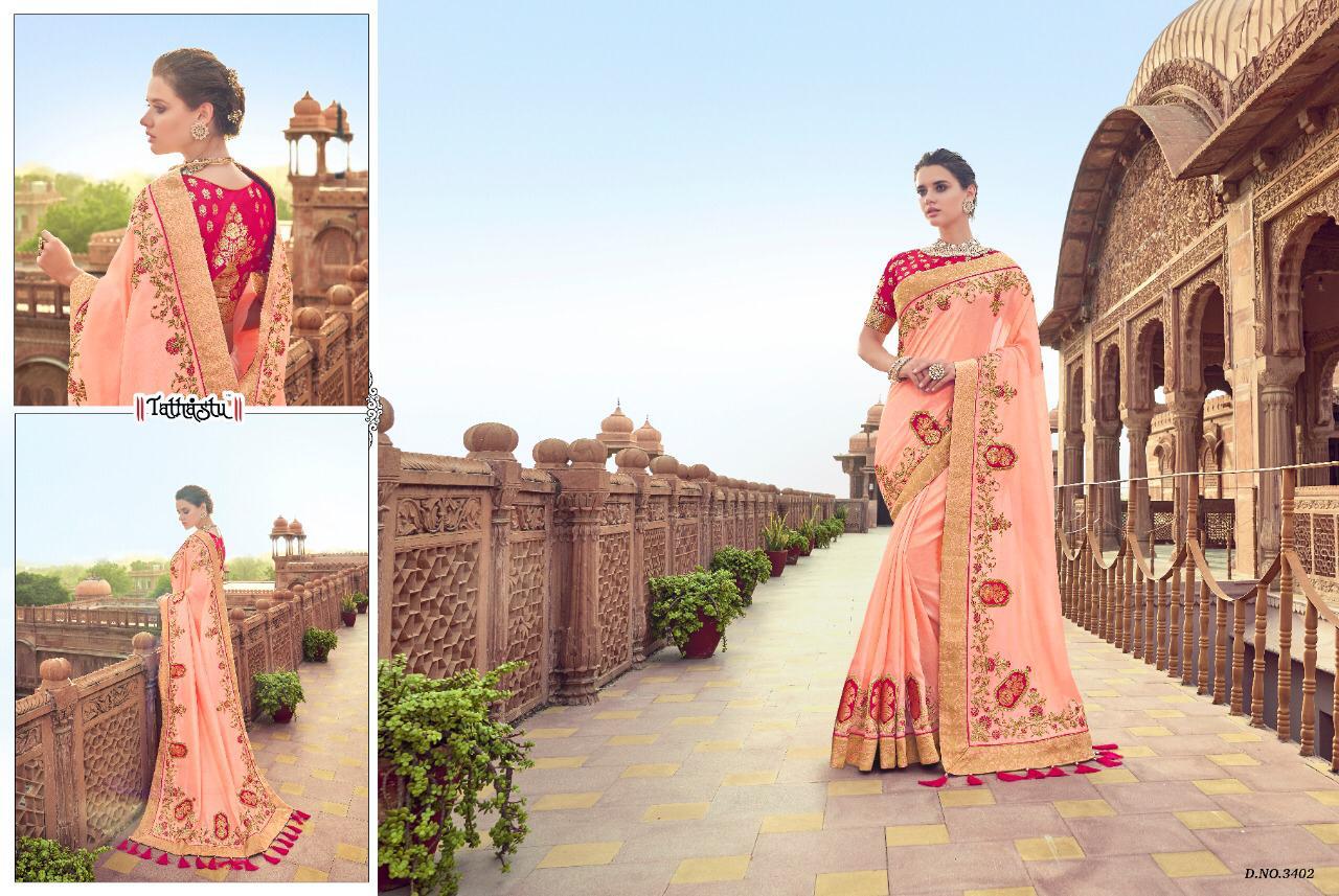 Buy Online Tathastu Series 3401 To 3409 Silk Designer Occasion Wear Sarees Single And Set Wholesale Supplier And Dealer India 0 Pcs of Full Catalogue at Wholesale Price. Looking for Tathastu Series 3401 To 3409 Silk Designer Occasion Wear Sarees Single And Set Wholesale Supplier And Dealer India Full Catalouge at Best Price? Buy Now Tathastu Series 3401 To 3409 Silk Designer Occasion Wear Sarees Single And Set Wholesale Supplier And Dealer India at Wholesale Rate of Rs 0 with Total 0 Pcs from authroized dealer and supplier of TATHASTU Brand. Cost of Each piece is just only Rs 0 which is very low and affordable price to resale the product in your retail store ,This is Surat based Wholesale Supplier & Dealer of TATHASTU Brand. Click on Brand name to Know more about TATHASTU Brand's products.Call or Whatsapp on 9898838984 for booking or enquiry