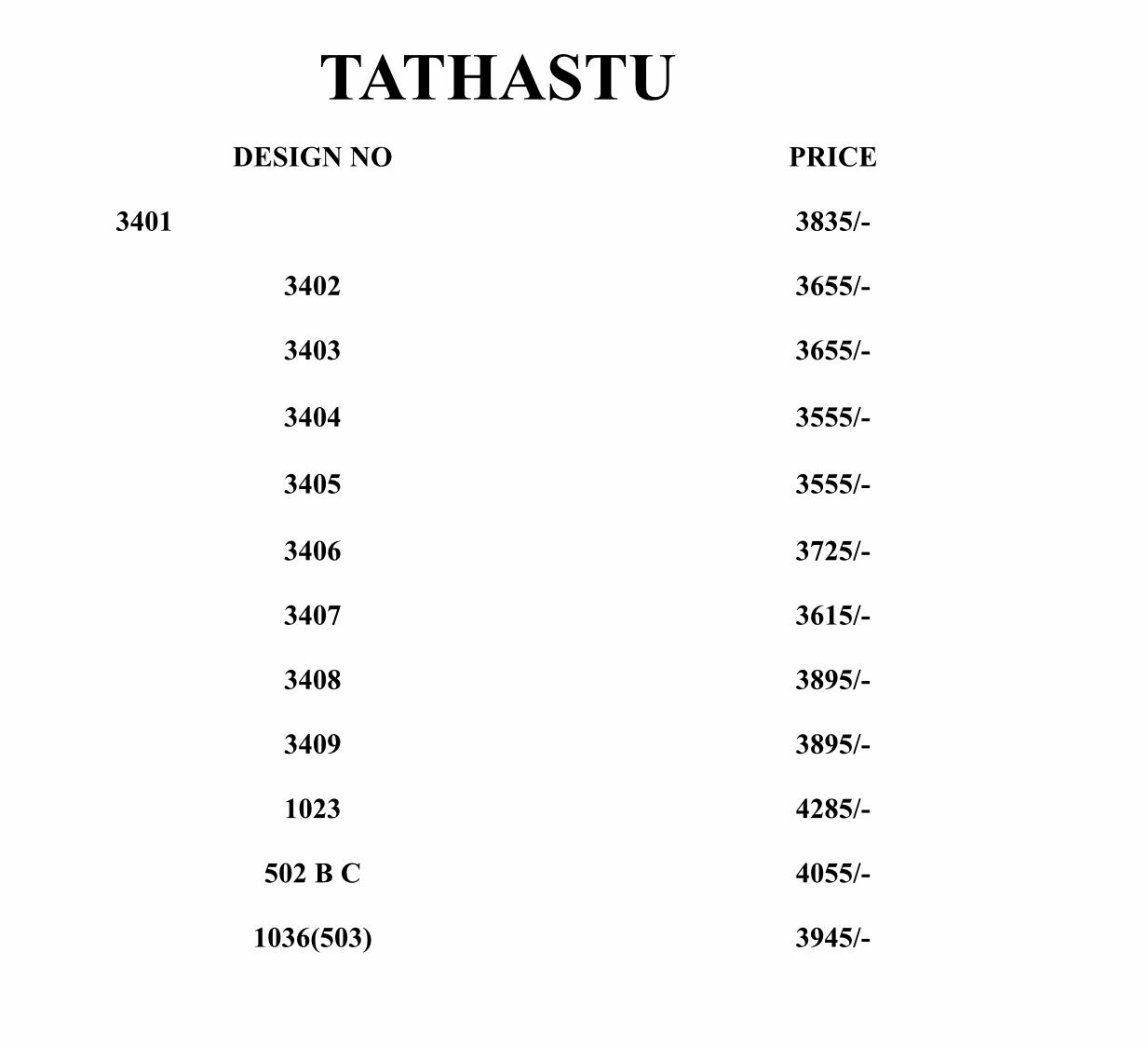 Brand - TATHASTU. Series - 3401 to 3409. * set & loose & Singel * Single Extra 100 on company price list GST 5 Percent Extra. Delivery- Today |
