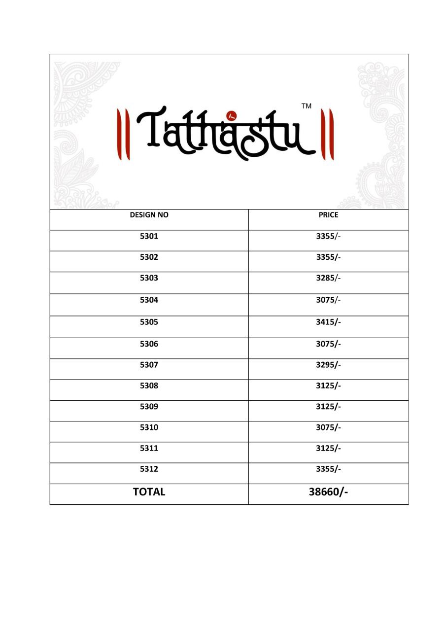 Buy Online Tathastu Series 5301 To 5312 Pure Dola Silk Saree Single Avilable Wholesaler Surat Gujarat 12 Pcs of Full Catalogue at Wholesale Price. Looking for Tathastu Series 5301 To 5312 Pure Dola Silk Saree Single Avilable Wholesaler Surat Gujarat Full Catalouge at Best Price? Buy Now Tathastu Series 5301 To 5312 Pure Dola Silk Saree Single Avilable Wholesaler Surat Gujarat at Wholesale Rate of Rs 0 with Total 12 Pcs from authroized dealer and supplier of TATHASTU Brand. Cost of Each piece is just only Rs 0 which is very low and affordable price to resale the product in your retail store ,This is Surat based Wholesale Supplier & Dealer of TATHASTU Brand. Click on Brand name to Know more about TATHASTU Brand's products.Call or Whatsapp on 9898838984 for booking or enquiry
