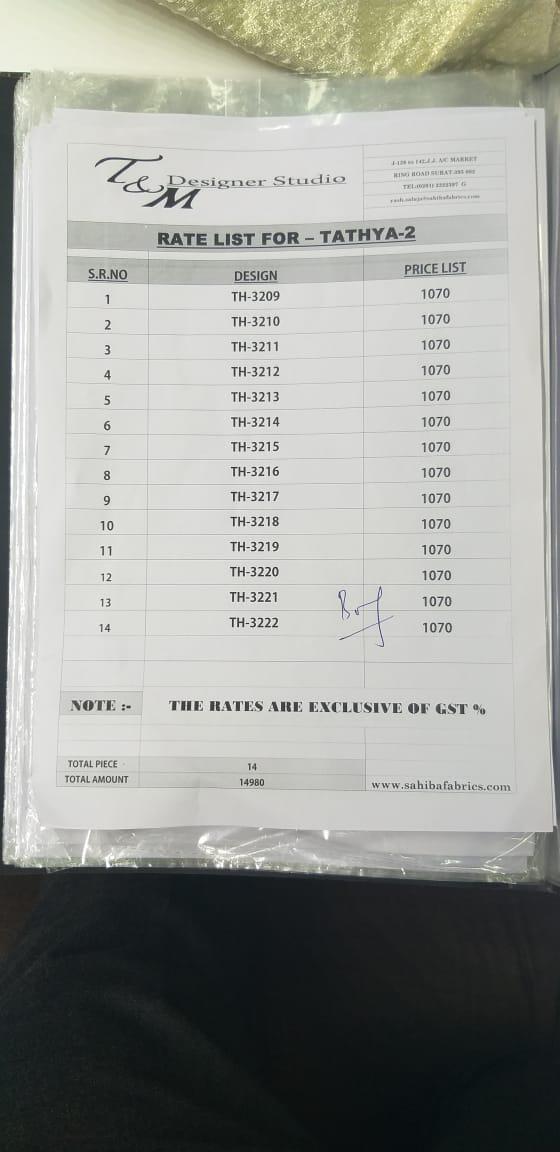 Brand - T & M . Catlog name - TATHYA -2. Set to set. GST 5 Percent Extra. Delivery 3-4 days . Book your order now |