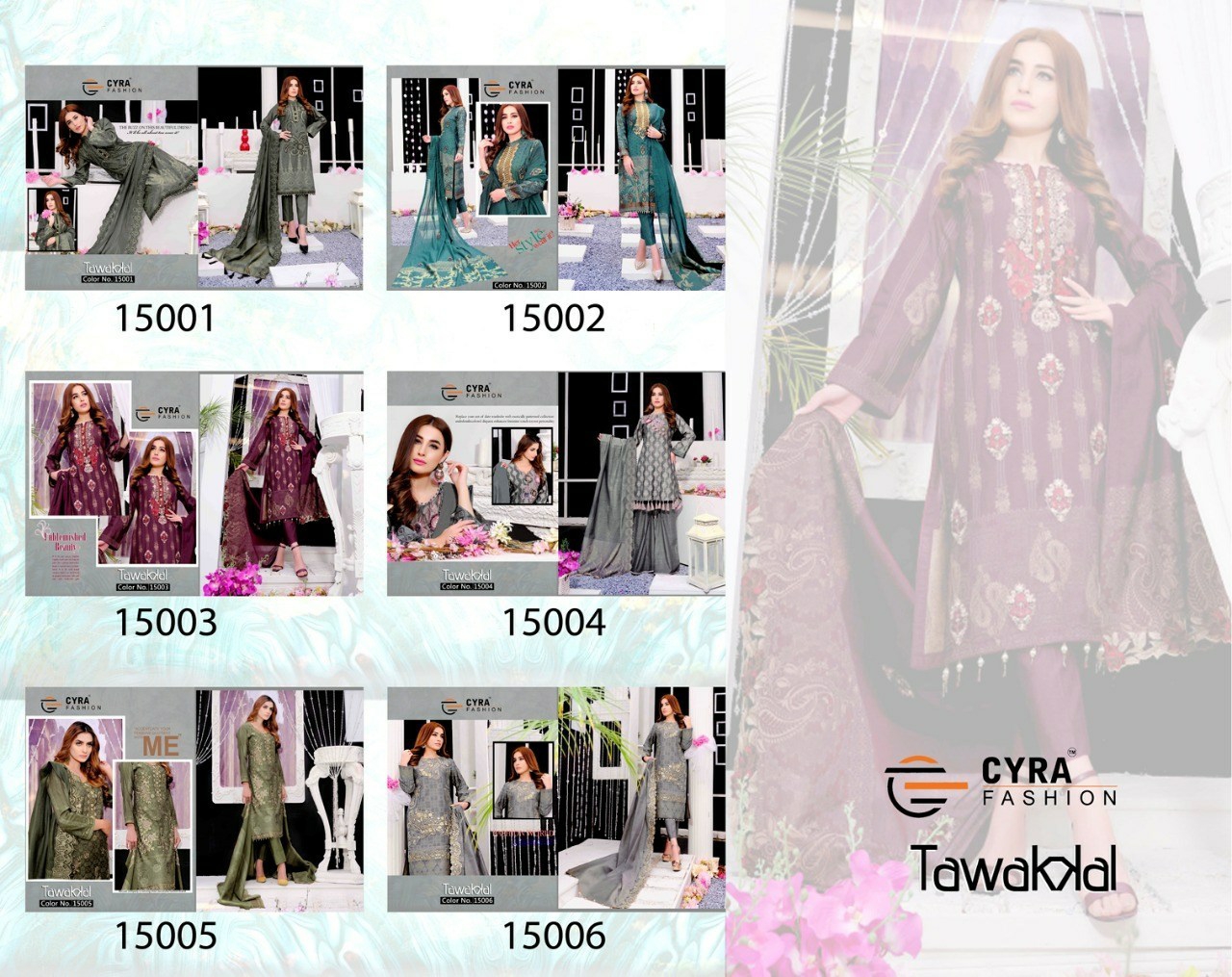 Buy Online Tawakkal By Cyra Fashion Cambric Cotton Suits Wholesale Supplier Gujarat 6 Pcs of Full Catalogue at Wholesale Price. Looking for Tawakkal By Cyra Fashion Cambric Cotton Suits Wholesale Supplier Gujarat Full Catalouge at Best Price? Buy Now Tawakkal By Cyra Fashion Cambric Cotton Suits Wholesale Supplier Gujarat at Wholesale Rate of Rs 4794 with Total 6 Pcs from authroized dealer and supplier of Brand. Cost of Each piece is just only Rs 799 which is very low and affordable price to resale the product in your retail store ,This is Surat based Wholesale Supplier & Dealer of Brand. Click on Brand name to Know more about Brand's products.Call or Whatsapp on 9898838984 for booking or enquiry