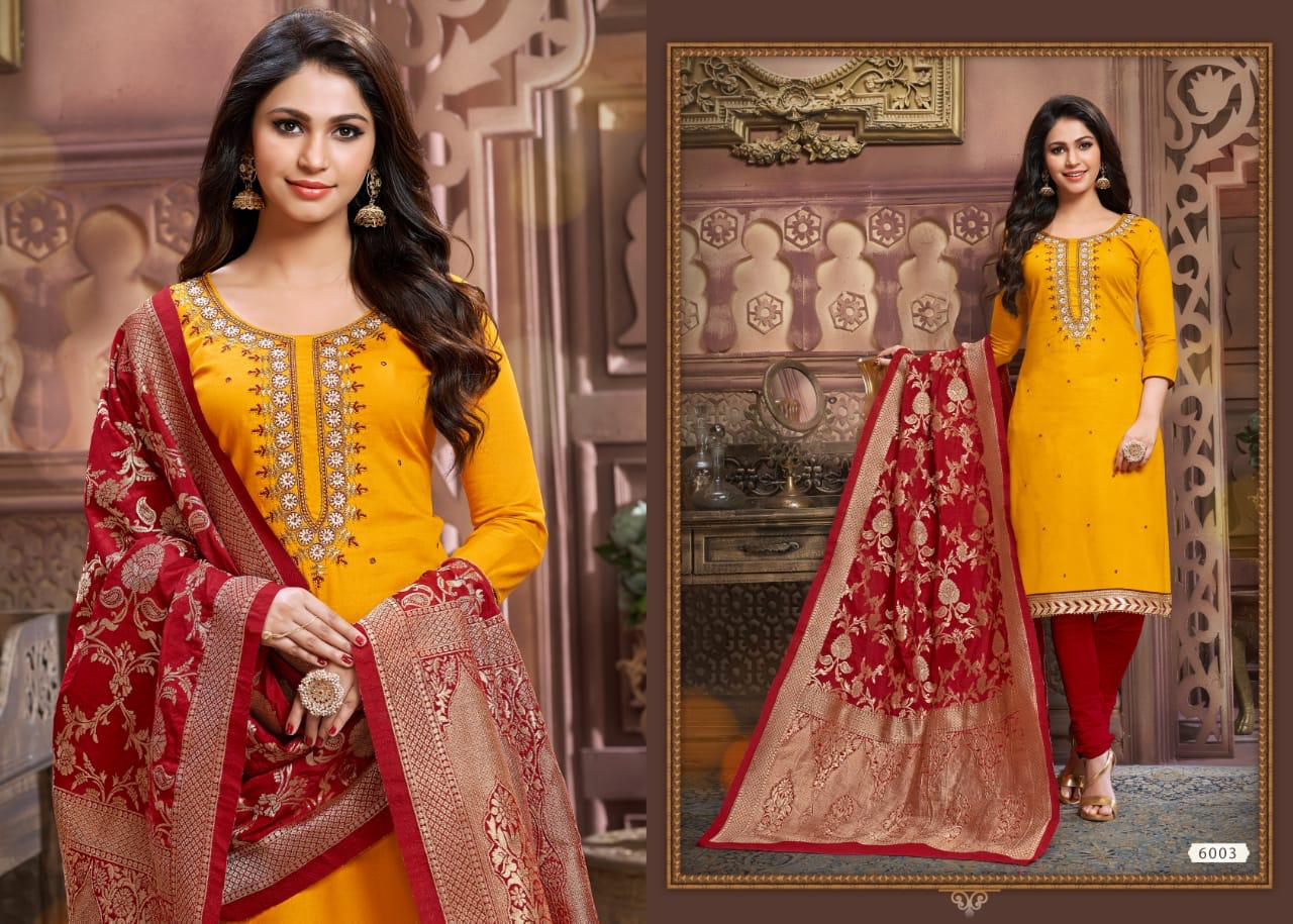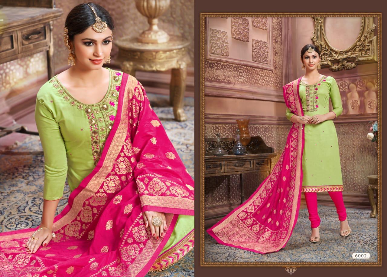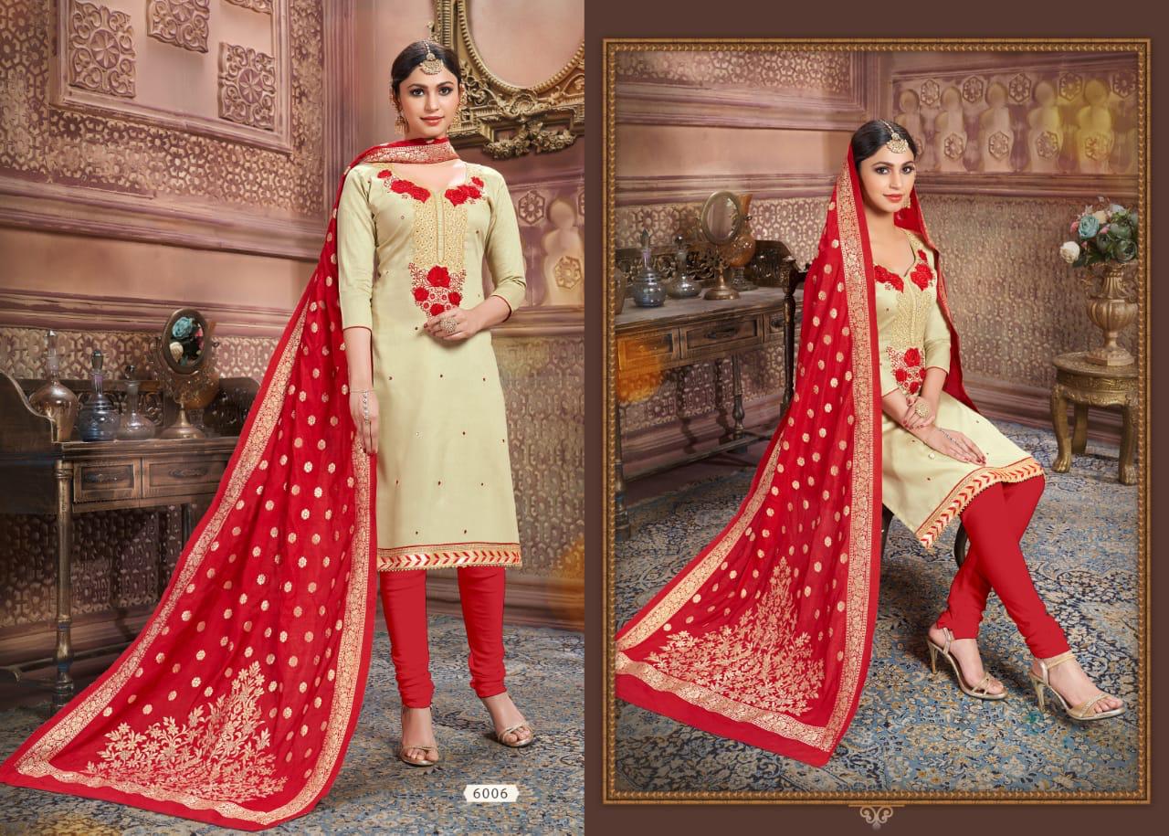 *"UTSAV SUITS"*_ BRAND CREATED BY YOU It is a brand synonymous with sophistication and style it is for the women of today,who prefers to make a statement whenever she step out. We r now Introducing *..."TAZIN VOL. 5"...* KHATLI WORK Fabric Details:- ? Top :-Glaze Cotton ? Bot :- Semi loan ??Dup :-Pure Banarasi ? Rate :- 8?3?5? Per Pcs D Set To set. GST 5 Percent Extra. Delivery 5-6 days ?DESIGN:-. 6? Have a look to this awesome catalogue & book your orders... Always with you.... Team:- UTSAV SUITS |