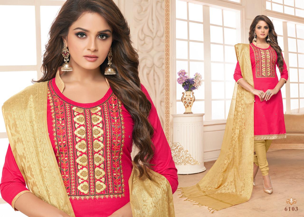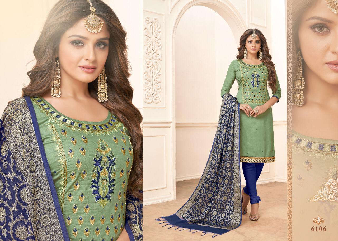 *"UTSAV SUITS"*_ BRAND CREATED BY YOU It is a brand synonymous with sophistication and style it is for the women of today,who prefers to make a statement whenever she step out. We r now Introducing *..."TAZIN VOL. 6"...* KHATLI WORK Fabric Details:- ? Top :-Glaze Cotton ? Bot :- Semi loan ??Dup :-Pure Banarasi ? Rate :- 8?3?5? ?DESIGN:-. 6? Have a look to this awesome catalogue & book your orders... Always with you.... Team:- UTSAV SUITS Set To Set. GST 5 Percent Extra. Delivery-21-05-19 |
