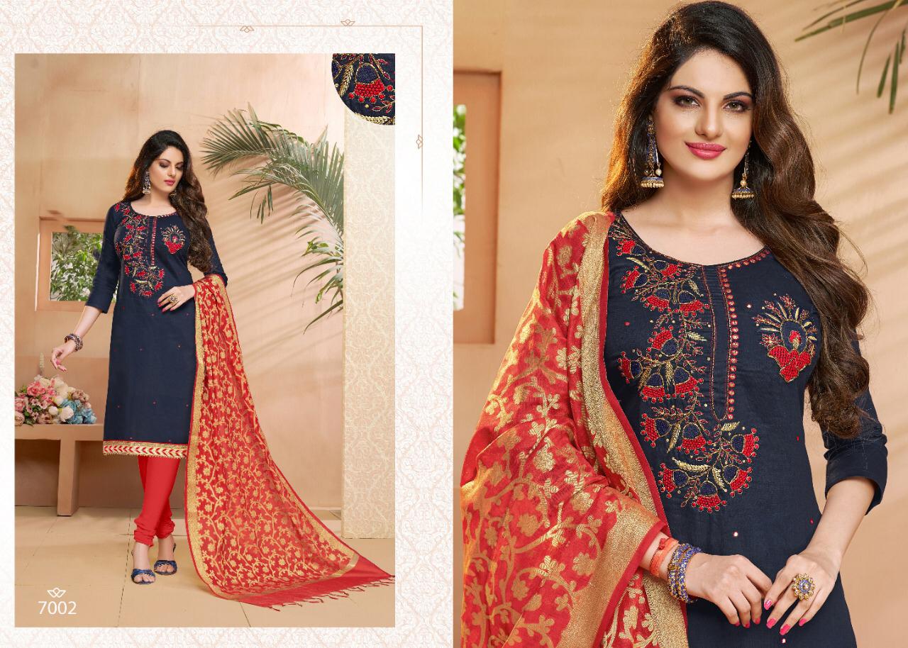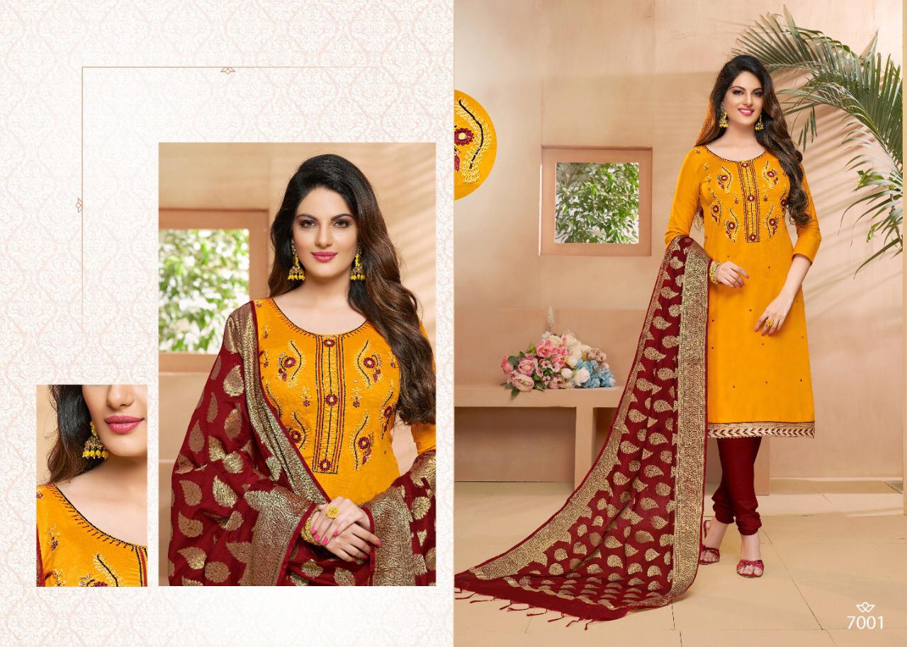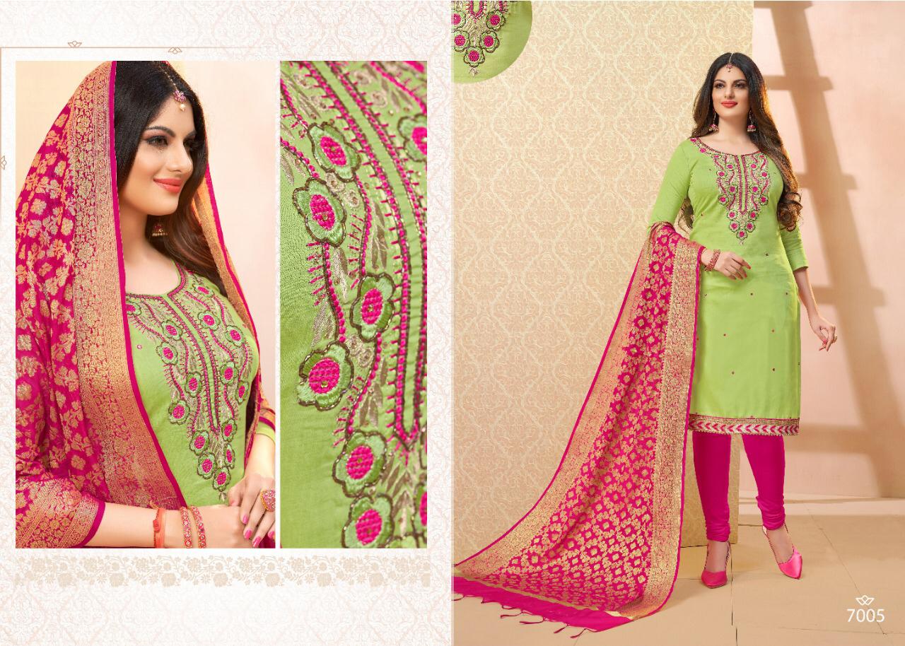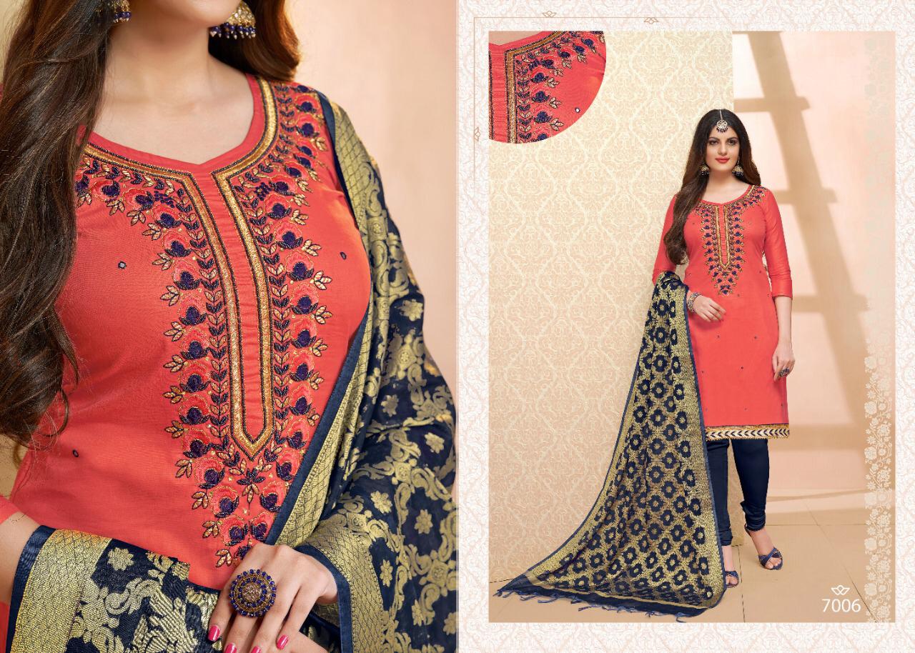 *"UTSAV SUITS"*_ BRAND CREATED BY YOU *..."TAZIN VOL. 7"...* KHATLI WORK Fabric Details:- ? Top :-Glaze Cotton ? Bot :- Semi loan ??Dup :-Pure Banarasi Jacard ? Rate :- 6??9??5? per Pcs . Set to set. GST 5 Percent Extra ?DESIGN:-. 6? Have a look to this awesome catalogue & book your orders... Always with you.... Team:- UTSAV SUITS |