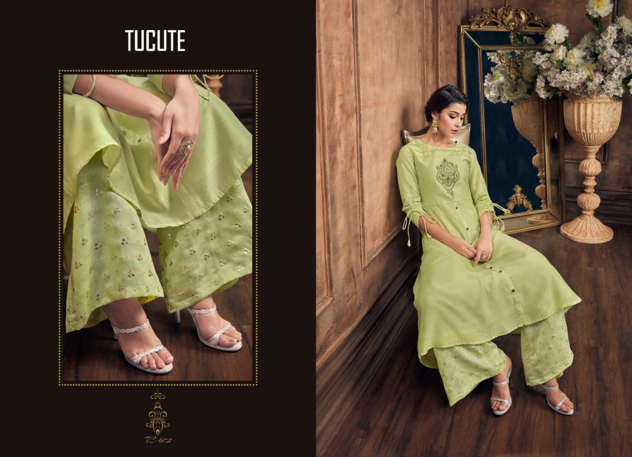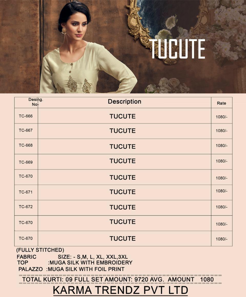 *KARMA TRENDZ* _presents_ *Casual partywear exclusive Readymade collections* *?TC-666 SERIES?* we know you love our catalogue thank you for your love and wonderful support. ?Description? ?Top: *Muga silk with embroidered with Inner* ?Palazzo: *Muga silk with foil print*. Size: *S,M,L,XL,XXL,3XL* ?Beautiful -09 design set *#Festival_collection* *#Fancy accessoires* *RATE LIST & FABRIC DESCRIPTION ATTACHED* Set To Set . GST Extra *DISPATCH:-24 SEPTEMBER* *PRE-BOOKING START* |