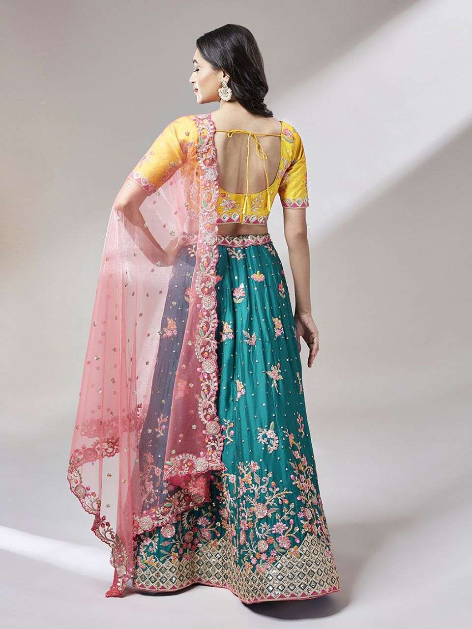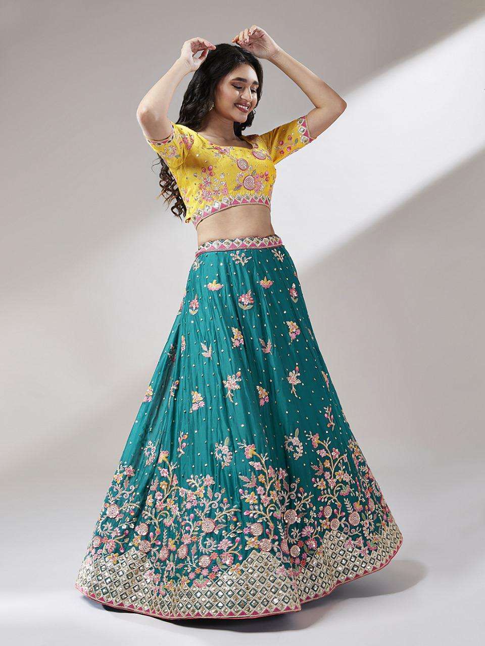 | Catalog | Teal Pure Georgette Sequinse Work Semi-Stitched Lehenga & Unstitched Blouse with Dupatta |