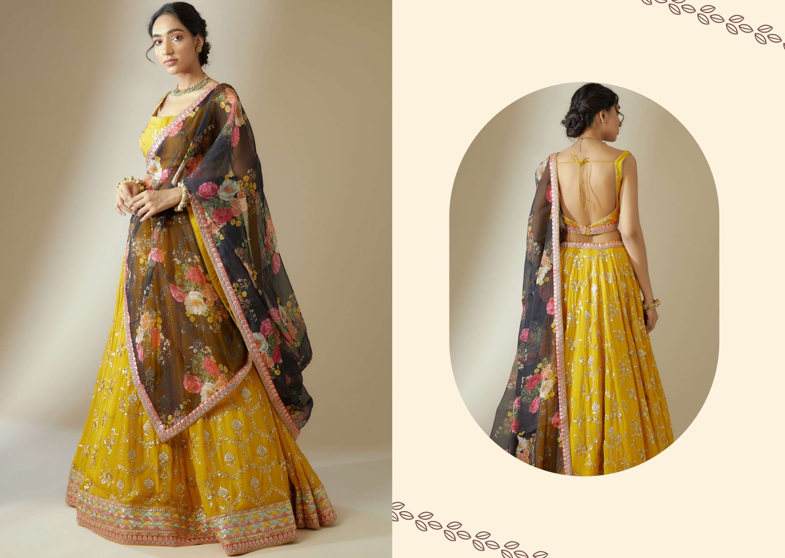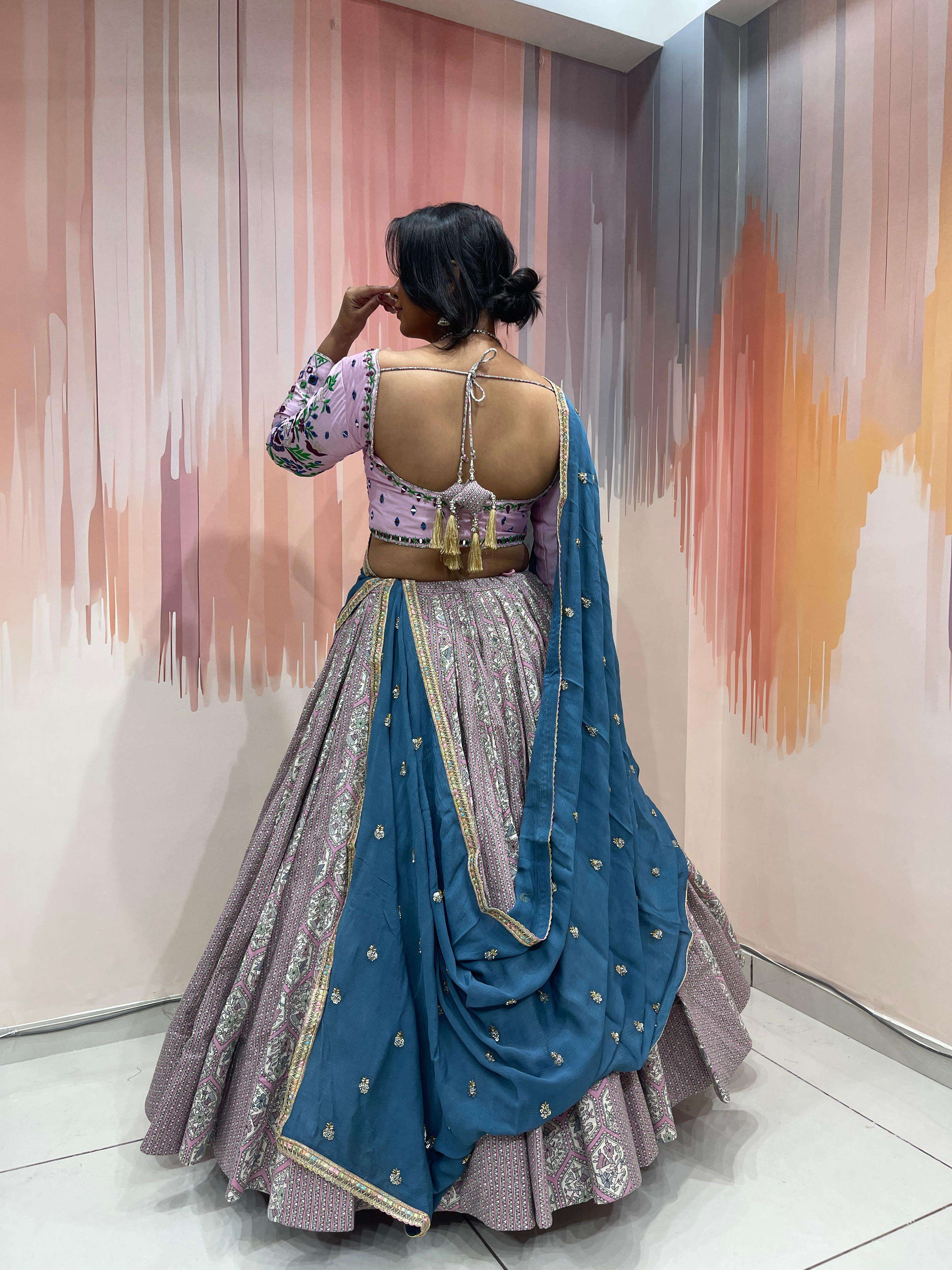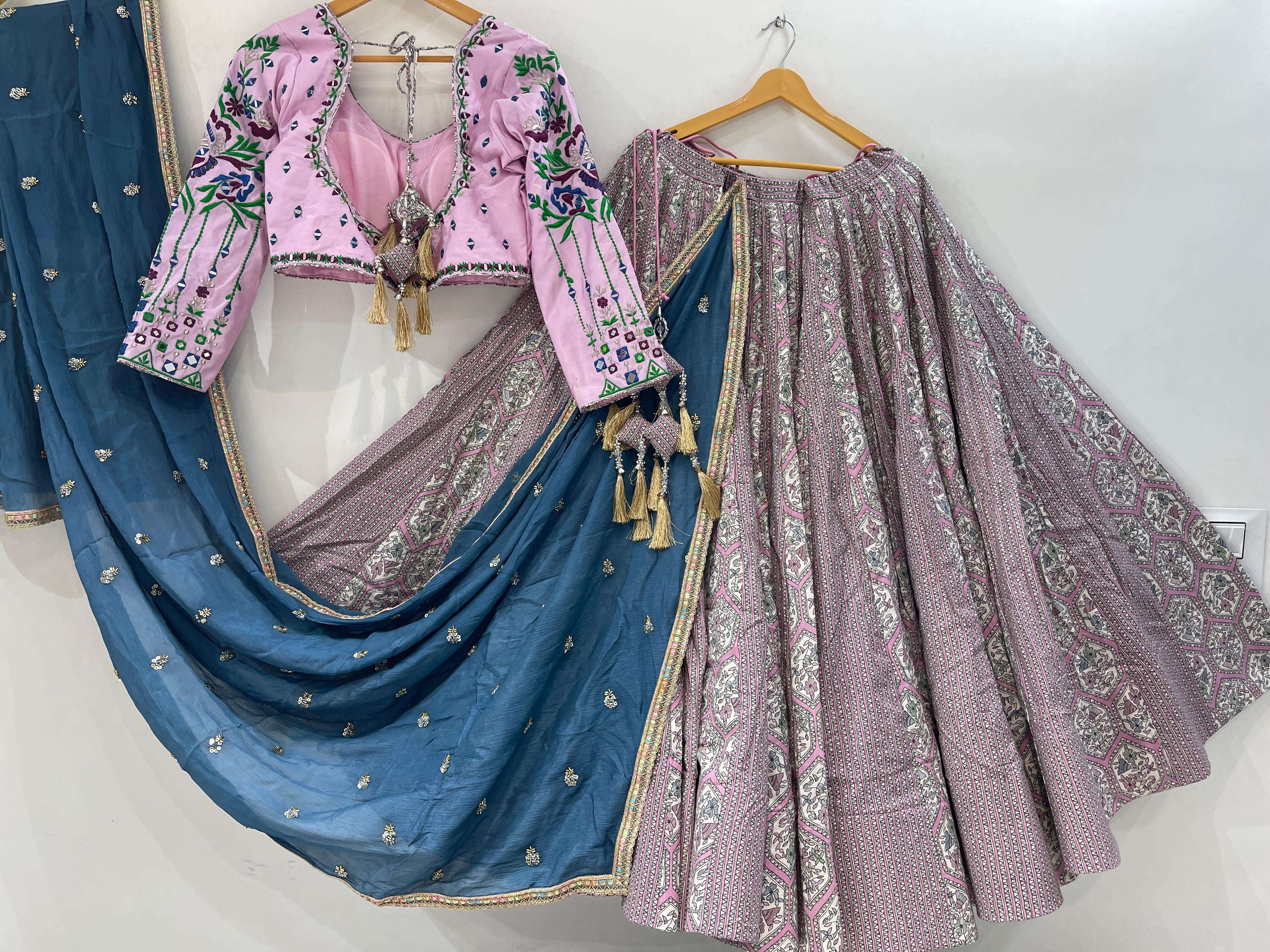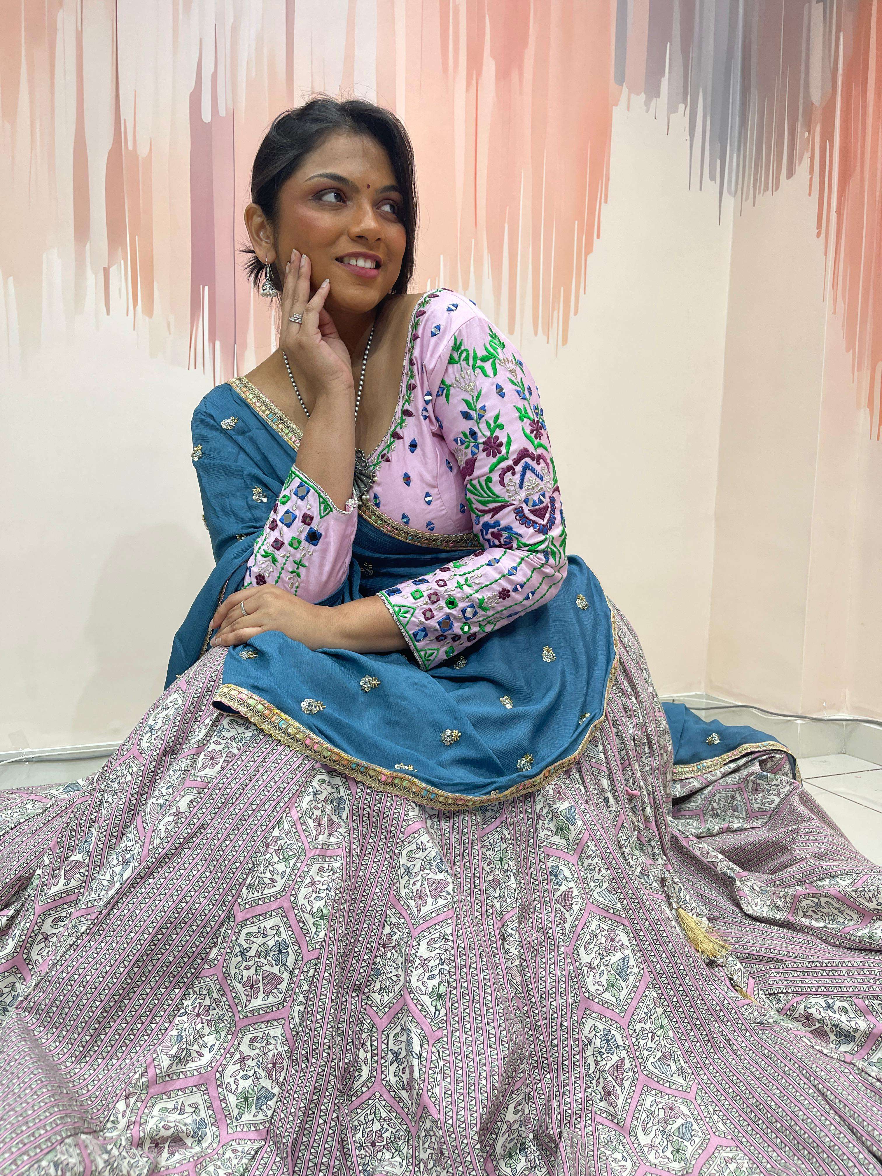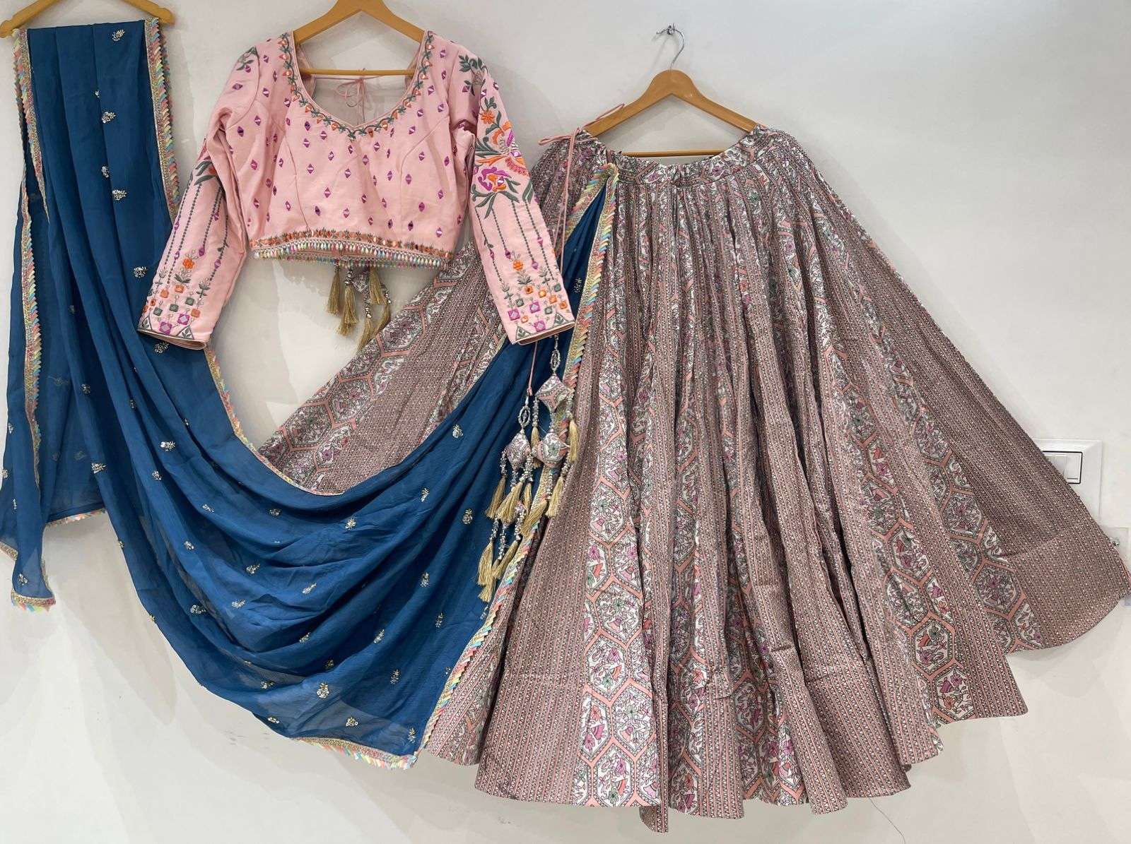 *Indo Western Concept Full long sleeve embroidery Cotton Printed Full ghera approx 10/12 Mtrs in trend Cotton Silk Blouse fusion style Chaniya Choli*