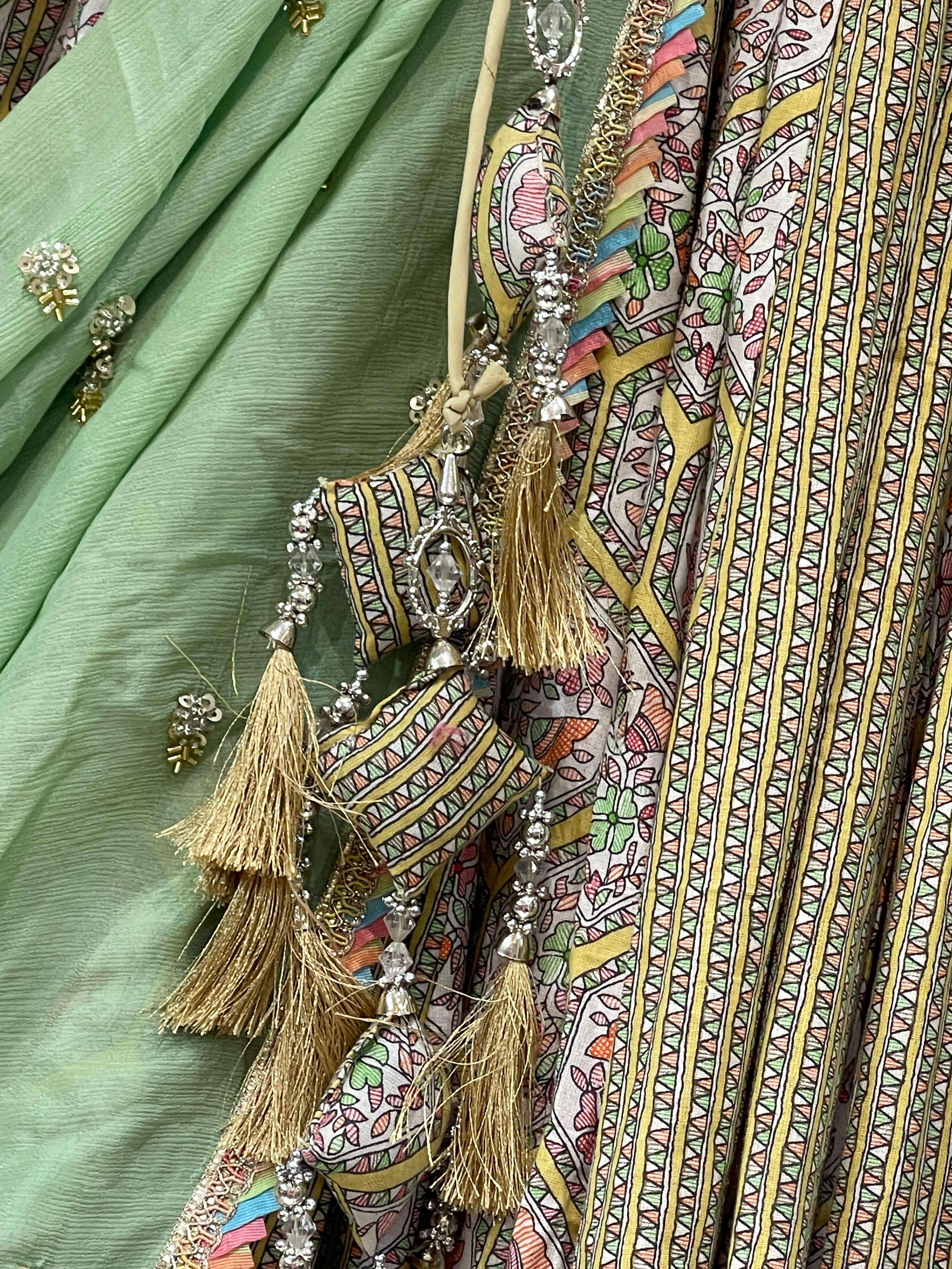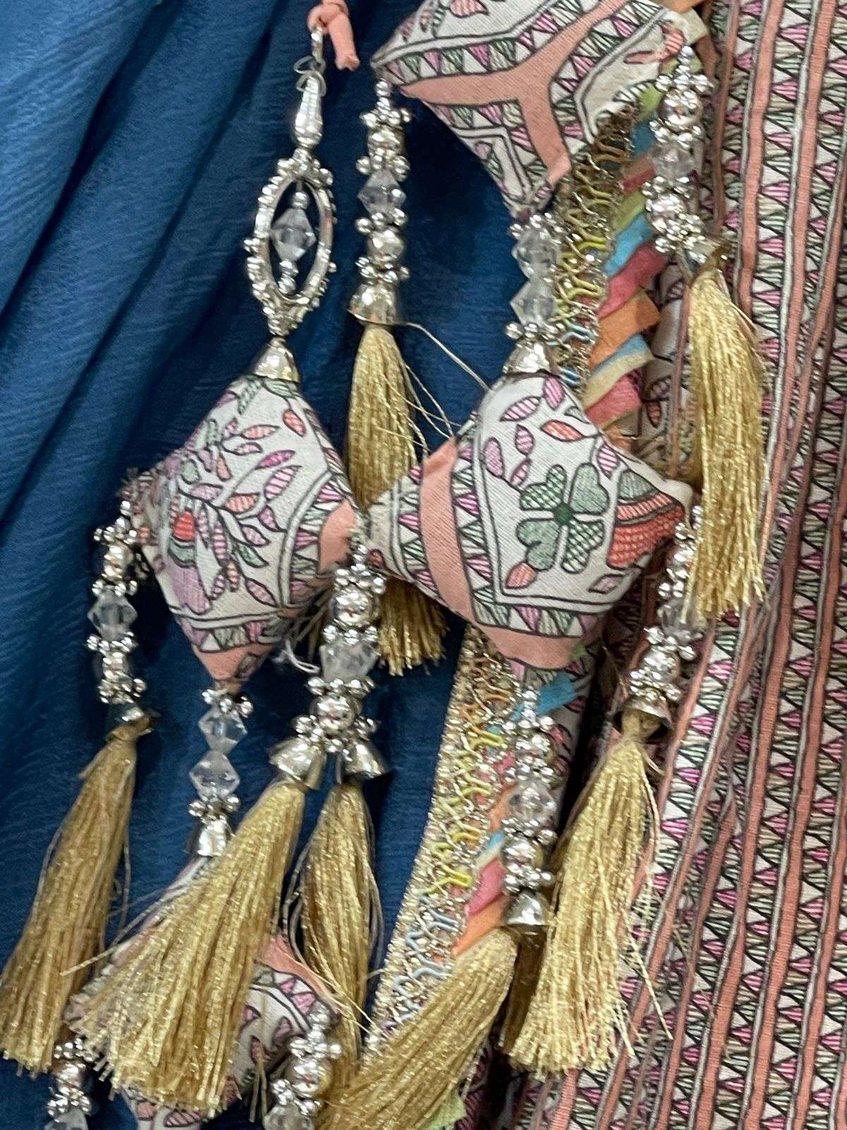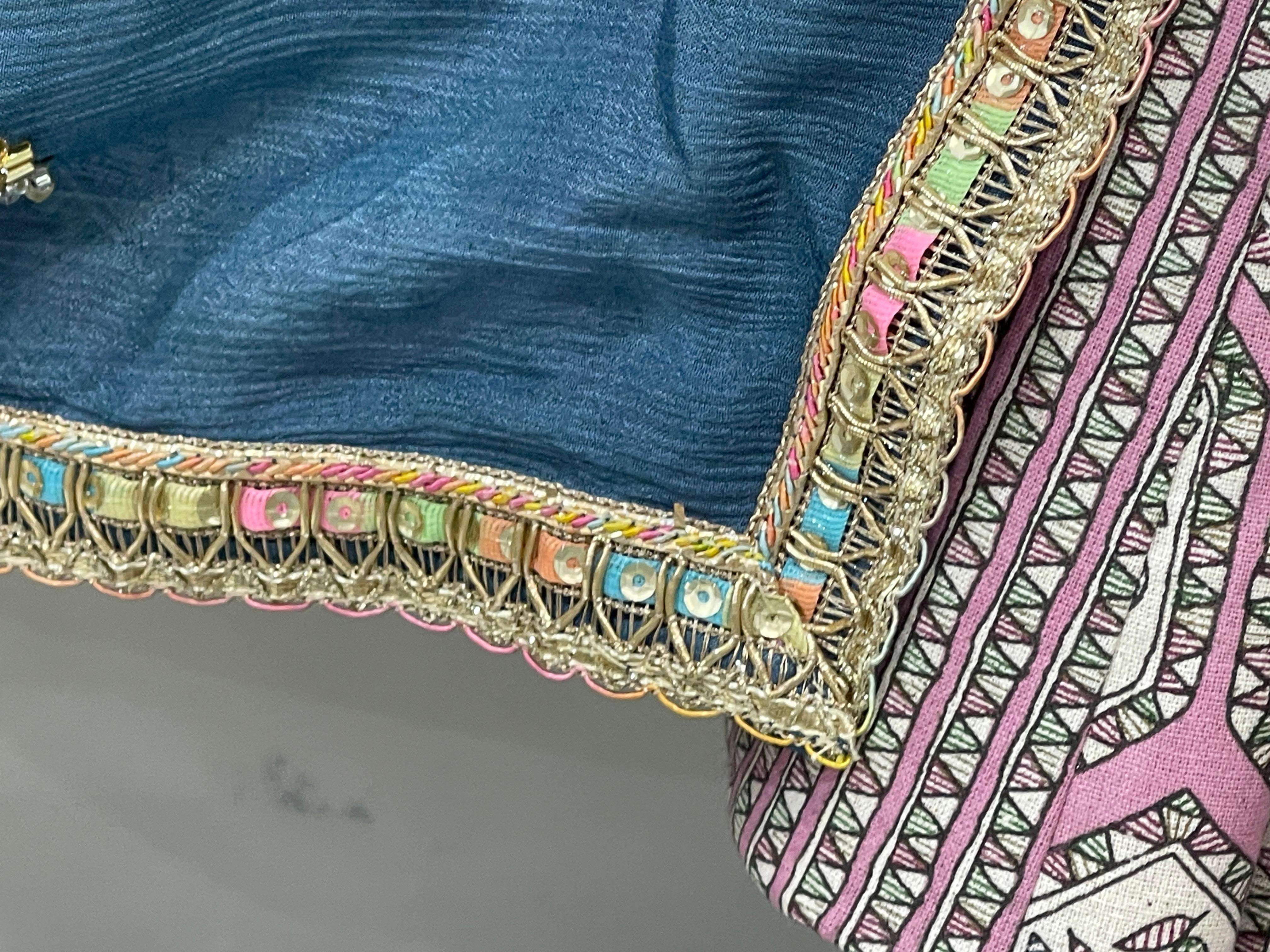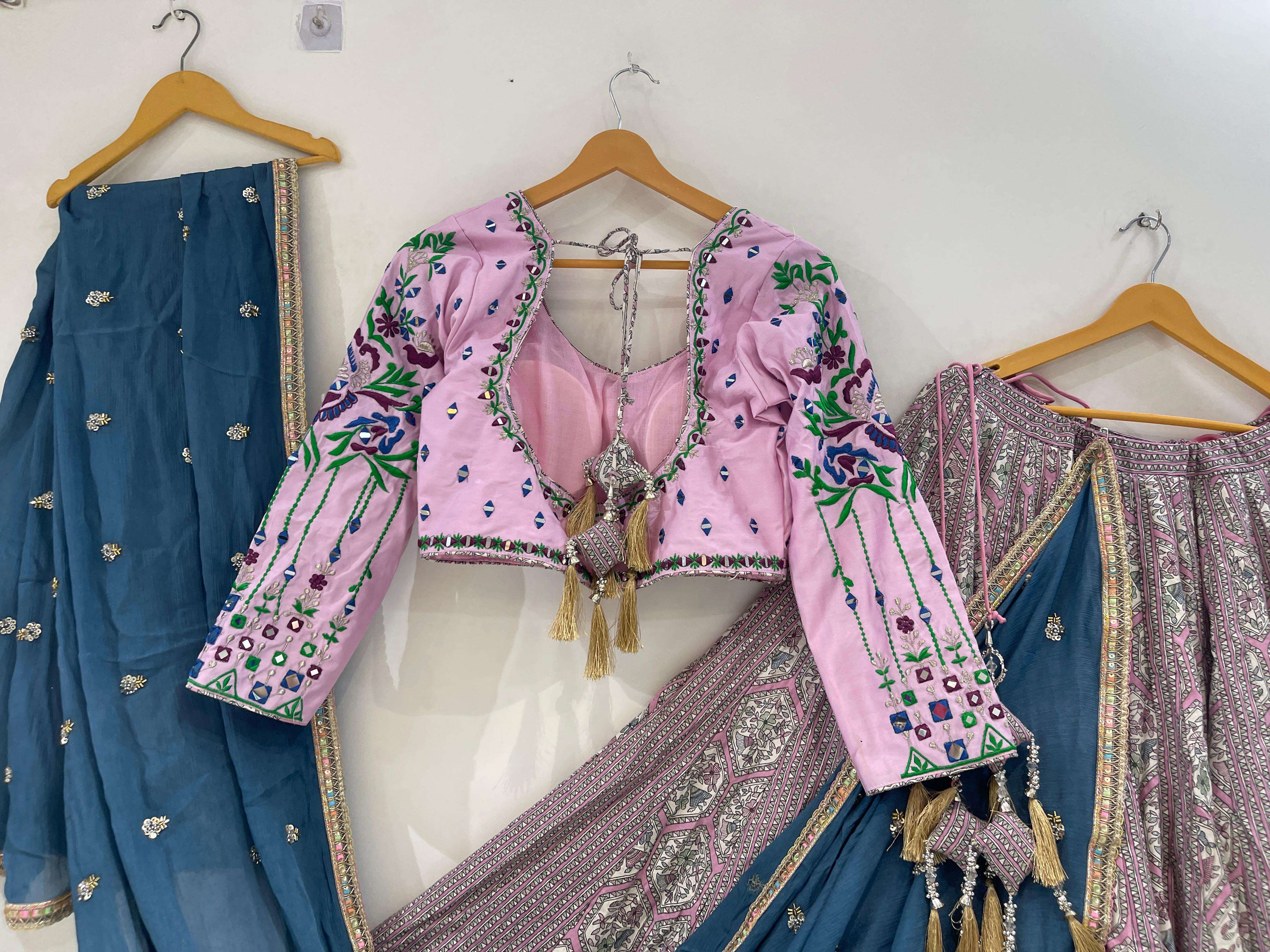 *Skirt/bottom*: *Soft cotton Printed Pestal Colour full big 10/12 mtrs flair light pestal Print kali pattern Aztec print which gives perfect look to lehenga* *Length 40/41”* *Upto 44/46”waist*