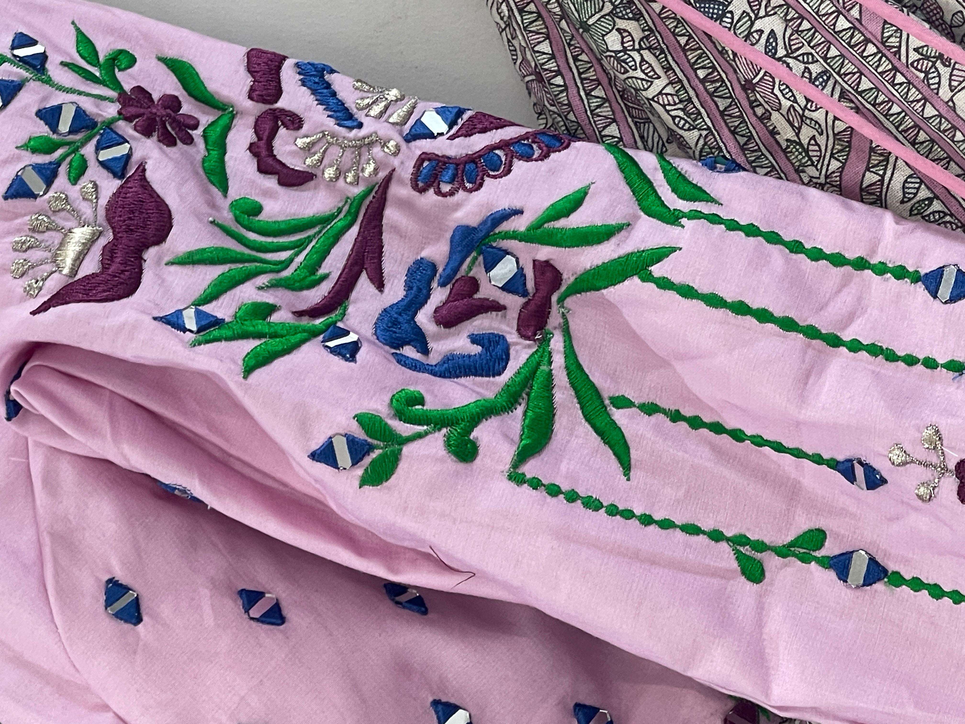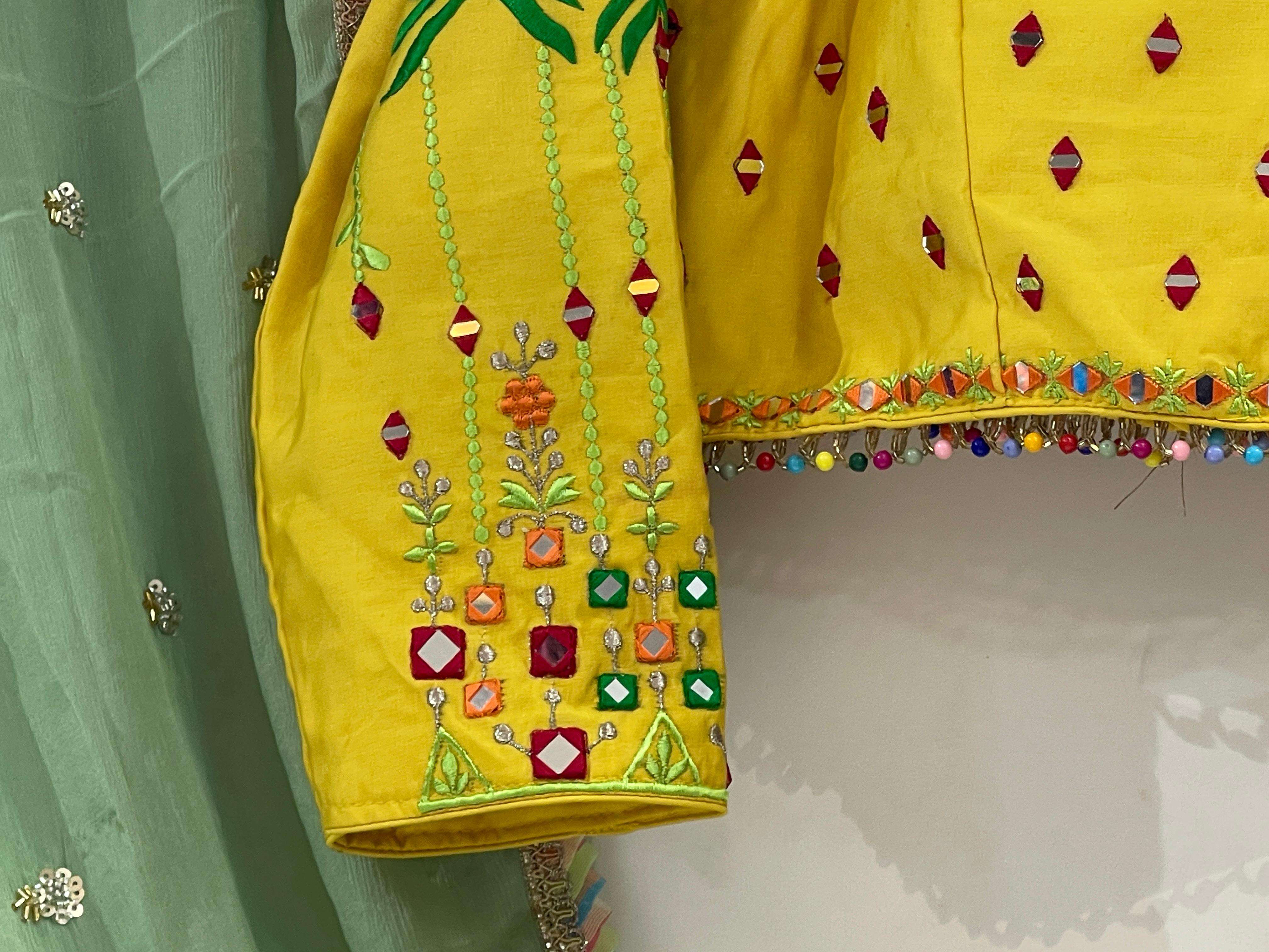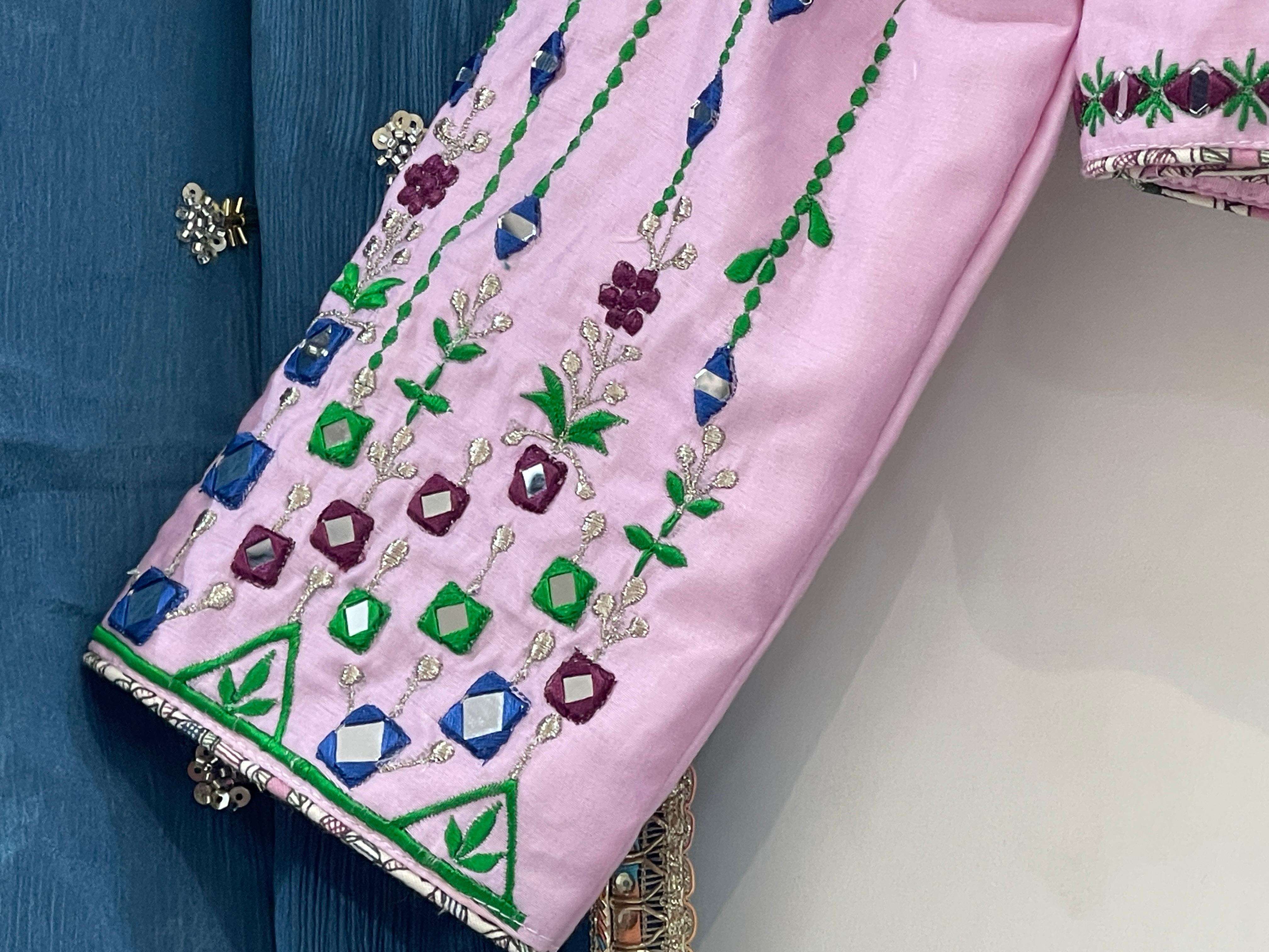 *Blouse*: *Designer Indo western fusion style Full Long sleeves Real mirror work heavy thread embroidery designer 🪡 work blouse 40” plus margin 4” for Size (margin up to 44”)*