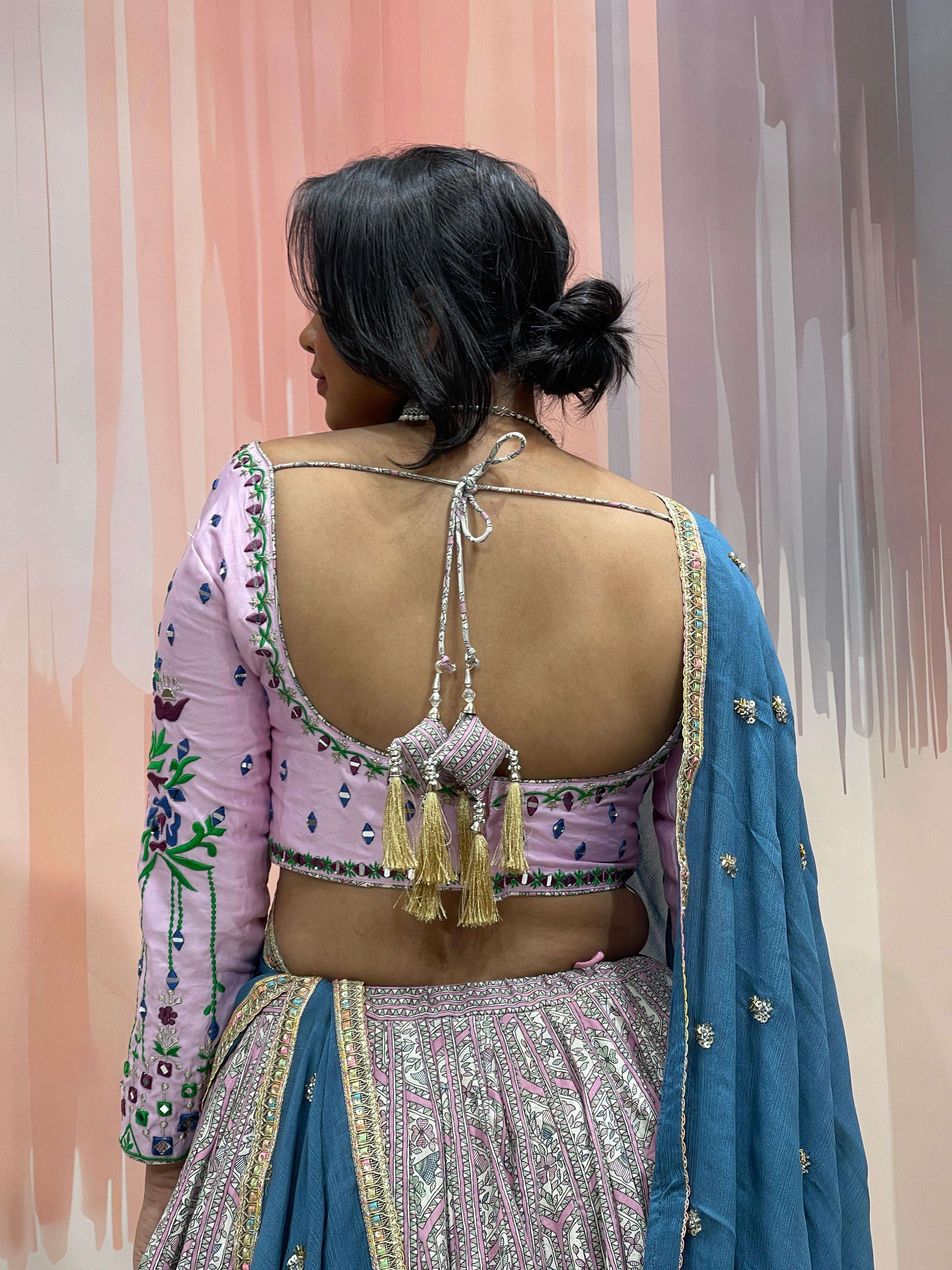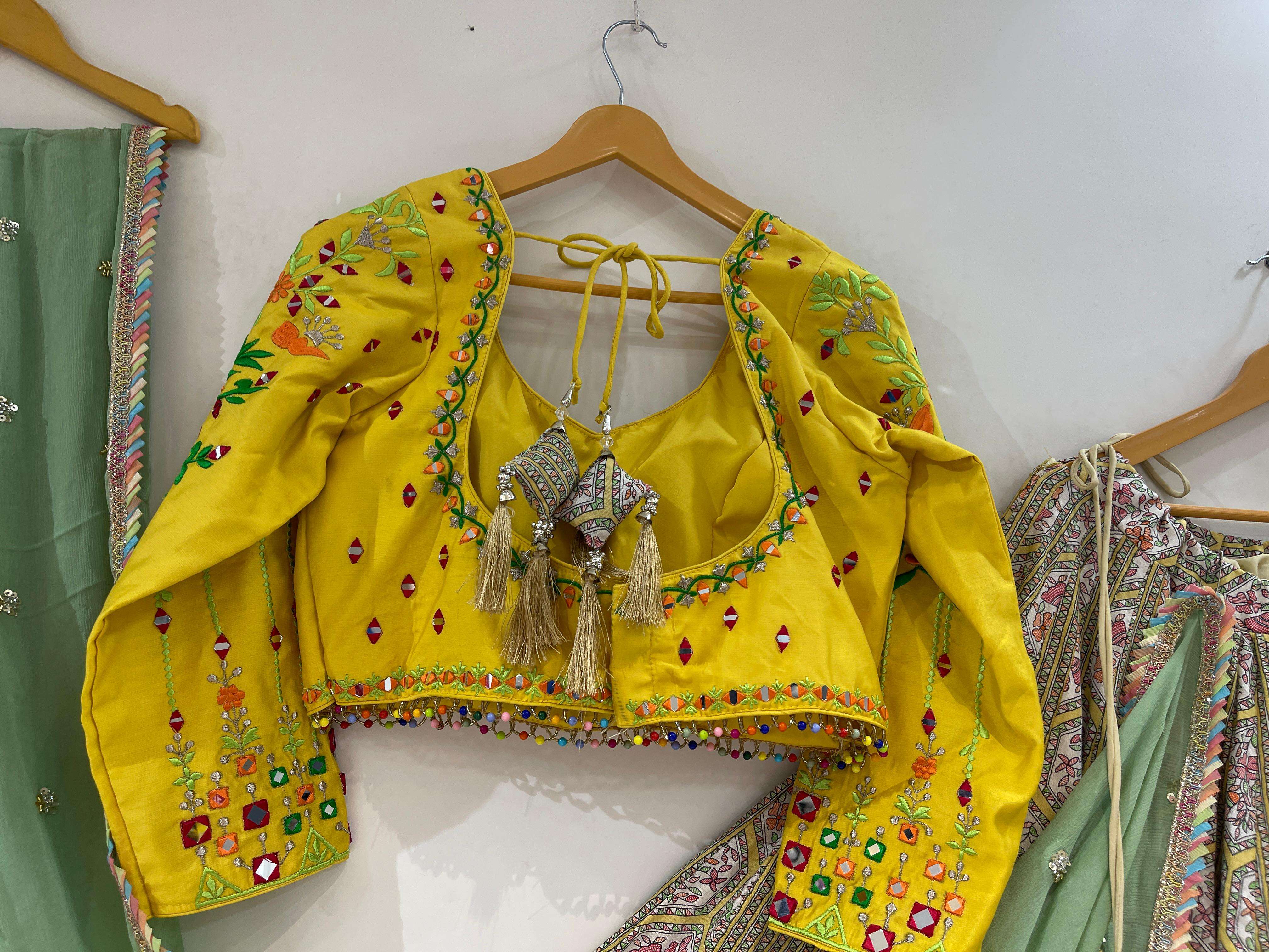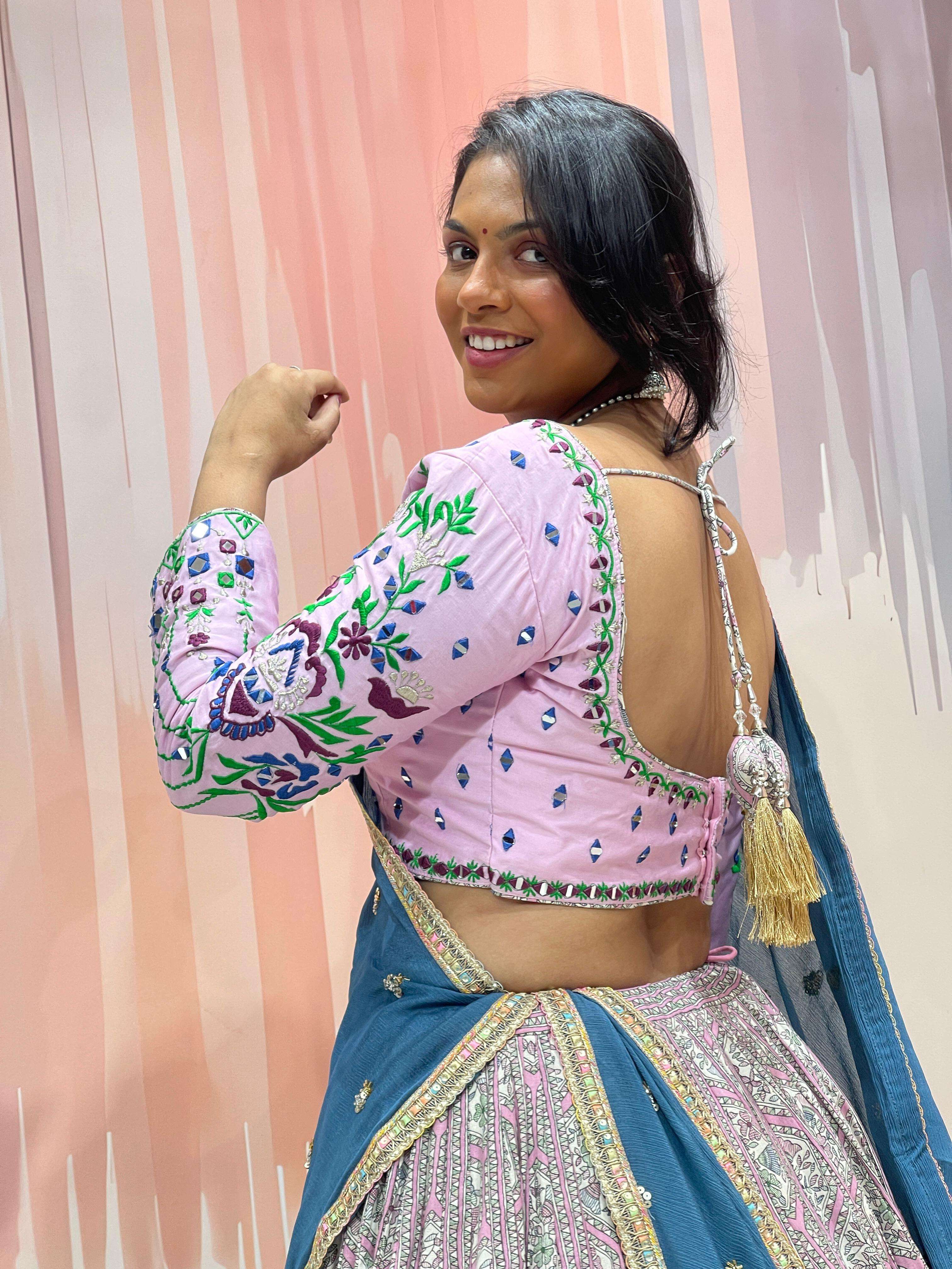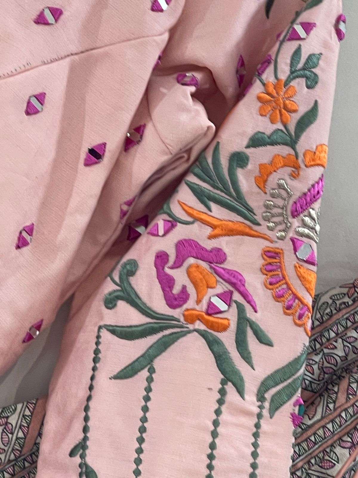 *Blouse*: *Designer Indo western fusion style Full Long sleeves Real mirror work heavy thread embroidery designer 🪡 work blouse 40” plus margin 4” for Size (margin up to 44”)*