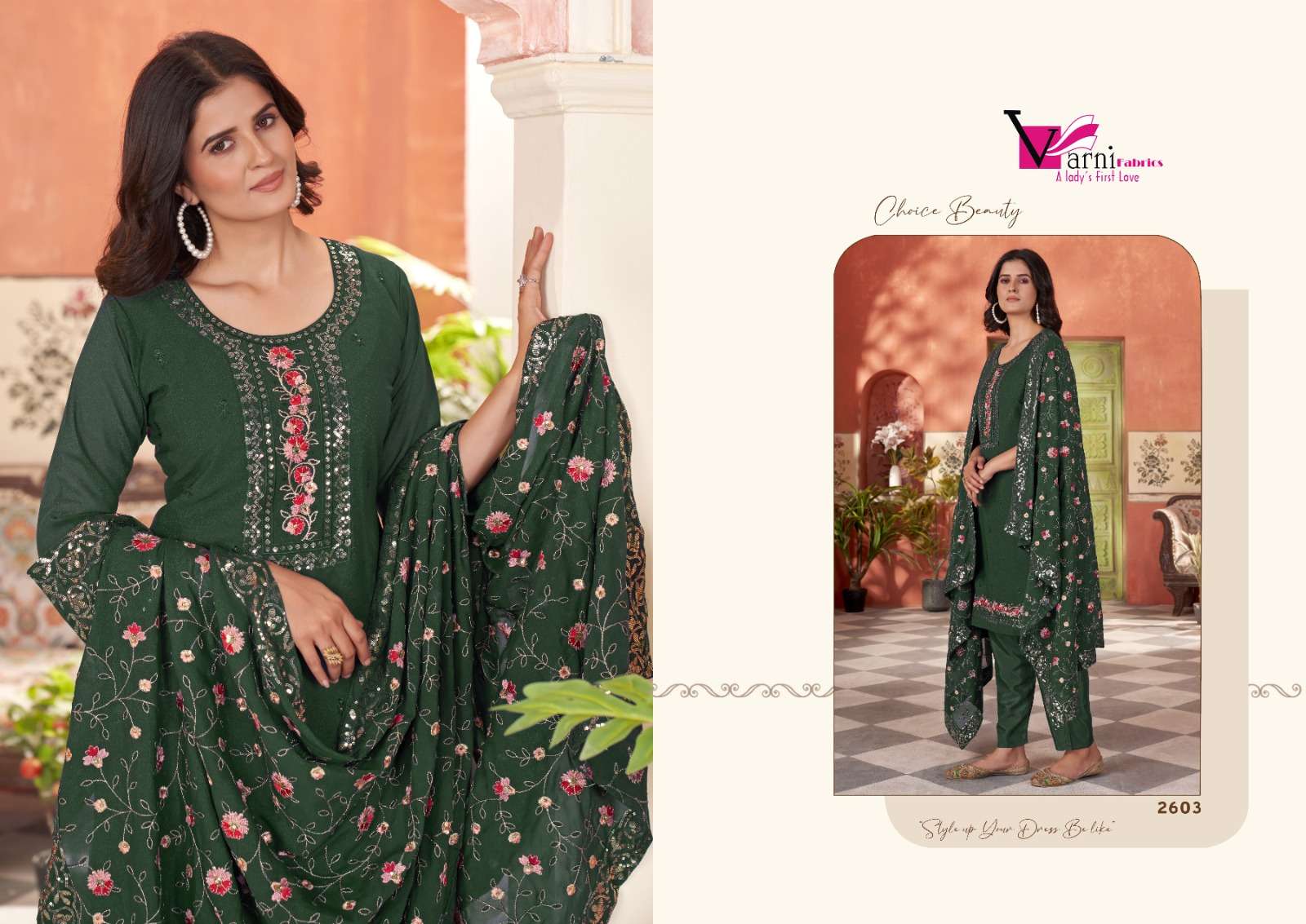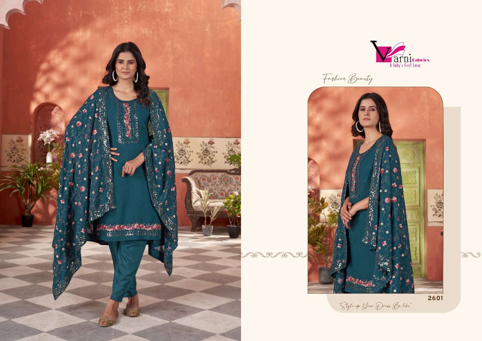 *Varni Fabrics Presents: Tejaswini SR Collection* *Brand and Catalog Information* - *Brand:* Varni Fabrics - *Catalog:* Tejaswini SR 2601-2604
