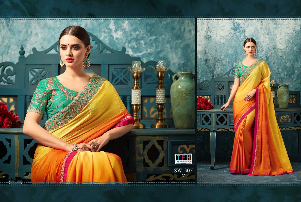 Buy Online Tfh Sandalwood 3 301 Series Designer Saree Collection Dealer 0 Pcs of Full Catalogue at Wholesale Price. Looking for Tfh Sandalwood 3 301 Series Designer Saree Collection Dealer Full Catalouge at Best Price? Buy Now Tfh Sandalwood 3 301 Series Designer Saree Collection Dealer at Wholesale Rate of Rs 0 with Total 0 Pcs from authroized dealer and supplier of TFH Brand. Cost of Each piece is just only Rs 1466 which is very low and affordable price to resale the product in your retail store ,This is Surat based Wholesale Supplier & Dealer of TFH Brand. Click on Brand name to Know more about TFH Brand's products.Call or Whatsapp on 9898838984 for booking or enquiry
