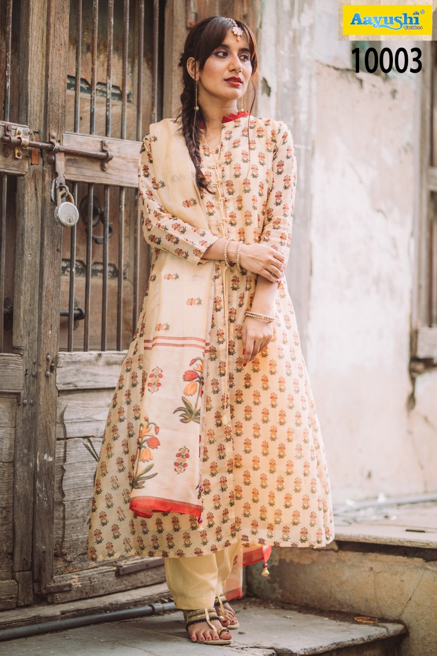 The Chanderi Saaga By Aayushi Chanderi Cotton Shurg Style Suit Wholesale Supplier And Dealer Nitya Nx Gujarat