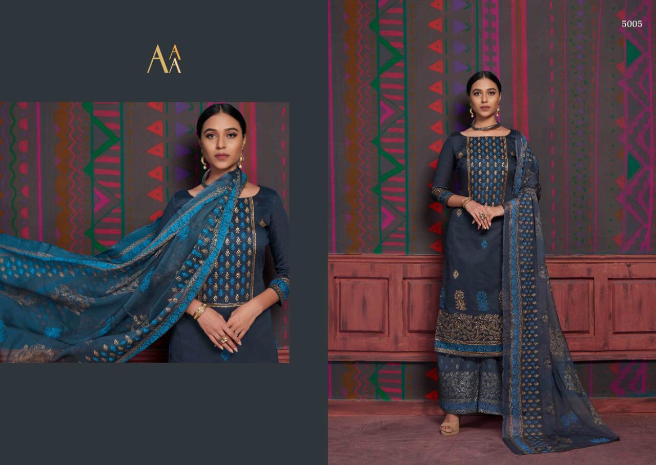 Buy Online The Gold Collection By Aaa Design Studio 5001 Series Fancy Cotton Satin Salwar Kameez Catlog Wholesaler Surat 8 Pcs of Full Catalogue at Wholesale Price. Looking for The Gold Collection By Aaa Design Studio 5001 Series Fancy Cotton Satin Salwar Kameez Catlog Wholesaler Surat Full Catalouge at Best Price? Buy Now The Gold Collection By Aaa Design Studio 5001 Series Fancy Cotton Satin Salwar Kameez Catlog Wholesaler Surat at Wholesale Rate of Rs 5560 with Total 8 Pcs from authroized dealer and supplier of Brand. Cost of Each piece is just only Rs 695 which is very low and affordable price to resale the product in your retail store ,This is Surat based Wholesale Supplier & Dealer of Brand. Click on Brand name to Know more about Brand's products.Call or Whatsapp on 9898838984 for booking or enquiry