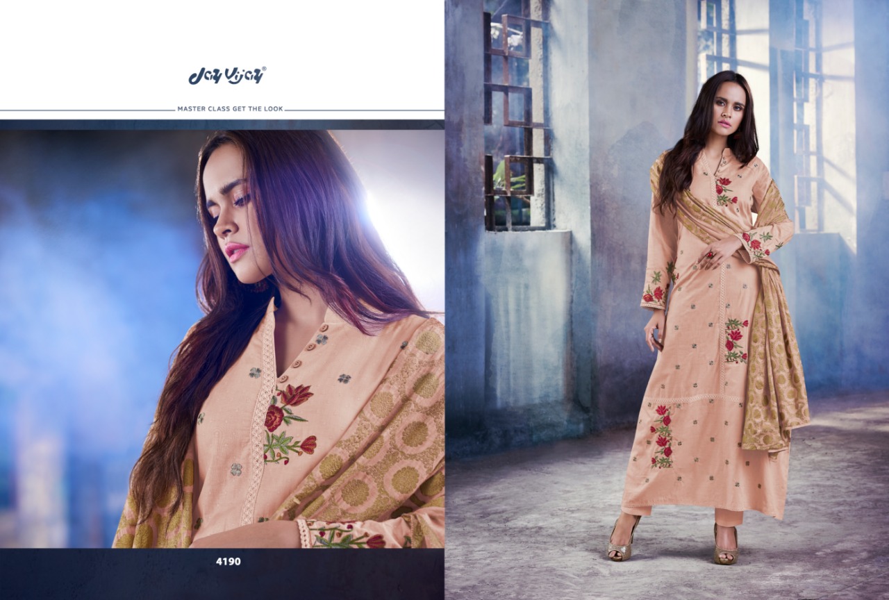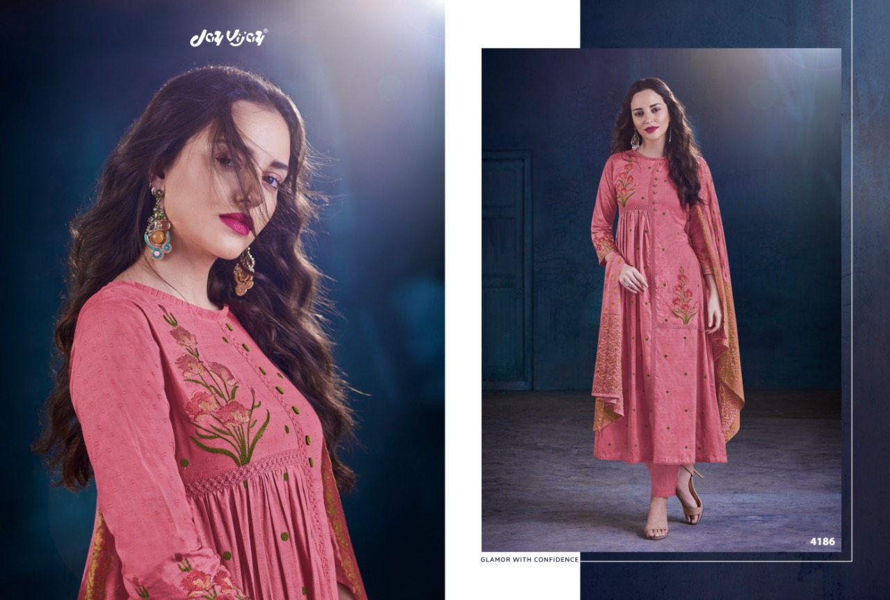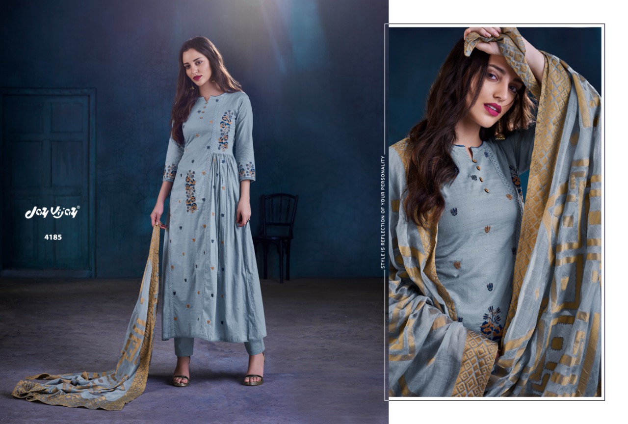 Buy Online The Mandarin Muse By Jai Vijay Series 4181 To 4191 Cotton Embroidered Designer Suits Wholesale Supplier And Dealer Gujarat 11 Pcs of Full Catalogue at Wholesale Price. Looking for The Mandarin Muse By Jai Vijay Series 4181 To 4191 Cotton Embroidered Designer Suits Wholesale Supplier And Dealer Gujarat Full Catalouge at Best Price? Buy Now The Mandarin Muse By Jai Vijay Series 4181 To 4191 Cotton Embroidered Designer Suits Wholesale Supplier And Dealer Gujarat at Wholesale Rate of Rs 14520 with Total 11 Pcs from authroized dealer and supplier of JAY VIJAY Brand. Cost of Each piece is just only Rs 1320 which is very low and affordable price to resale the product in your retail store ,This is Surat based Wholesale Supplier & Dealer of JAY VIJAY Brand. Click on Brand name to Know more about JAY VIJAY Brand's products.Call or Whatsapp on 9898838984 for booking or enquiry