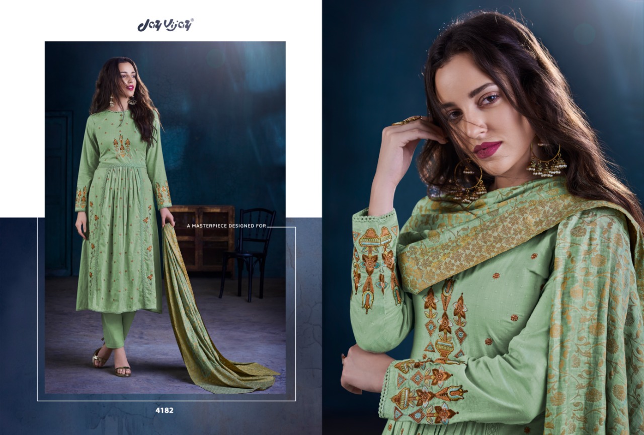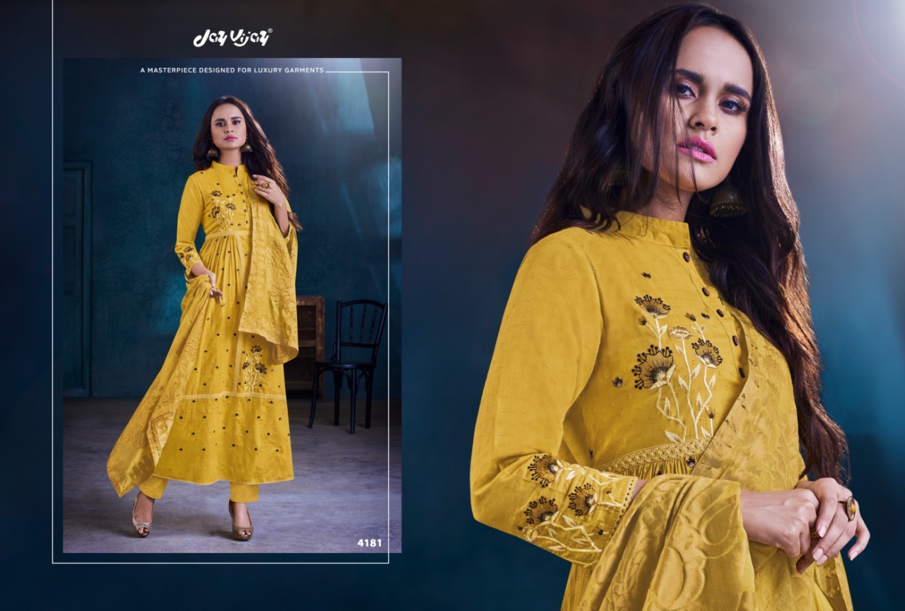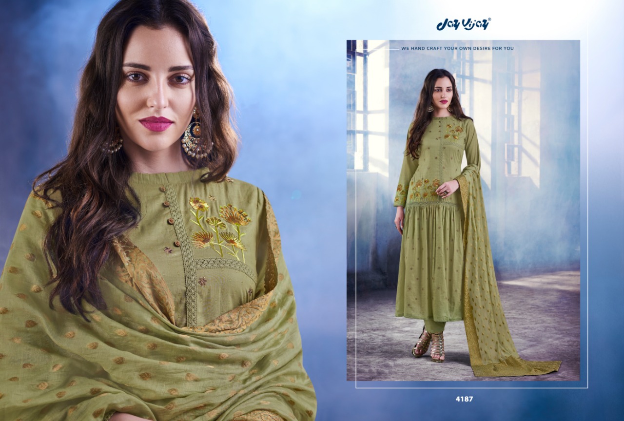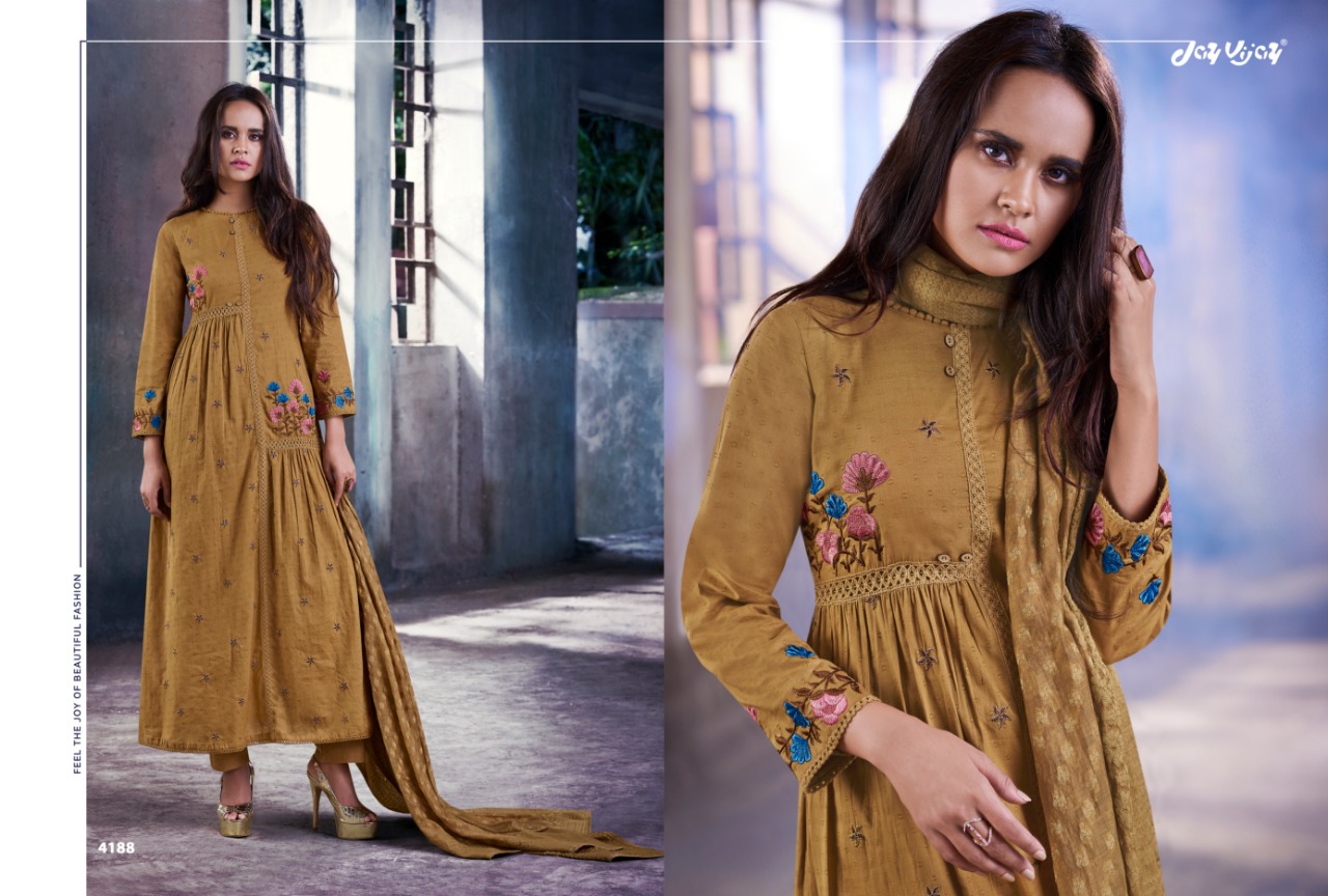 Buy Online The Mandarin Muse By Jay Vijay Series 4181 To 4191 Pure Cotton Embroidered Party Wear Suits Wholesale Supplier Nd Dealer Gujarat 11 Pcs of Full Catalogue at Wholesale Price. Looking for The Mandarin Muse By Jay Vijay Series 4181 To 4191 Pure Cotton Embroidered Party Wear Suits Wholesale Supplier Nd Dealer Gujarat Full Catalouge at Best Price? Buy Now The Mandarin Muse By Jay Vijay Series 4181 To 4191 Pure Cotton Embroidered Party Wear Suits Wholesale Supplier Nd Dealer Gujarat at Wholesale Rate of Rs 14520 with Total 11 Pcs from authroized dealer and supplier of JAY VIJAY Brand. Cost of Each piece is just only Rs 1320 which is very low and affordable price to resale the product in your retail store ,This is Surat based Wholesale Supplier & Dealer of JAY VIJAY Brand. Click on Brand name to Know more about JAY VIJAY Brand's products.Call or Whatsapp on 9898838984 for booking or enquiry