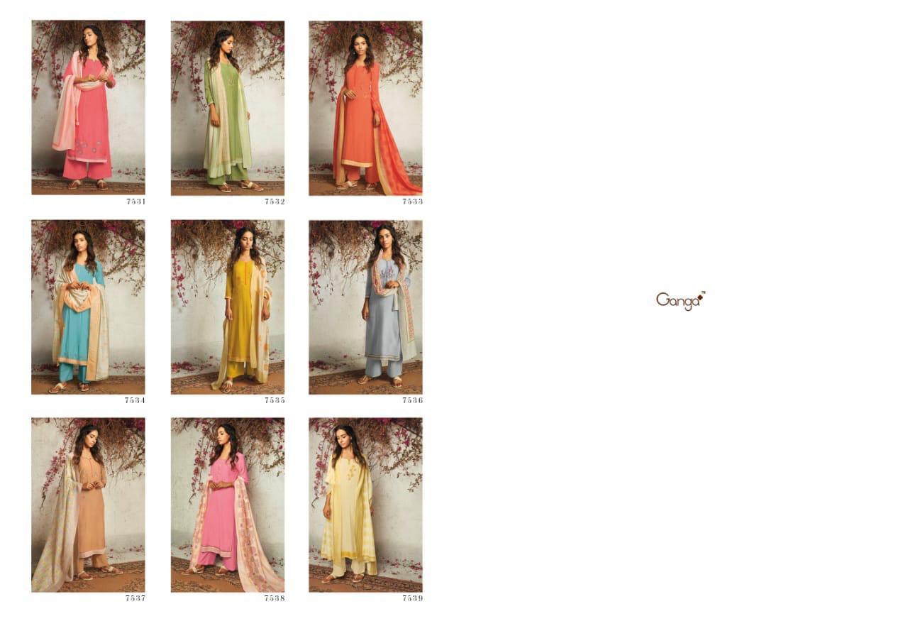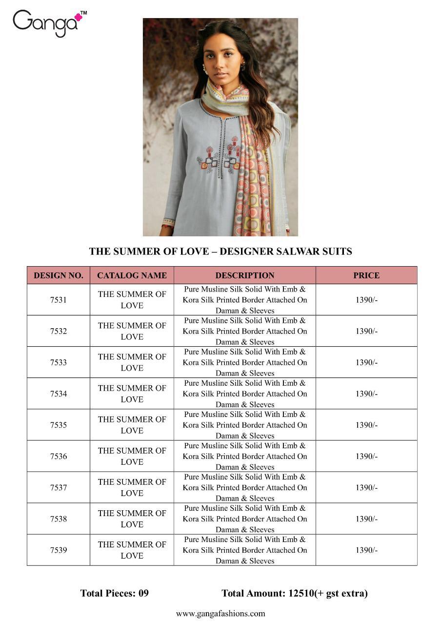 The Summer Of Love By Ganga Series 7531 To 7539 Musline Designer Party Wear Suits Wholesale Supplier Gujarat