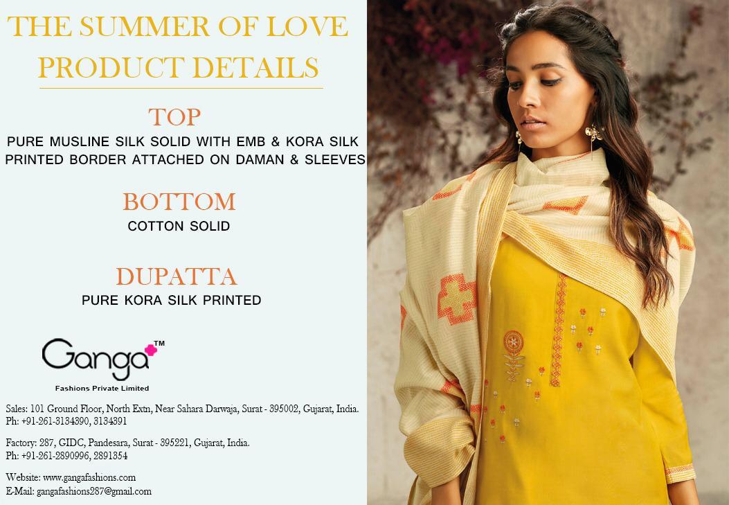 Buy Online The Summer Of Love By Ganga Series 7531 To 7539 Musline Designer Party Wear Suits Wholesale Supplier Gujarat 9 Pcs of Full Catalogue at Wholesale Price. Looking for The Summer Of Love By Ganga Series 7531 To 7539 Musline Designer Party Wear Suits Wholesale Supplier Gujarat Full Catalouge at Best Price? Buy Now The Summer Of Love By Ganga Series 7531 To 7539 Musline Designer Party Wear Suits Wholesale Supplier Gujarat at Wholesale Rate of Rs 12510 with Total 9 Pcs from authroized dealer and supplier of GANGA Brand. Cost of Each piece is just only Rs 1390 which is very low and affordable price to resale the product in your retail store ,This is Surat based Wholesale Supplier & Dealer of GANGA Brand. Click on Brand name to Know more about GANGA Brand's products.Call or Whatsapp on 9898838984 for booking or enquiry