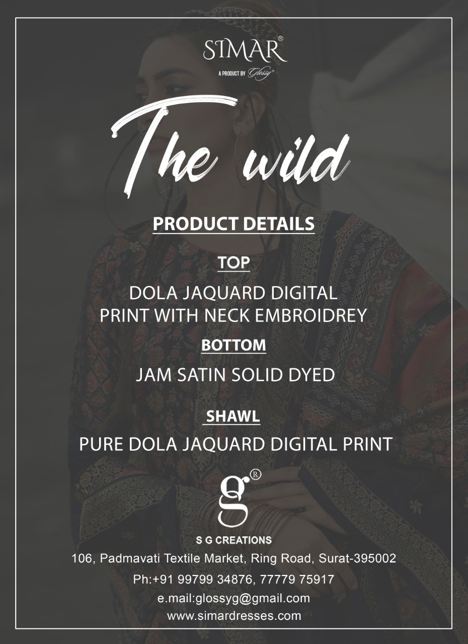 Buy Online The Wild By Simar A Product By Glossy Manufacturer Traders Surat Gujrat 8 Pcs of Full Catalogue at Wholesale Price. Looking for The Wild By Simar A Product By Glossy Manufacturer Traders Surat Gujrat Full Catalouge at Best Price? Buy Now The Wild By Simar A Product By Glossy Manufacturer Traders Surat Gujrat at Wholesale Rate of Rs 17560 with Total 8 Pcs from authroized dealer and supplier of GLOSSY Brand. Cost of Each piece is just only Rs 2195 which is very low and affordable price to resale the product in your retail store ,This is Surat based Wholesale Supplier & Dealer of GLOSSY Brand. Click on Brand name to Know more about GLOSSY Brand's products.Call or Whatsapp on 9898838984 for booking or enquiry