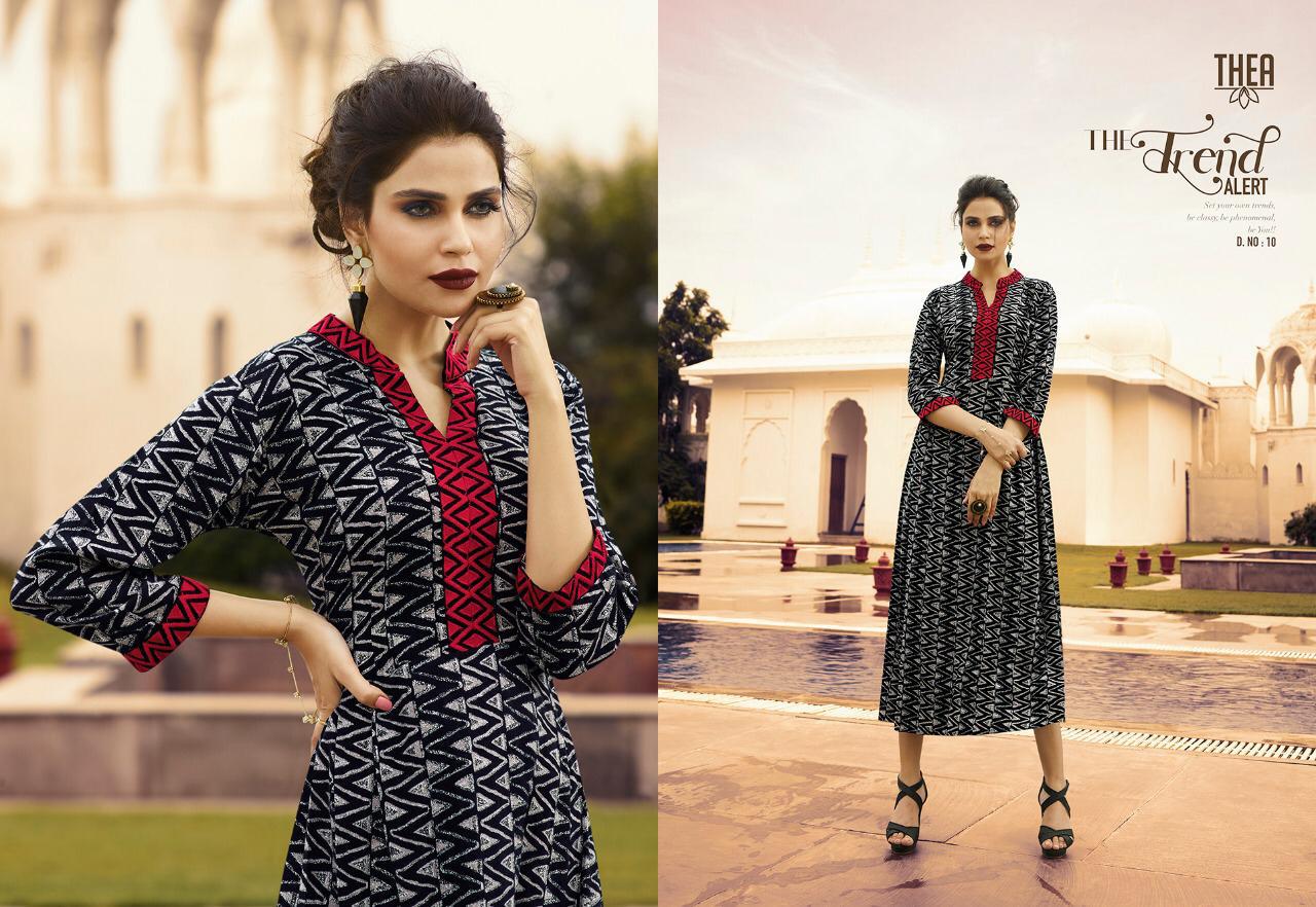 Thea By Vishwam 1 Series Fancy Reyon Printed Kurti Collection Wholesaler Surat