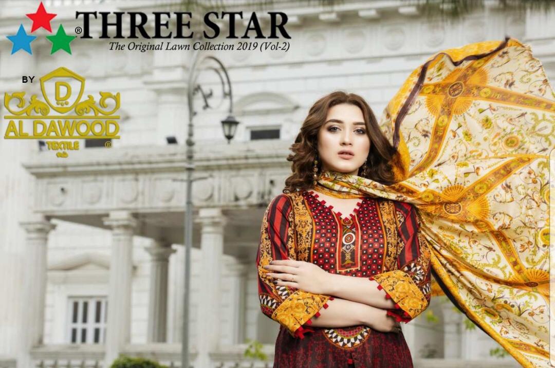 Three Star Lawn Vol 2 By Aldawood Textile Lawn Suit Collection Supplier Surat