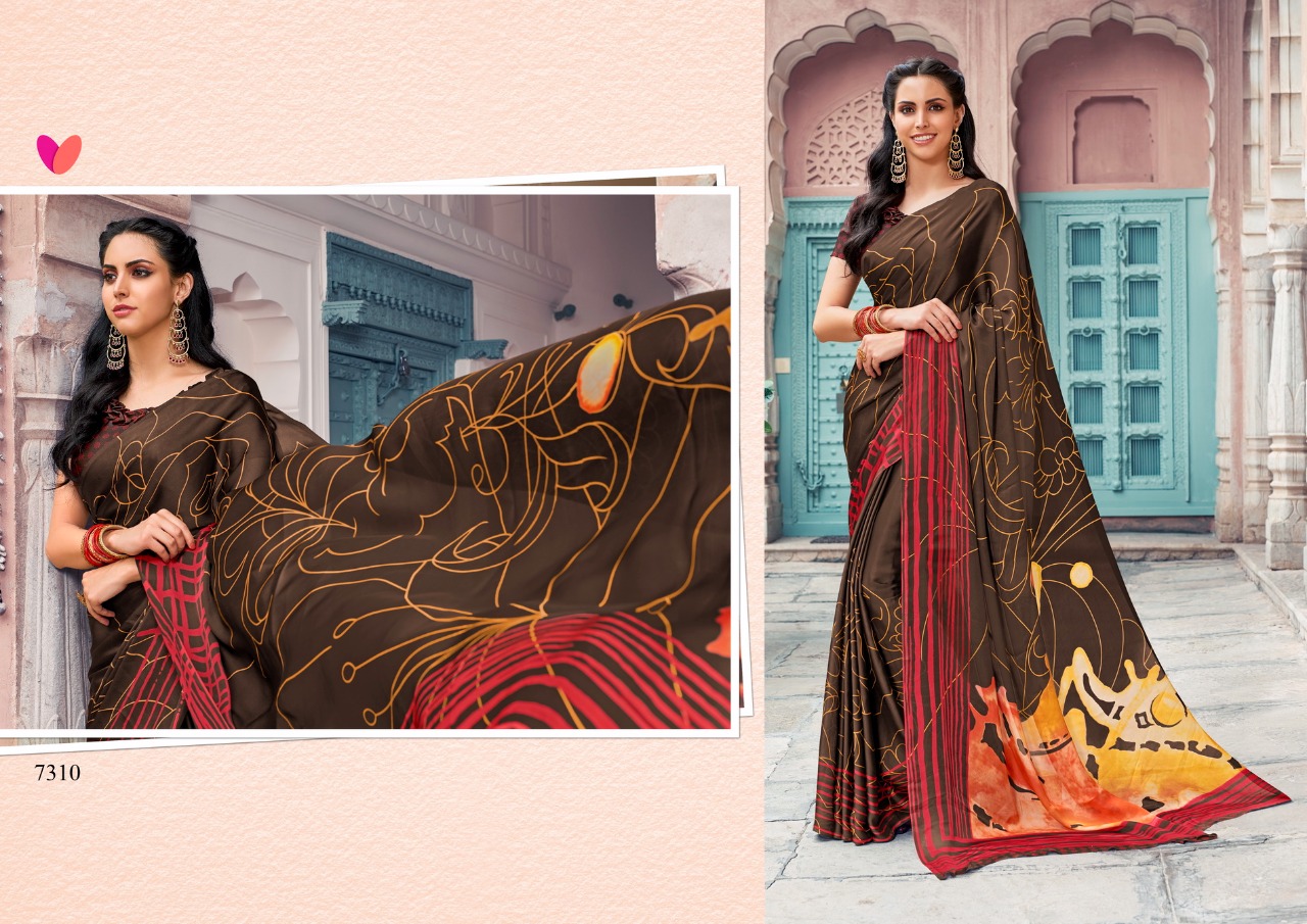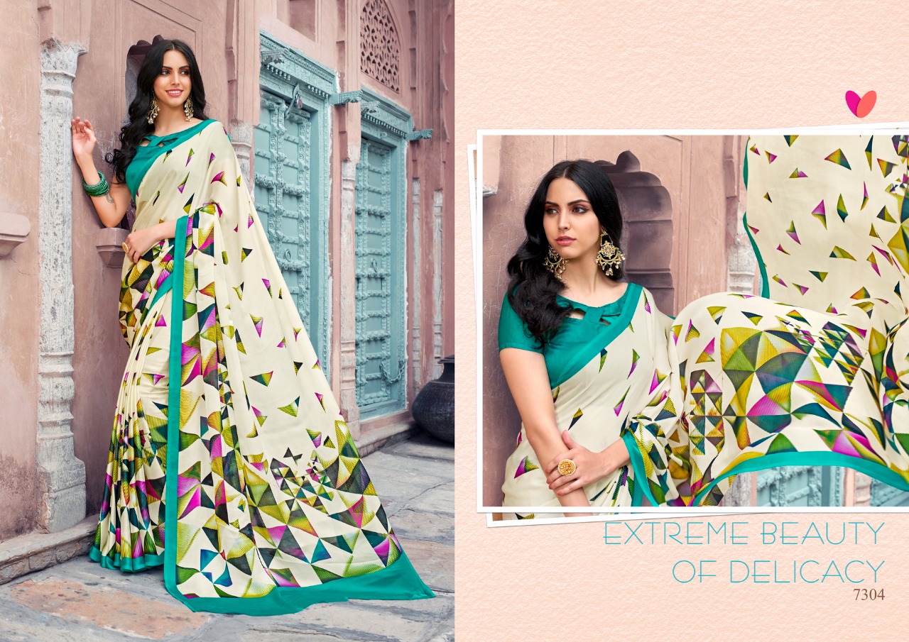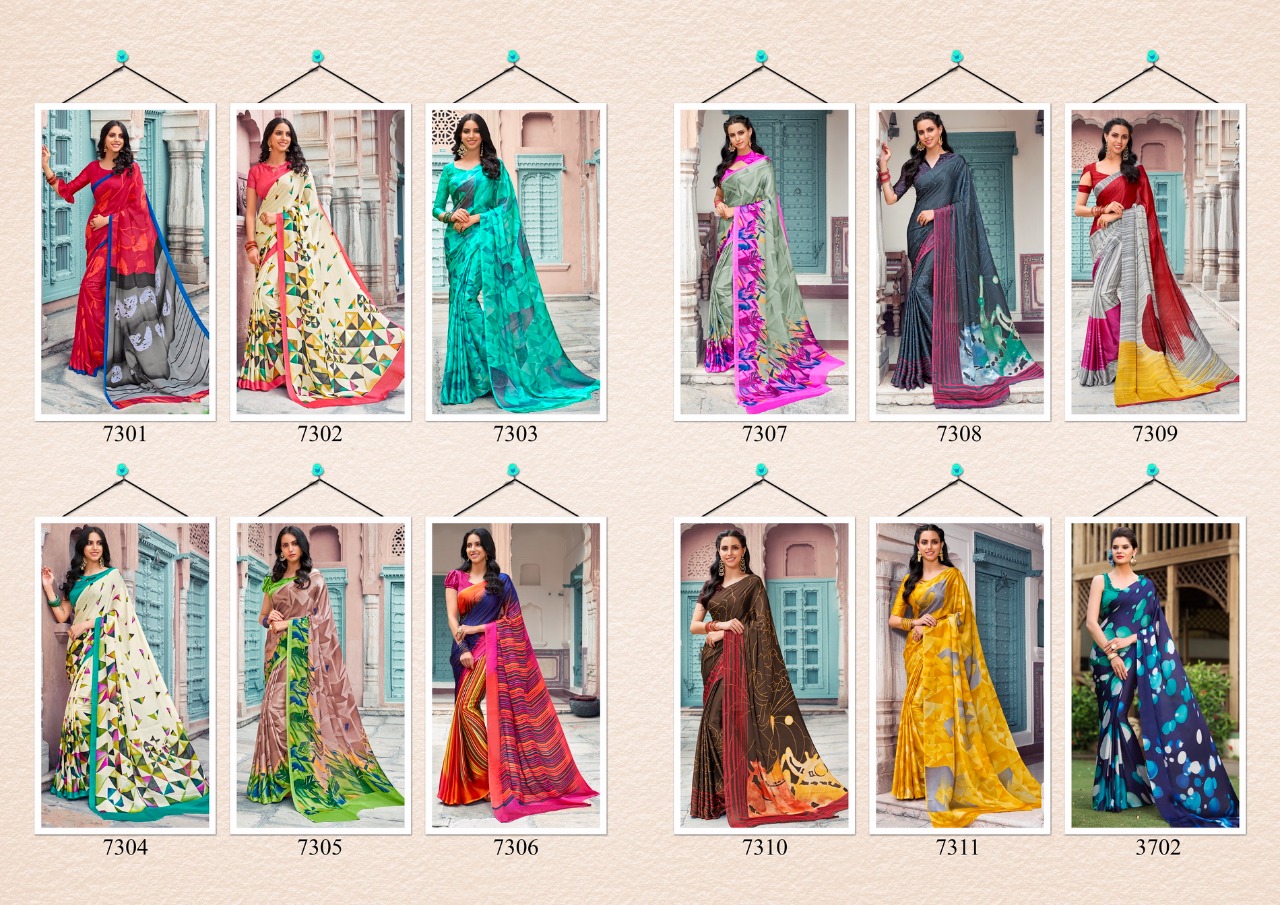 Buy Online Timeless Series By Mintorsi 7301 Series Satin Georgette Printed Saree Catlog Wholesale Dealer And Supplier Surat 12 Pcs of Full Catalogue at Wholesale Price. Looking for Timeless Series By Mintorsi 7301 Series Satin Georgette Printed Saree Catlog Wholesale Dealer And Supplier Surat Full Catalouge at Best Price? Buy Now Timeless Series By Mintorsi 7301 Series Satin Georgette Printed Saree Catlog Wholesale Dealer And Supplier Surat at Wholesale Rate of Rs 7140 with Total 12 Pcs from authroized dealer and supplier of VARSIDDHI SAREE Brand. Cost of Each piece is just only Rs 595 which is very low and affordable price to resale the product in your retail store ,This is Surat based Wholesale Supplier & Dealer of VARSIDDHI SAREE Brand. Click on Brand name to Know more about VARSIDDHI SAREE Brand's products.Call or Whatsapp on 9898838984 for booking or enquiry