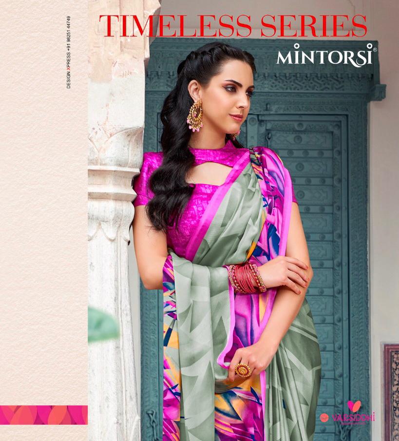 Timeless Series By Mintorsi 7301 Series Satin Georgette Printed Saree Catlog Wholesale Dealer And Supplier Surat