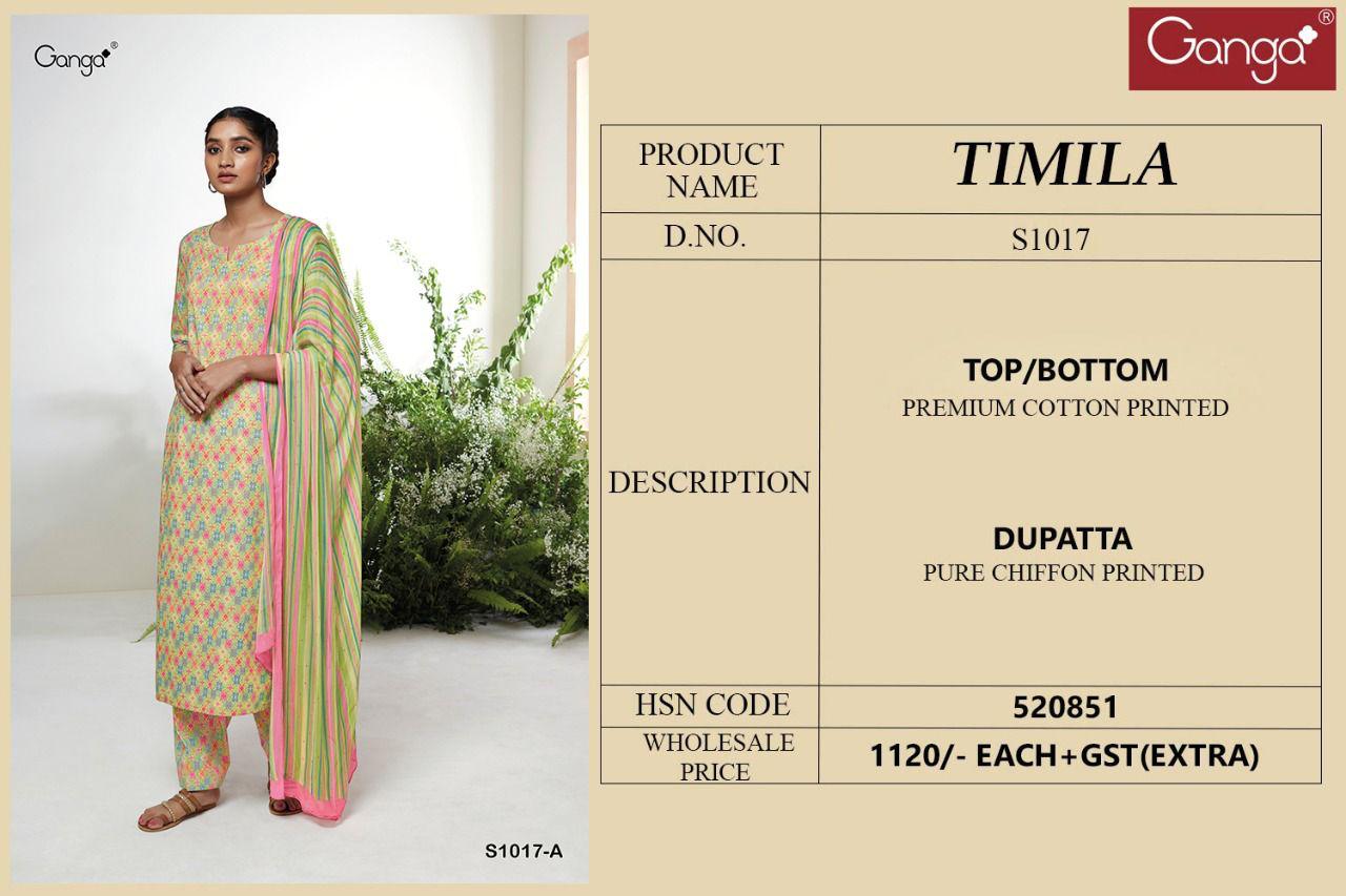 *GANGA* TIMILA 1017 *TOP* PREMIUM COTTON PRINTED *BOTTOM:* PREMIUM COTTON PRINTED *DUPATTA:* PURE CHIFFON PRINTED |