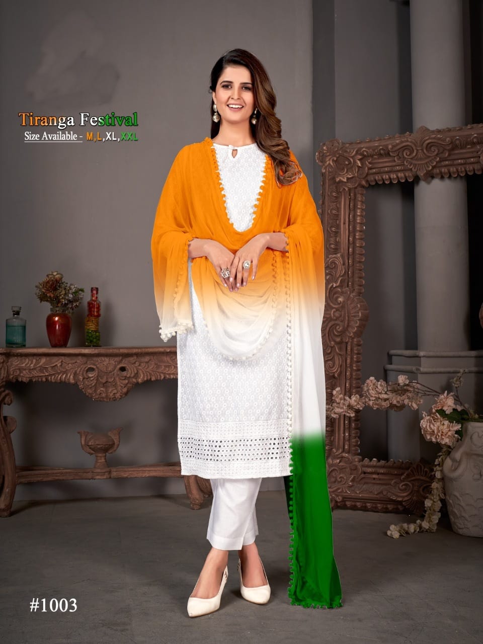 Tiranga Festival Pure Reyon Top Bottom With Dupatta Single Available Wholesaler Surat