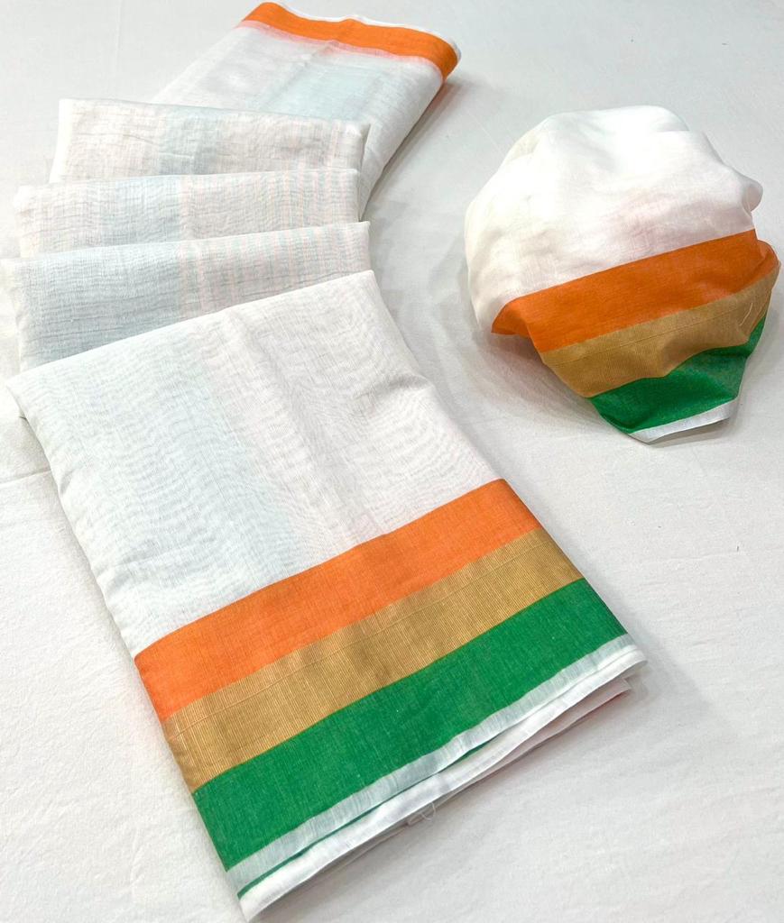 TIRANGA FESTIVAL SAREE ? *NEW LAUNCHING* ? *Catalogue - *Tiranga* *Soft cottonsilk saree with chitppallu and zari border * *Rate - 349+ship* |