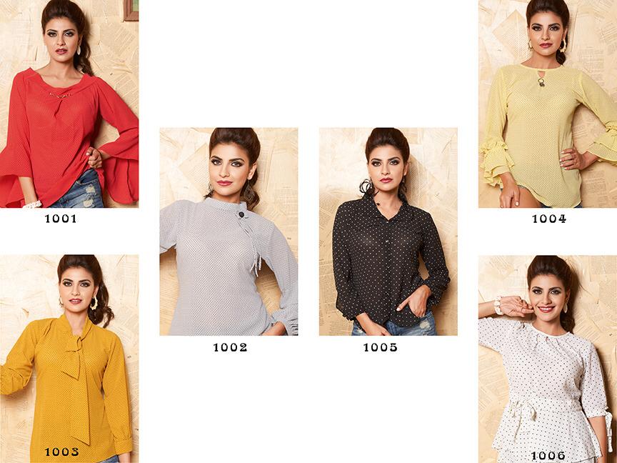 Buy Online Top Dot By Vitara Western Tops Wholesale Supplier Gujarat 6 Pcs of Full Catalogue at Wholesale Price. Looking for Top Dot By Vitara Western Tops Wholesale Supplier Gujarat Full Catalouge at Best Price? Buy Now Top Dot By Vitara Western Tops Wholesale Supplier Gujarat at Wholesale Rate of Rs 2370 with Total 6 Pcs from authroized dealer and supplier of Brand. Cost of Each piece is just only Rs 395 which is very low and affordable price to resale the product in your retail store ,This is Surat based Wholesale Supplier & Dealer of Brand. Click on Brand name to Know more about Brand's products.Call or Whatsapp on 9898838984 for booking or enquiry