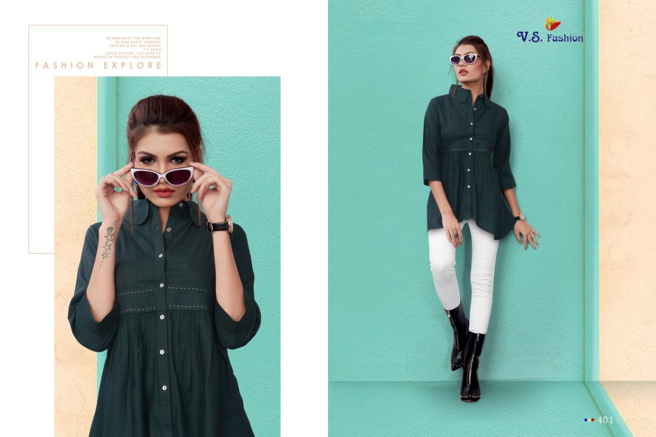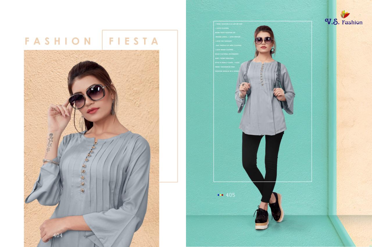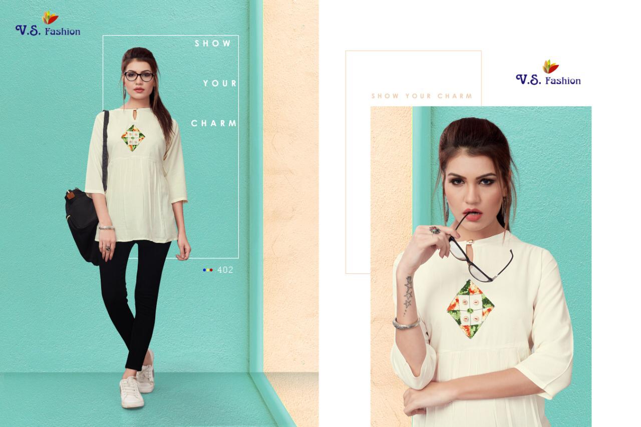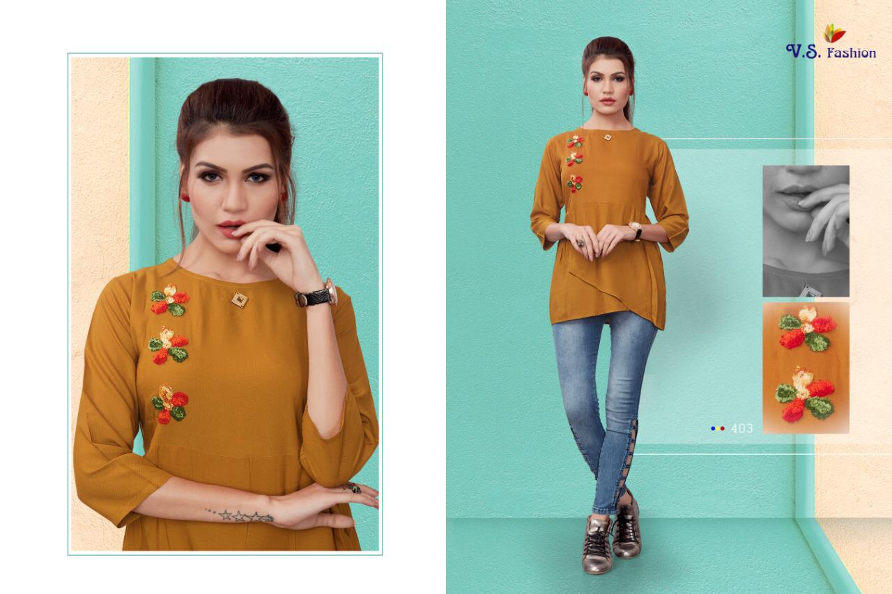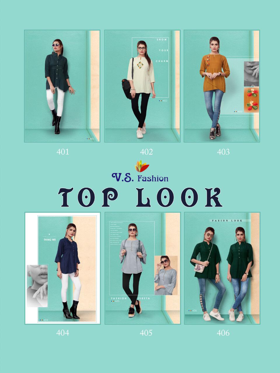 Top Look Vol 1 By Vs Fashion 401 Series Fancy Reyon Kurti Catlog Wholesale Dealer Surat