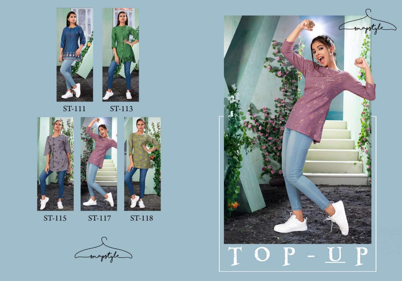 Buy Online Top Up By Snapstyle Reyon Kurtis Wholesale Dealer And Exporter India 5 Pcs of Full Catalogue at Wholesale Price. Looking for Top Up By Snapstyle Reyon Kurtis Wholesale Dealer And Exporter India Full Catalouge at Best Price? Buy Now Top Up By Snapstyle Reyon Kurtis Wholesale Dealer And Exporter India at Wholesale Rate of Rs 1800 with Total 5 Pcs from authroized dealer and supplier of Brand. Cost of Each piece is just only Rs 360 which is very low and affordable price to resale the product in your retail store ,This is Surat based Wholesale Supplier & Dealer of Brand. Click on Brand name to Know more about Brand's products.Call or Whatsapp on 9898838984 for booking or enquiry
