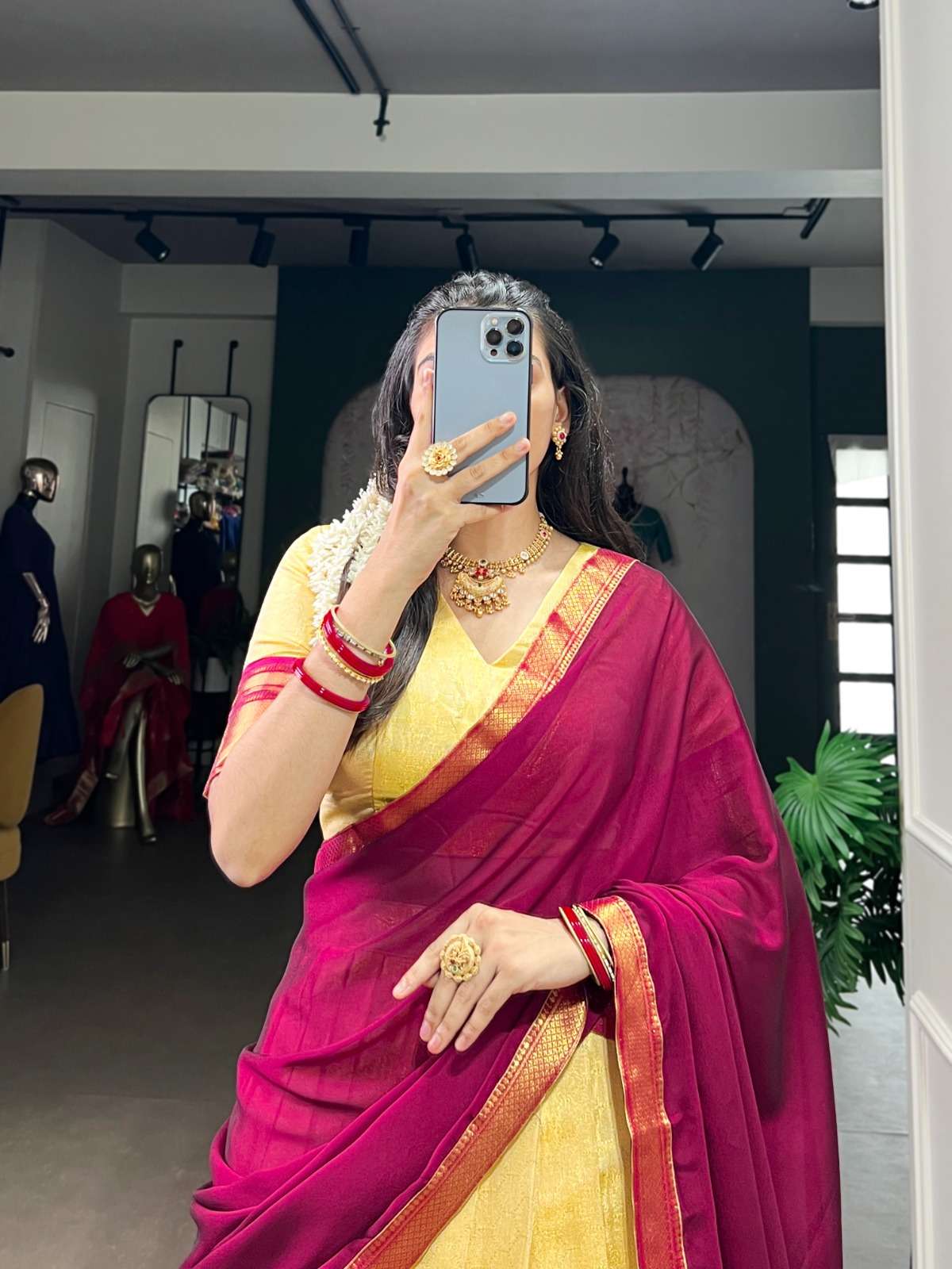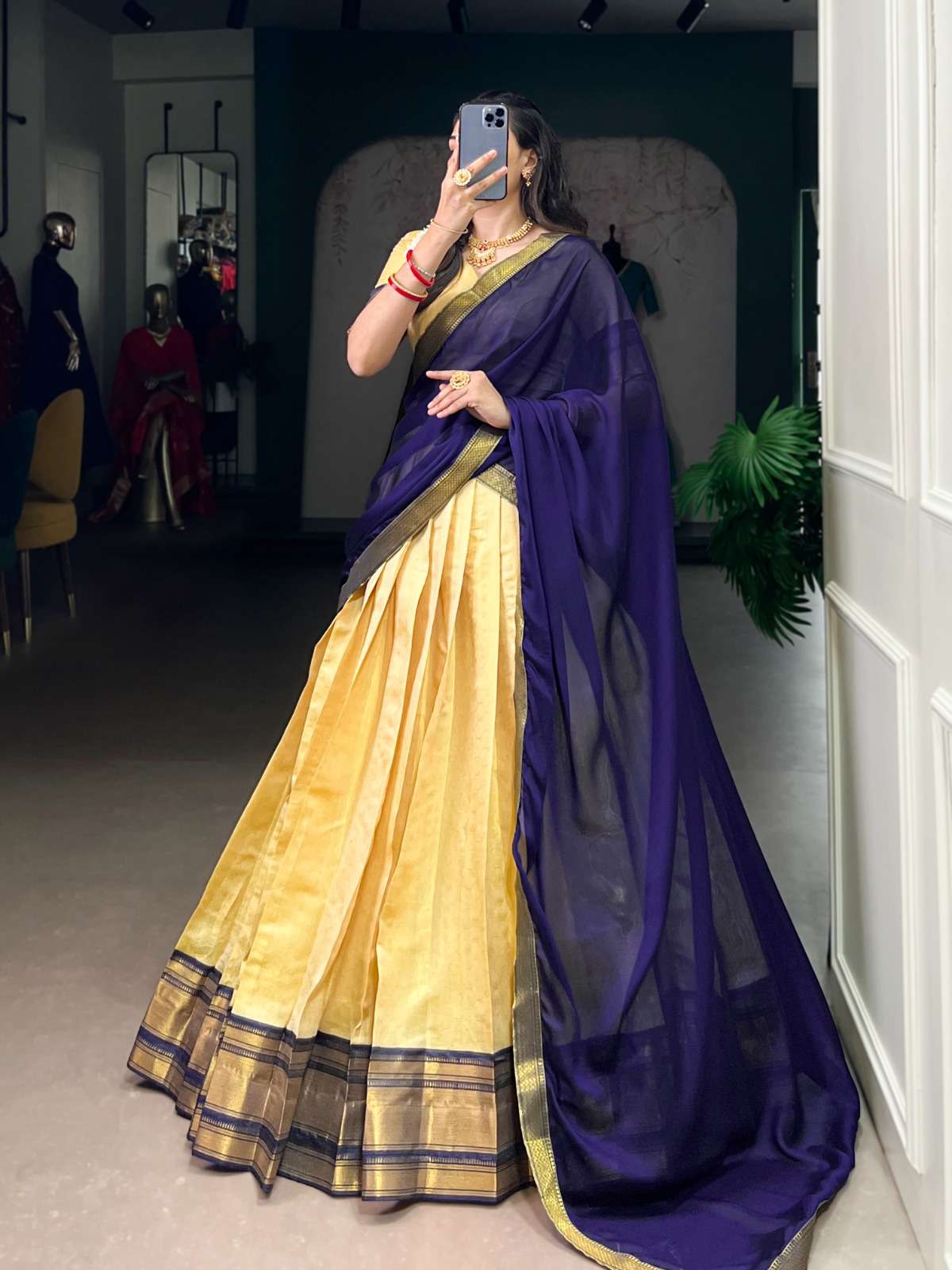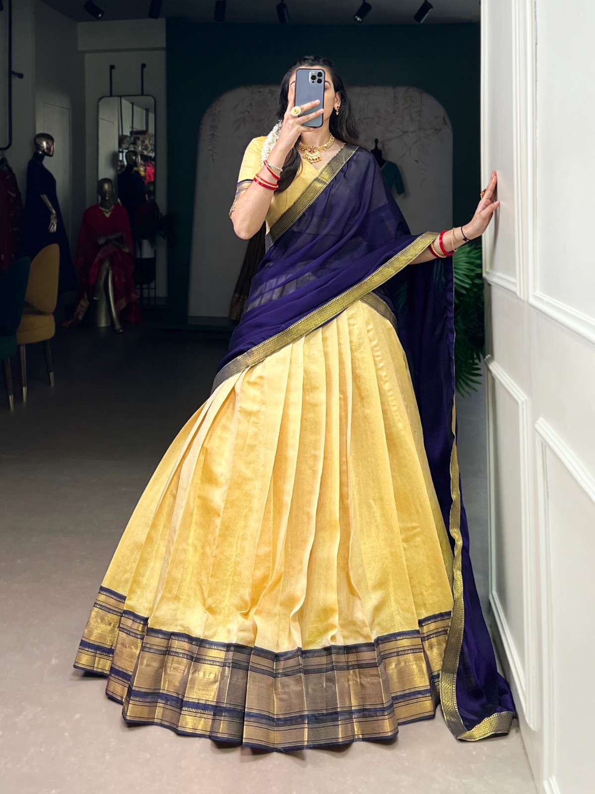 The golden charm of zari, the grace of Kanchipuram — a half saree that celebrates timeless tradition 🪷