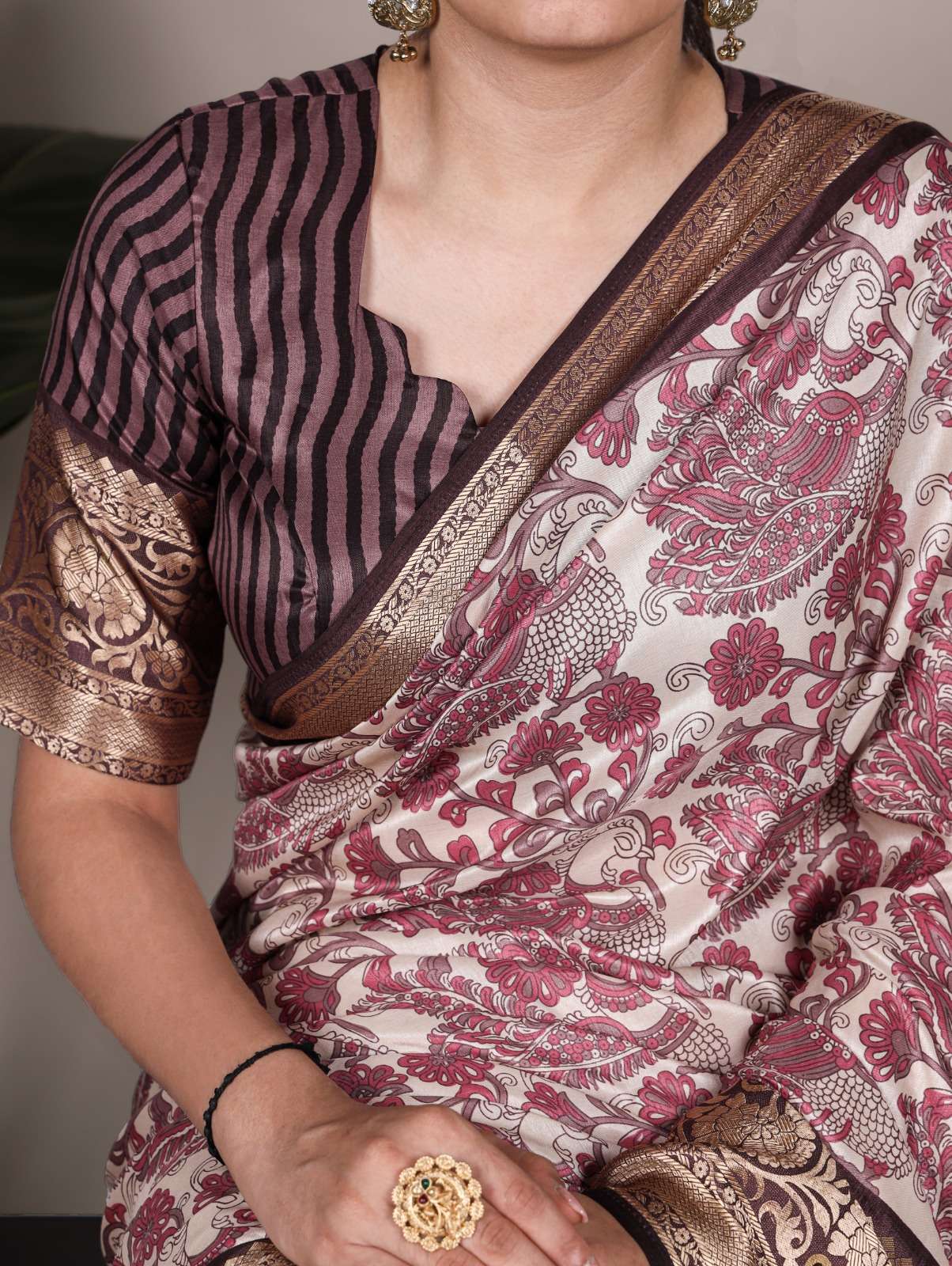 *Saree* Saree Fabric : Tasar Silk Saree Work : Printed With Viscose Border Saree Length : 5.5 meter
