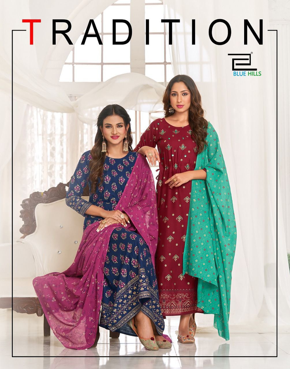 Traditional By Blue Hills Gown With Dupatta Traditionalwholesaler Supplier From Surat